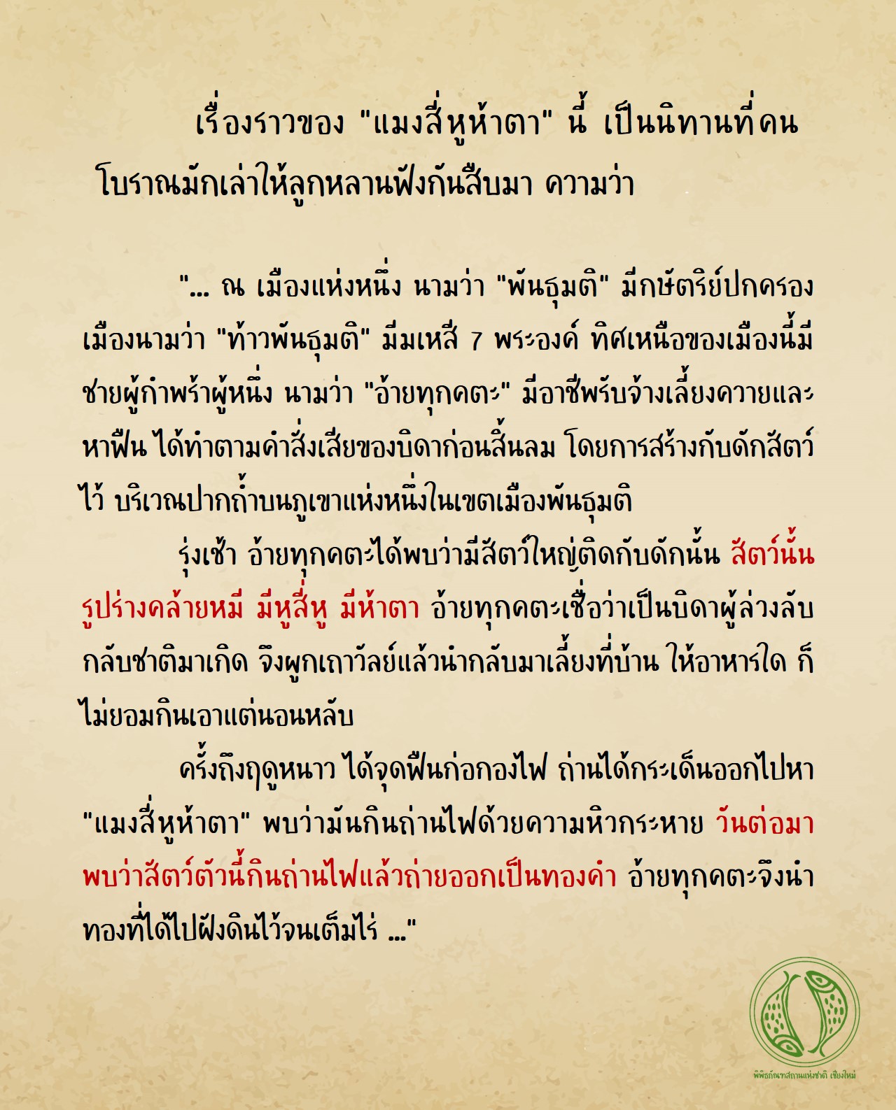 แมงสี่หูห้าตา สัตว์ตำนานล้านนา จากถ่านไฟ สู่ทองคำ