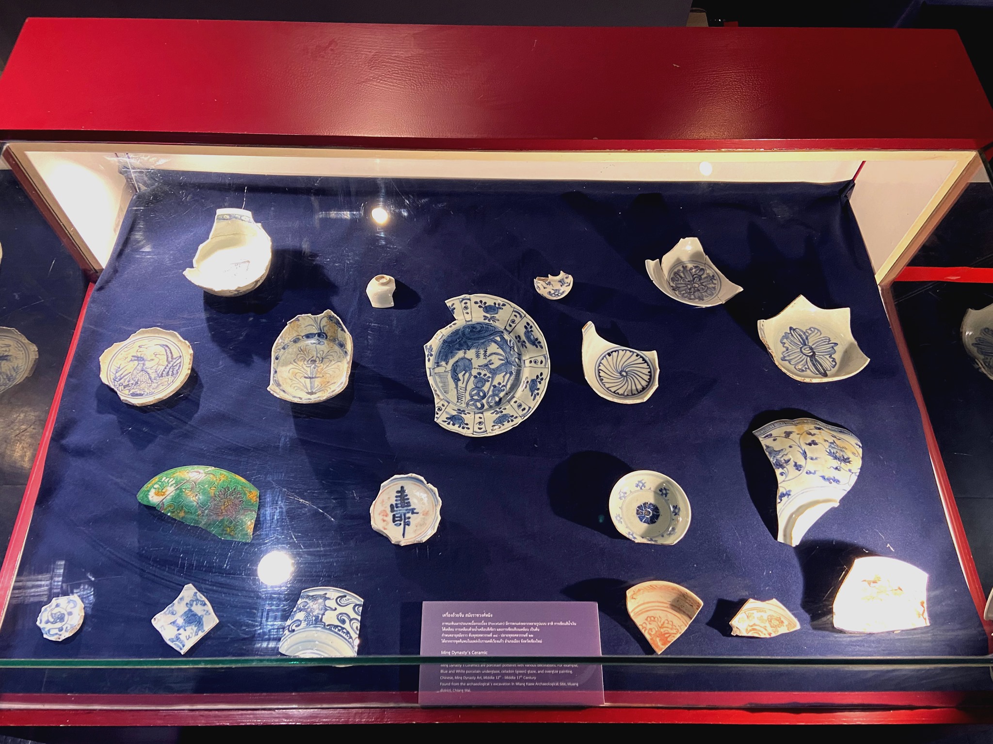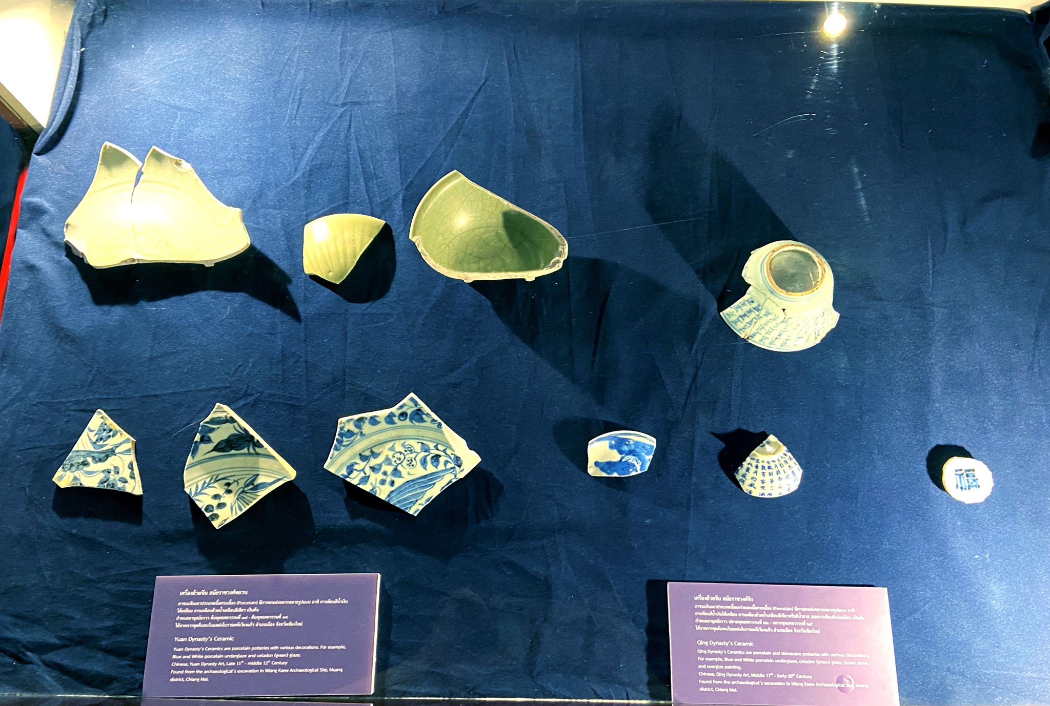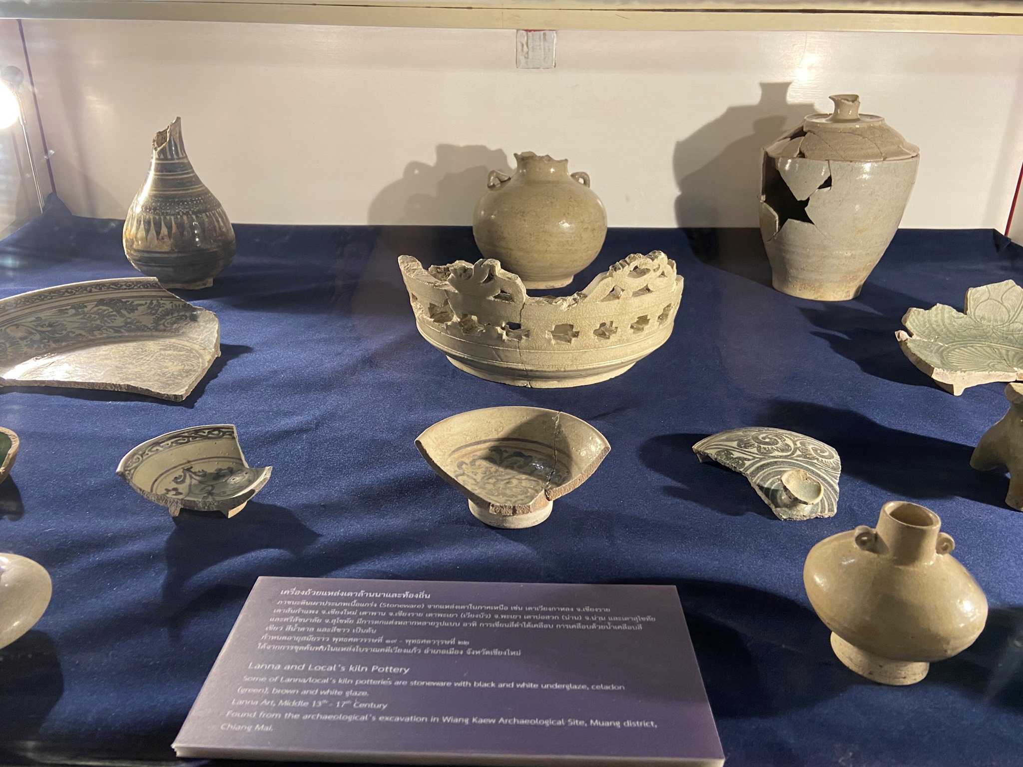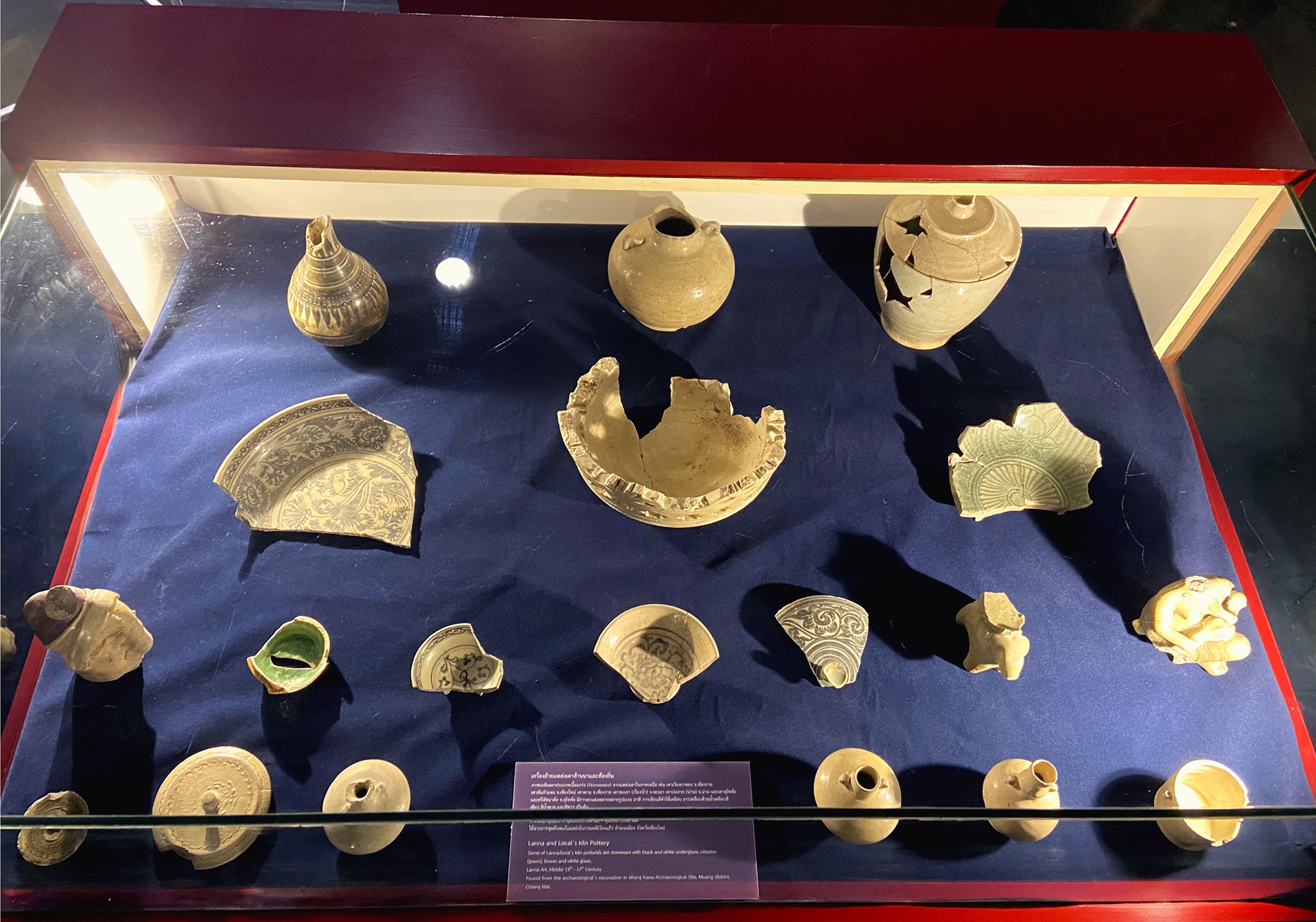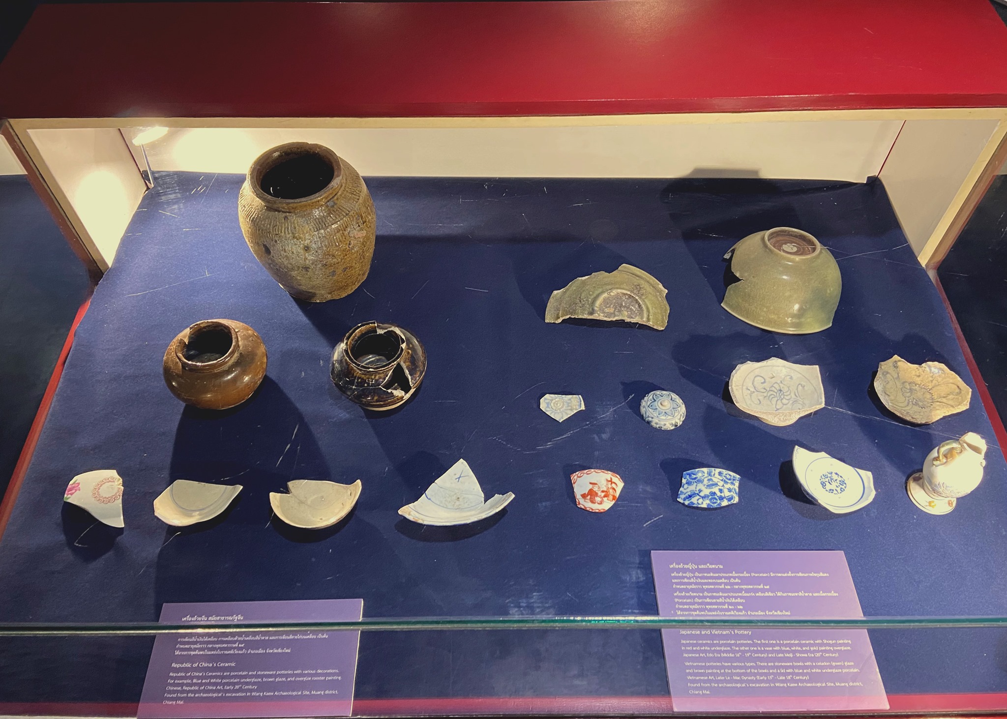 Our museum exhibits special pieces of potteries that were found at the Wiang Kaew excavation site, such as Chinese ceramics from the Yuan Dynasty, Ming Dynasty, Qing Dynasty, and the Republic of China. Joined with the Vietnamese, Japanese ceramics, and potteries from northern Thailand's kilns which are contemporary aged in Lan - Na period.