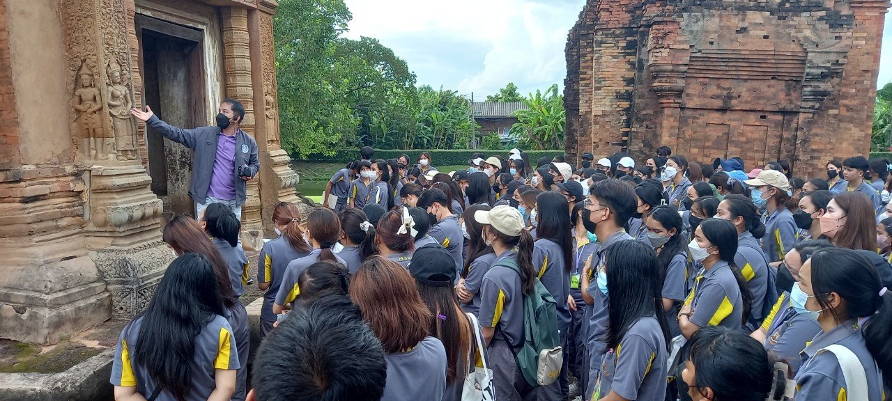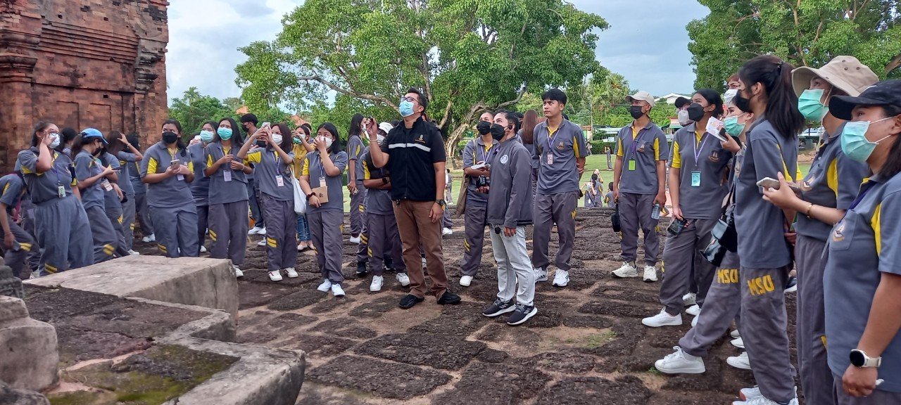 วันเสาร์ที่ ๖ สิงหาคม พ.ศ. ๒๕๖๕ เวลา ๑๗.๐๐ น. นิสิตชั้นปีที่ ๔ คณะการท่องเที่ยวและการโรงแรม และอาจารย์ จำนวน ๒๑๐ คน มหาวิทยาลัยมหาสารคาม ตำบลตลาด อำเภอเมือง จังหวัดมหาสารคาม เข้าเยี่ยมชมโบราณสถานปราสาทศีขรภูมิ อำเภอศีขรภูมิ จังหวัดสุรินทร์ โดยมีนายกรภัทร์ สุขใหญ่ พนักงานประจำพิพิธภัณฑ์ ให้การต้อนรับและบรรยายนำชม