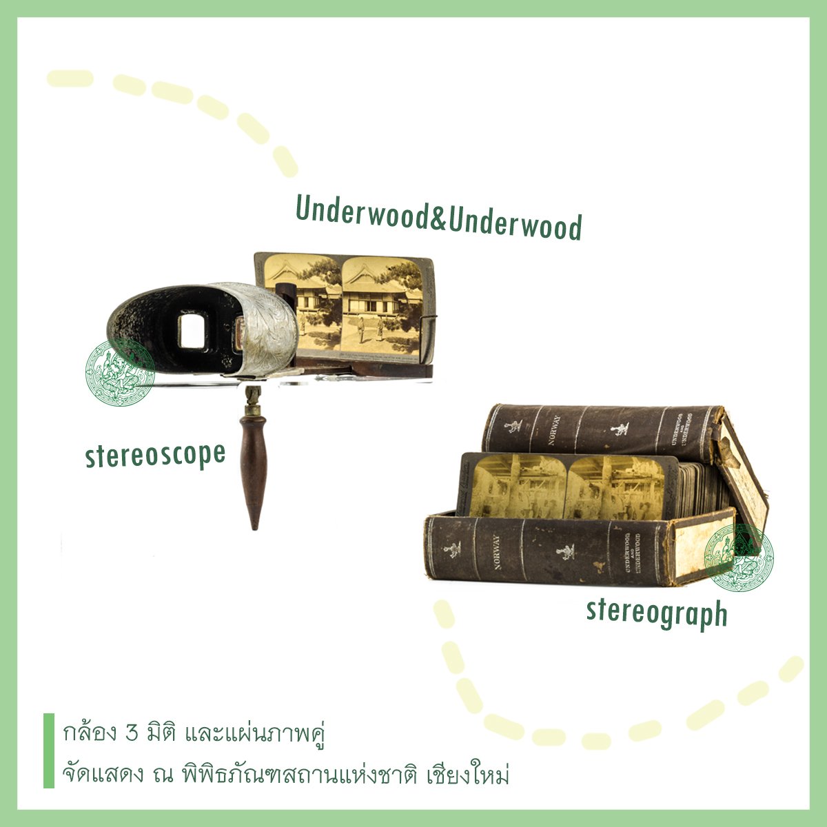 กล้อง 3 มิติและแผ่นภาพคู่ ที่จัดแสดงที่พิพิธภัณฑสถานแห่งชาติ เชียงใหม่ เป็นของยี่ห้อ Underwood & Underwood ผู้ผลิตและจัดจำหน่ายแผ่นภาพ 3 มิติที่ได้รับความนิยม ก่อตั้งบริษัทในปี 1882 โดยสองพี่น้องชาวอเมริกัน ชื่อ Elmer และ Bert Elias Underwood และได้เติบโตขยับขยายสาขาไปในหลายเมือง ทั้งใน อเมริกา แคนาดา และสหราชอาณาจักร