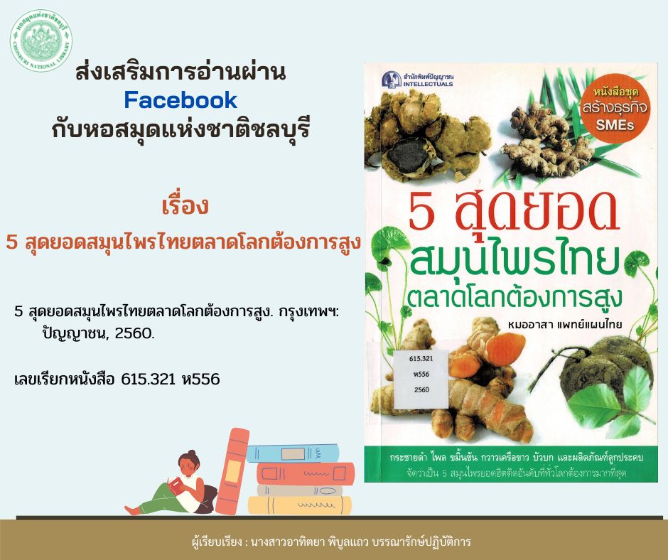 ส่งเสริมการอ่านผ่าน Facebook กับหอสมุดแห่งชาติชลบุรี เรื่อง 5 สุดยอดสมุนไพรไทยตลาดโลกต้องการสูง