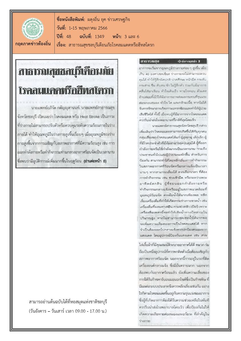 เรื่อง สาธารณสุขเตือนภัยโรคลมแดดหรือฮีทสโตรก