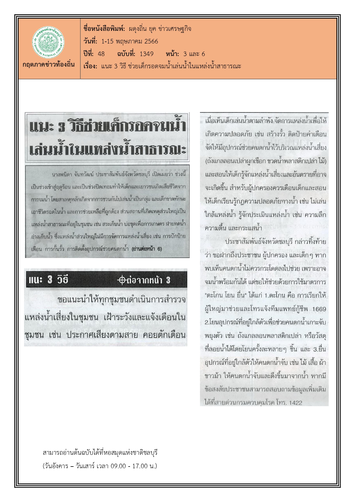 เรื่อง แนะ 3 วิธี ช่วยเด็กรอดจมน้ำเล่นน้ำในแหล่งน้ำสาธารณะ
