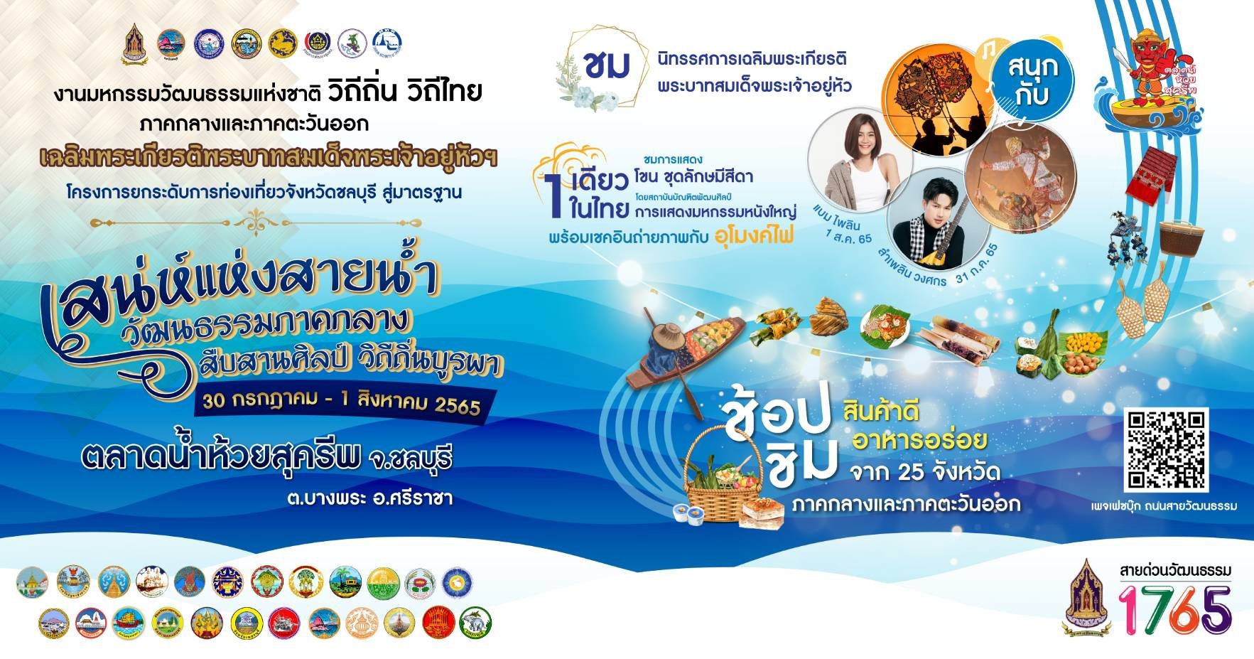 ขอเชิญเที่ยวงาน มหกรรมวัฒนธรรมแห่งชาติ วิถีถิ่น วิถีไทย ภาคกลางและภาคตะวันออก เฉลิมพระเกียรติพระบาทสมเด็จพระเจ้าอยู่หัว "เสน่ห์แห่งสายน้ำ วัฒนธรรมภาคกลาง สืบสานศิลป์ วิถีถิ่นบูรพา"