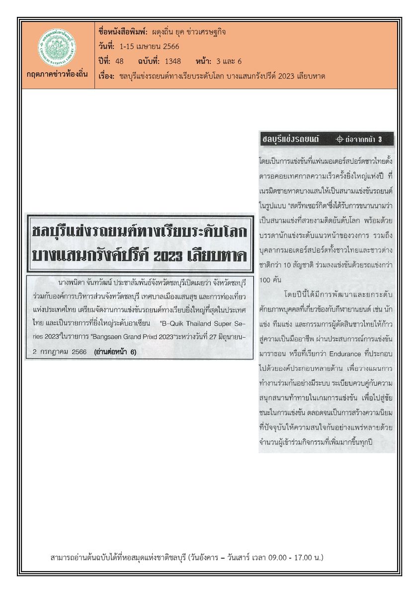 เรื่อง ชลบุรีแข่งรถยนต์ทางเรียบระดับโลก บางแสนกรังปรีด์ 2023 เลียบหาด
