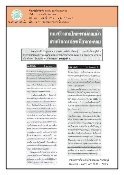 กฤตภาคข่าวท้องถิ่น เรื่อง ทม.ศรีราชาเปิดสะพานลอยน้ำเกาะลอย