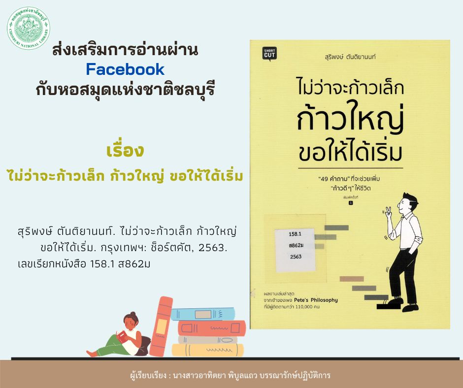 ส่งเสริมการอ่านผ่าน Facebook กับหอสมุดแห่งชาติชลบุรี เรื่อง ไม่ว่าจะก้าวเล็ก ก้าวใหญ่ ขอให้ได้เริ่ม