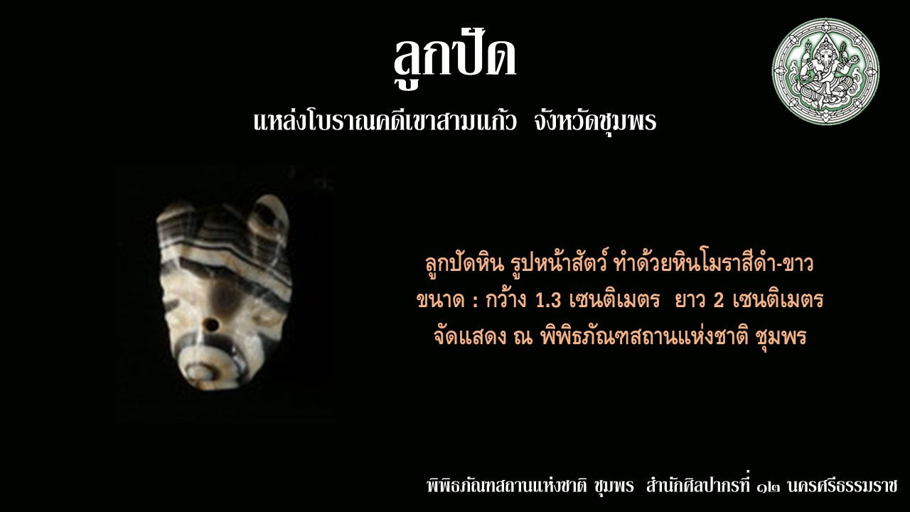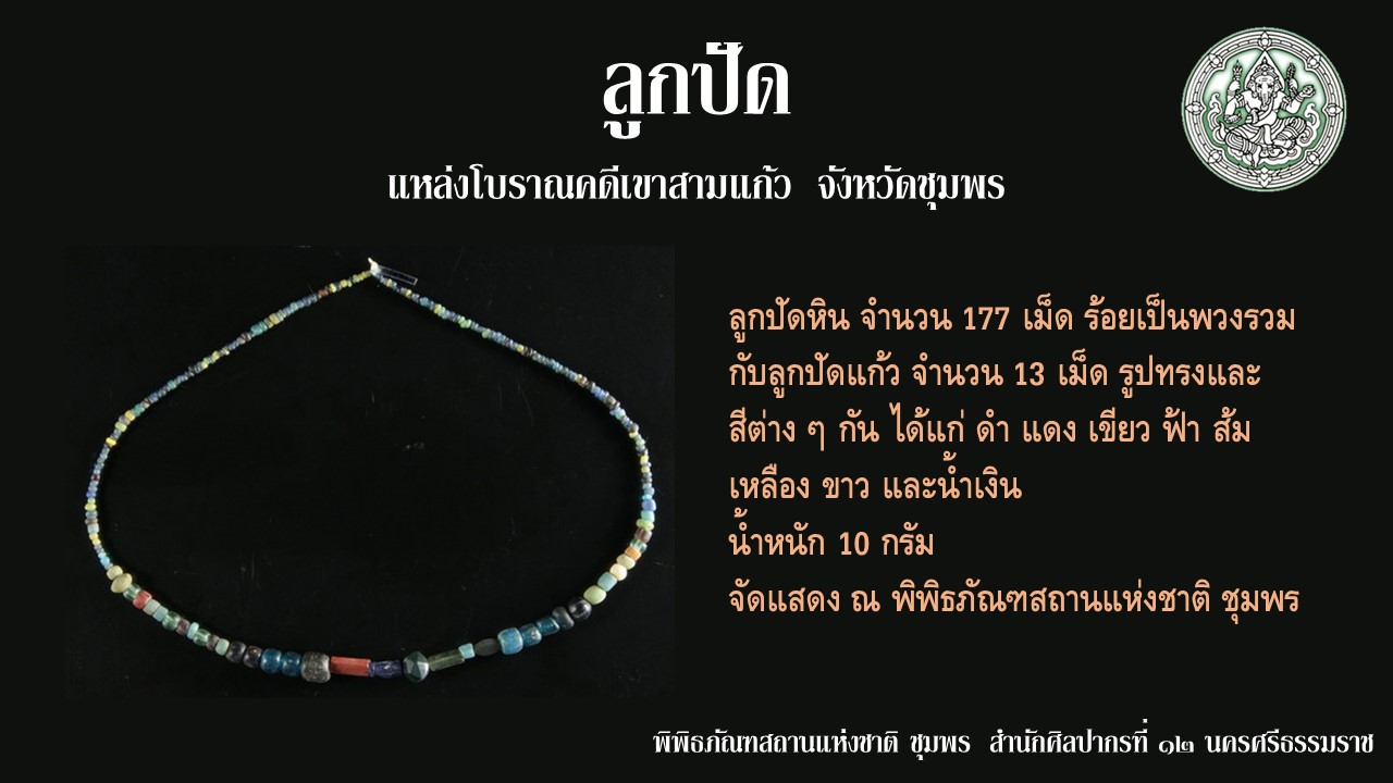 โบราณวัตถุ ลุกปัดแหล่งโบราณคดีเขาสามแก้ว จังหวัดชุมพร