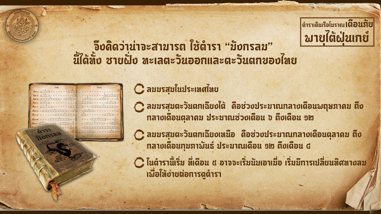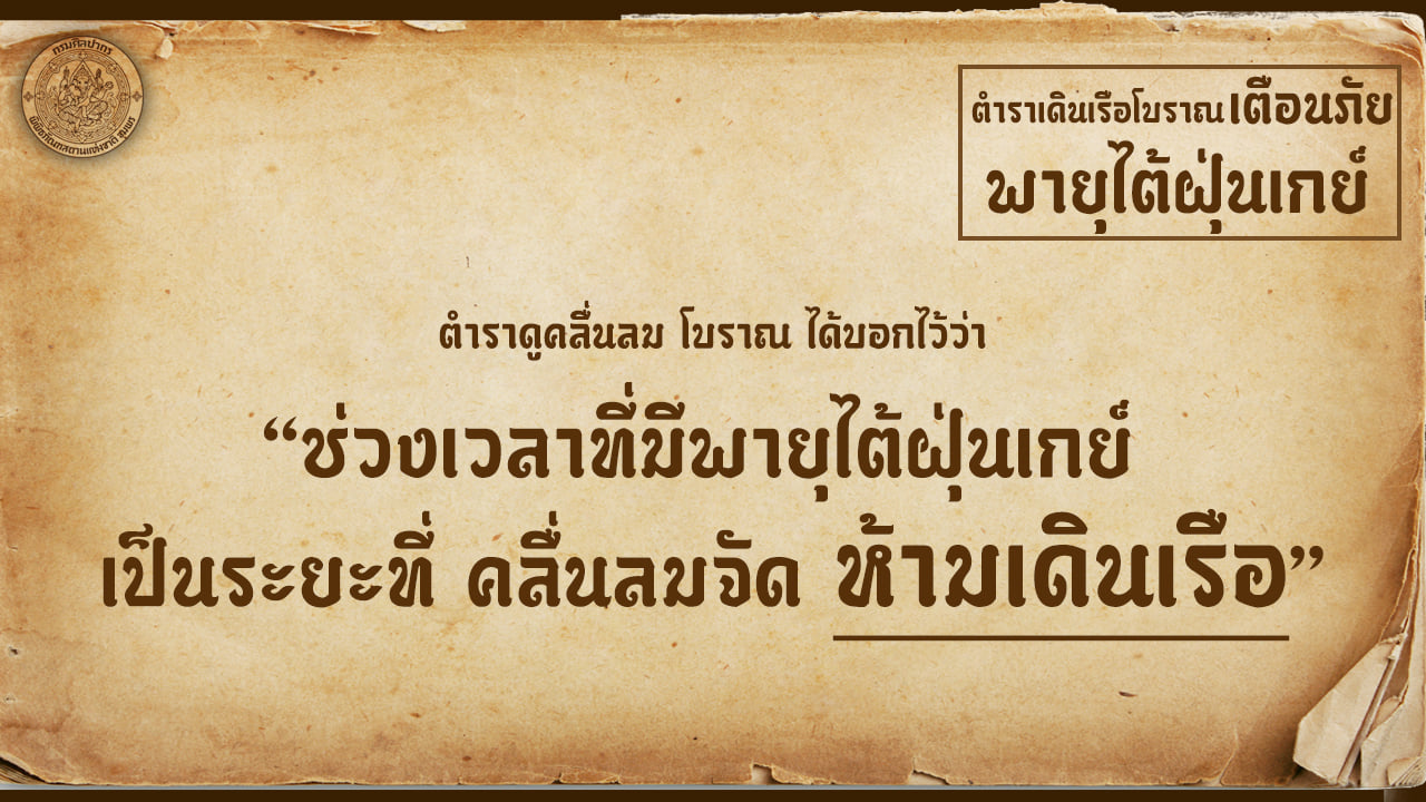 ตำราเดินเรือโบราณ เตือนภัยพายุไต้ฝุ่นเกย์