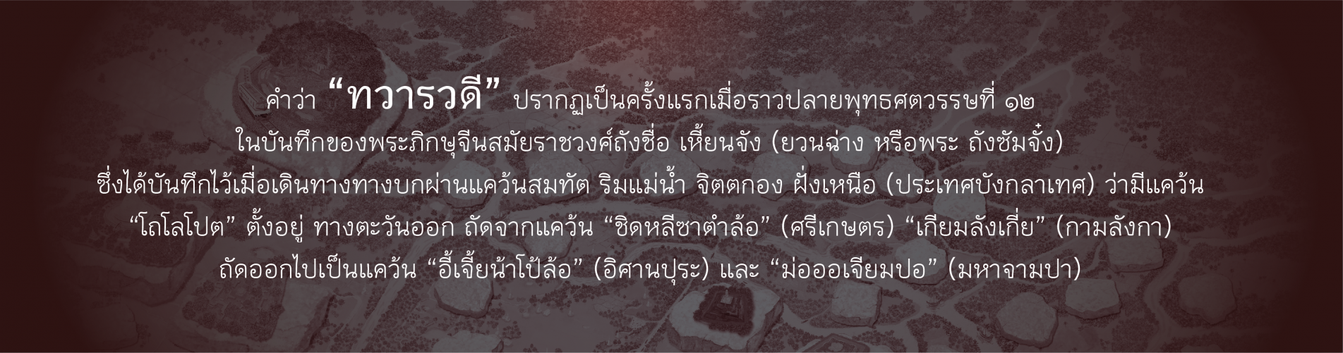 ศิลปะทวารวดี จัดเป็นศิลปกรรมต้นอารยธรรมสมัยประวัติศาสตร์ที่มีพัฒนาการ อย่างต่อเนื่อง ณ บริเวณลุ่มน้ําเจ้าพระยา ระหว่างพุทธศตวรรษที่ ๑๑ - ๑๖ บรรดาโบราณ วัตถุ ศิลปวัตถุ และโบราณสถาน ส่วนใหญ่ล้วนสร้างขึ้นเนื่องในพุทธศาสนาลัทธิหินยาน หากแต่ยังปรากฏหลักฐานการนับถือศาสนาพุทธลัทธิมหายานและฮินดูรวมอยู่ด้วย อิทธิพล ของศิลปวัฒนธรรมทวารวดีได้แพร่ขยายไปยังภูมิภาคอื่น ทั้งภาคเหนือ ภาคตะวันออก เฉียงเหนือ และภาคใต้ จึงอาจกล่าวได้ว่าศิลปะทวารวดี คือ “ต้นกําเนิดพุทธศิลป์ใน สยามประเทศ”