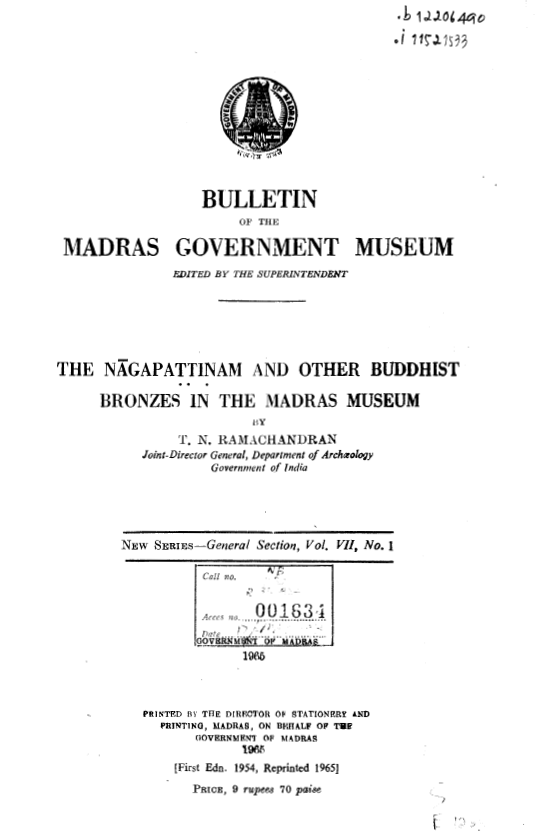 The Nagapattinam and other Buddhist Bronzes in the Madras Museum
