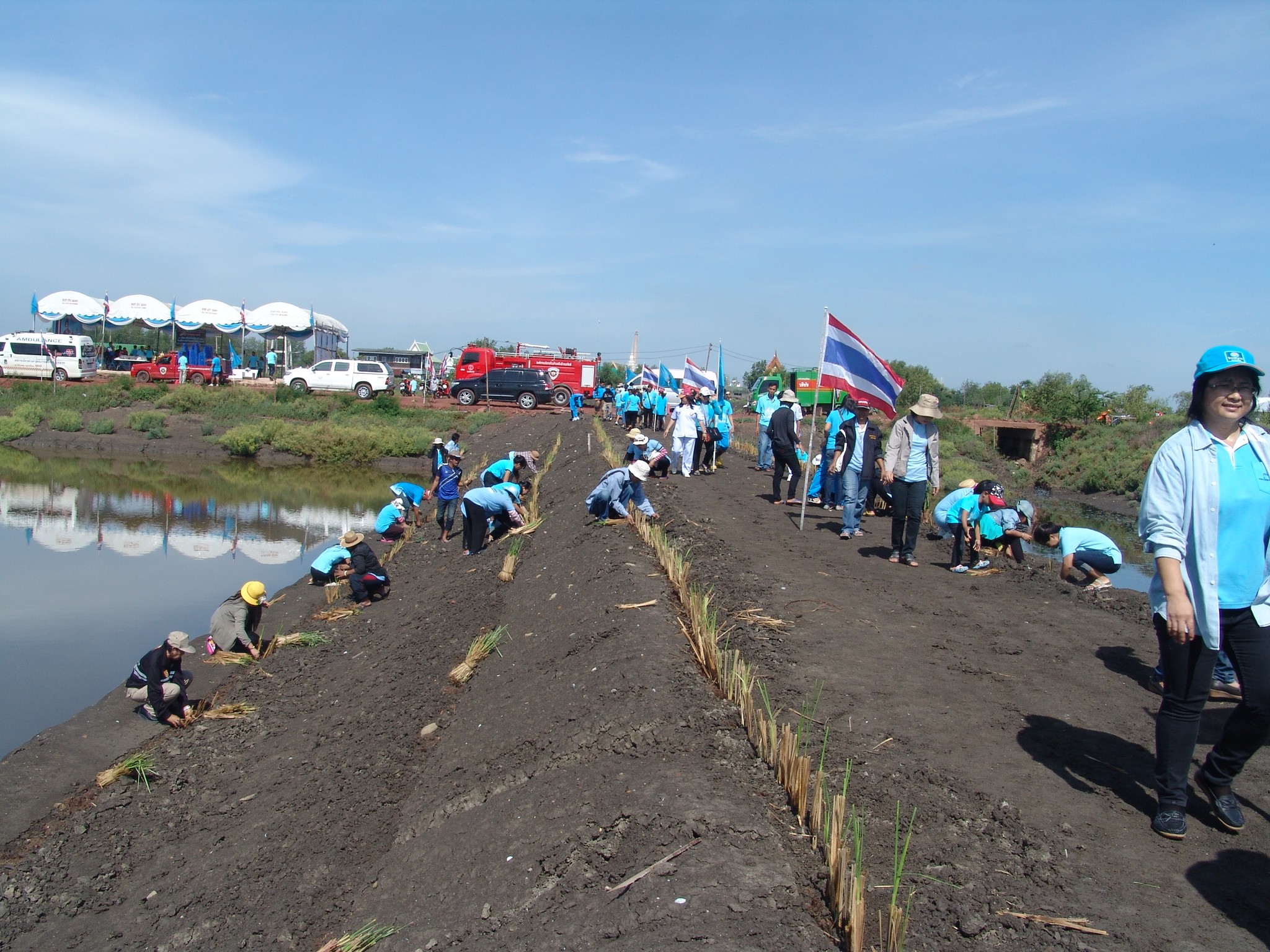 กิจกรรม"ปลูกหญ้าแฝกเนื่องในวันแม่แห่งชาติ" ณ บริเวณแหล่งเรือโบราณพนมสุรินทร์ ตำบลพันท้ายนรสิงห์ อำเภอเมืองสมุทรสาคร จังหวัดสมุทรสาคร มีผู้เข้าร่วมกิจกรรมปลูกหญ้าแฝกจำนวน ๑๕๐ คน