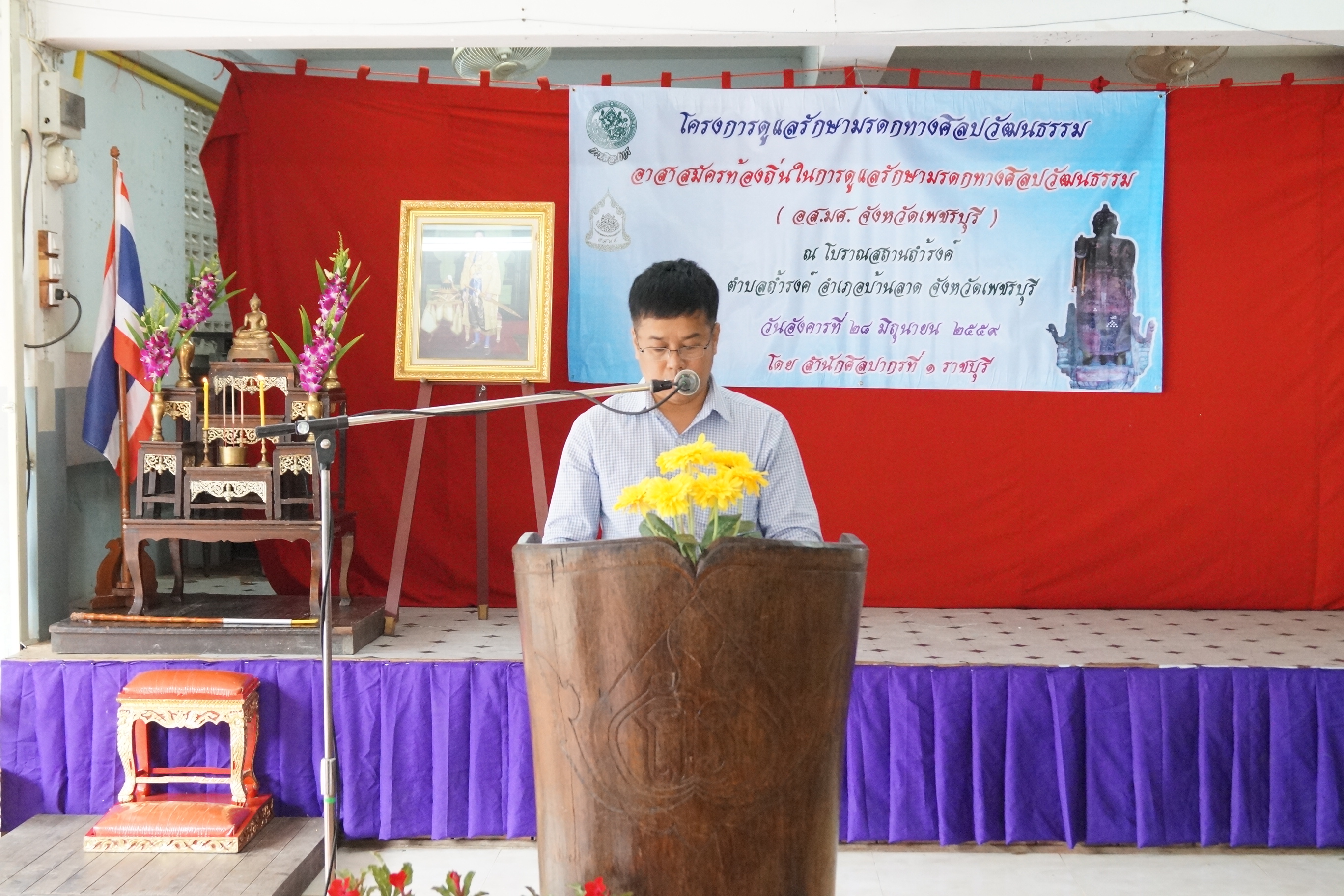 โครงการดูแลรักษามรดกศิลปวัฒนธรรม ของอาสาสมัครท้องถิ่นในการดูแลรักษามรดกทางศิลปวัฒนธรรม (อส.มศ) จังหวัดเพชรบุรี ณ โบราณสถานถ้ำรงค์ อำเภอบ้านลาด จังหวัดเพชรบุรี ในวันอังคารที่ ๒๘ มิถุนายน ๒๕๕๙