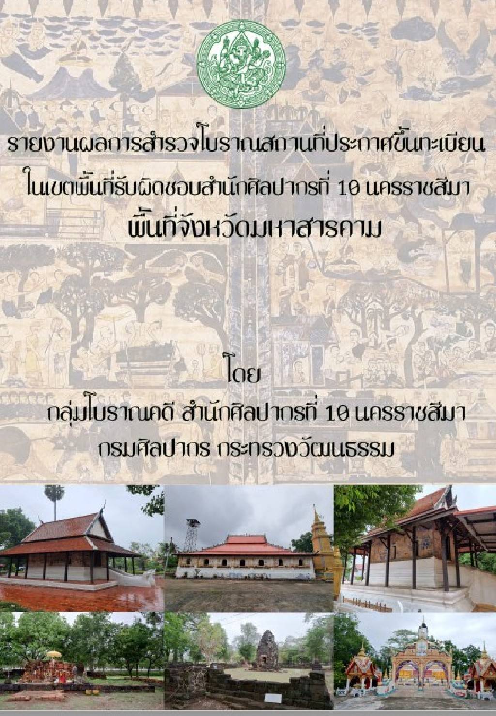 รายงานผลการสำรวจโบราณสถานที่ประกาศขึ้นทะเบียน ในเขตพื้นที่รับผิดชอบสำนักศิลปากรที่ 10 นครราชสีมา พื้นที่จังหวัดมหาสารคาม