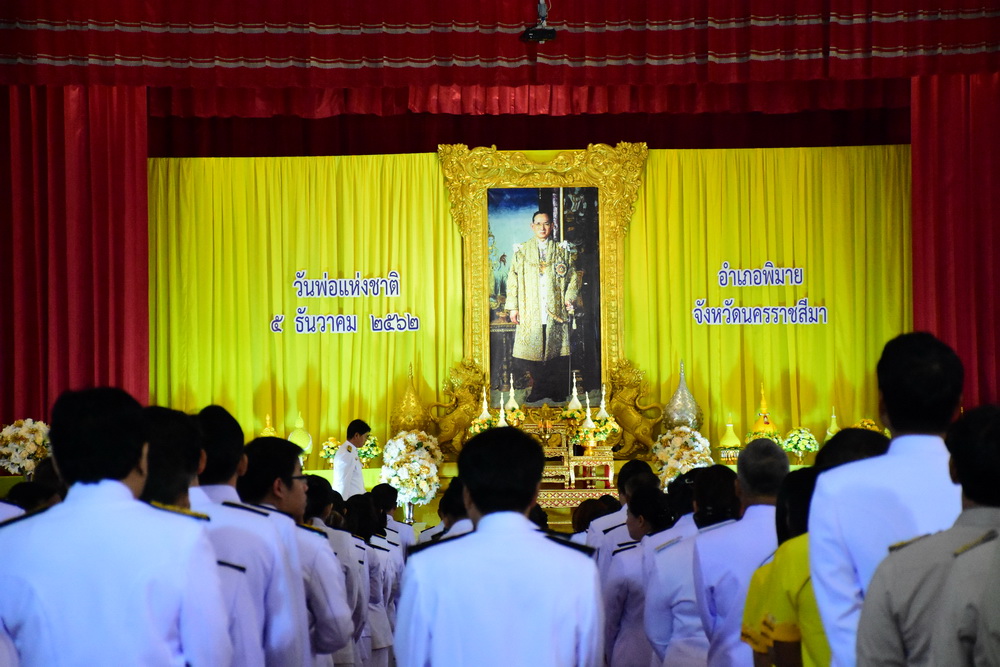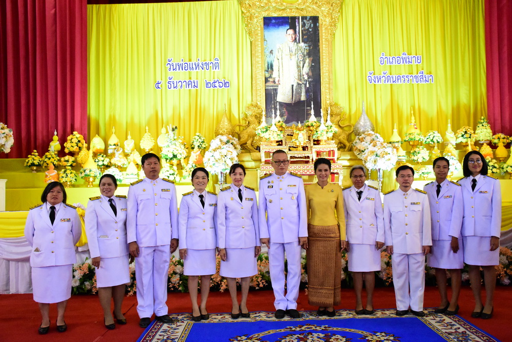 วันพฤหัสบดีที่ ๕ ธันวาคม ๒๕๖๒ ข้าราชการและเจ้าหน้าที่สำนักศิลปากรที่ ๑๐ นครราชสีมา กรมศิลปากร เข้าร่วมพิธีทำบุญตักบาตร พิธีถวายพานพุ่มดอกไม้และถวายบังคม เนื่องในวันคล้ายวันพระบรมราชสมภพของพระบาทสมเด็จพระบรมชนกาธิเบศร มหาภูมิพลอดุลยเดชมหาราช บรมนาถบพิตร วันชาติ และวันพ่อแห่งชาติ ประจำปี ๒๕๖๒ ณ ที่ว่าการอำเภอพิมาย จังหวัดนครราชสีมา