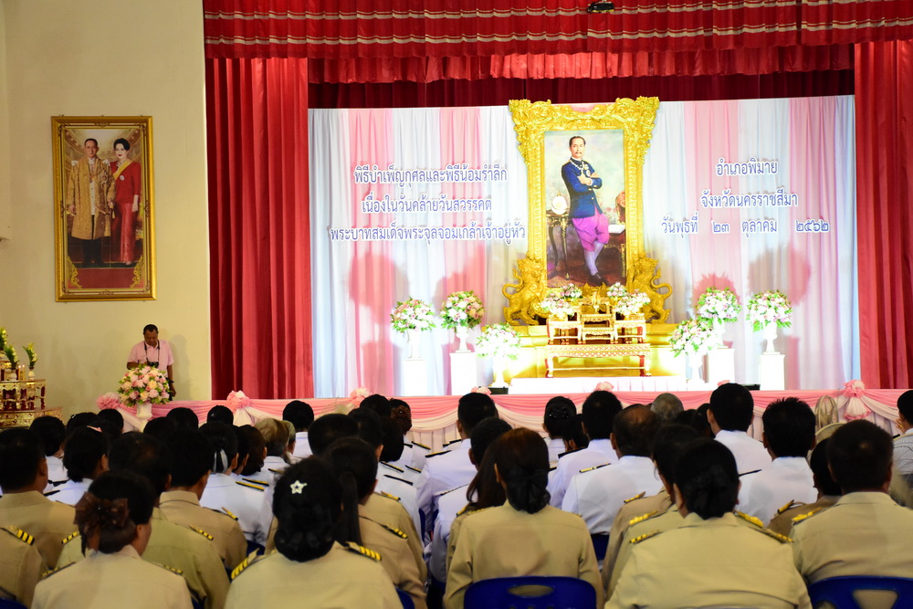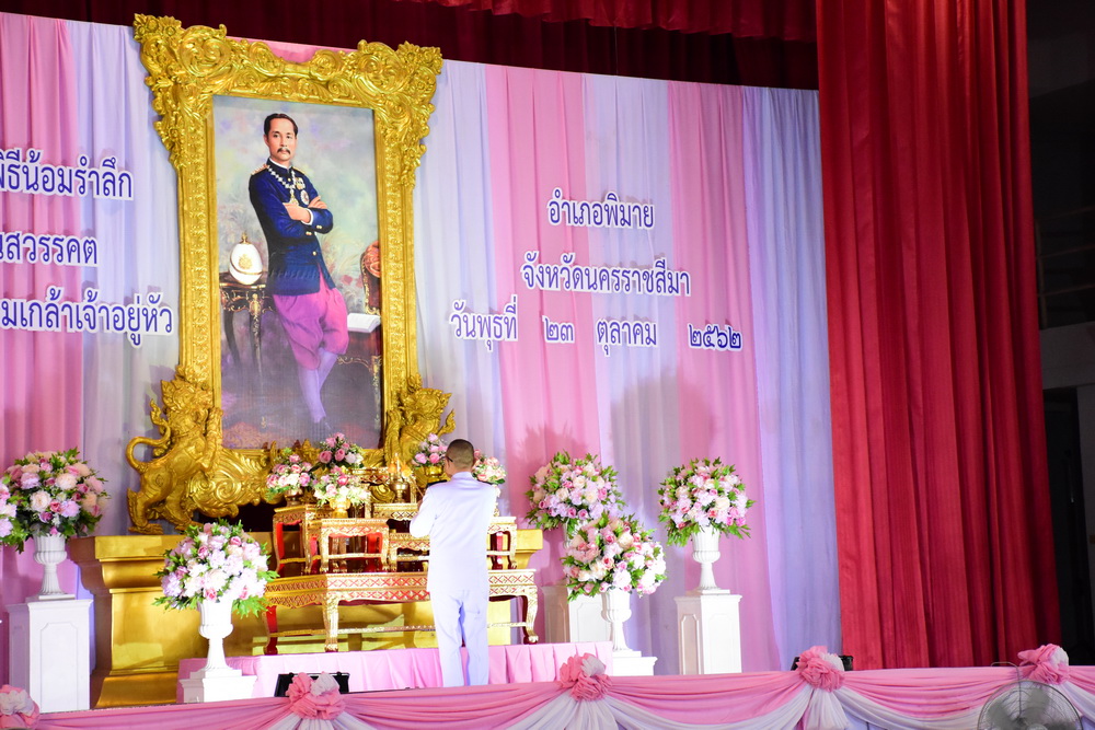 วันที่ ๒๓ ตุลาคม ๒๕๖๒ เวลา ๐๗.๓๐ น. นายเลิศพันธ์ สินบรรเลงเสนาะ นายอำเภอพิมาย เป็นประธานในพิธีบำเพ็ญกุศลและทำบุญตักบาตรพระสงฆ์และสามเณร เนื่องในวันคล้ายวันสวรรคตพระบาทสมเด็จพระจุลจอมเกล้าเจ้าอยู่หัว จากนั้นสำนักศิลปากรที่ ๑๐ นครราชสีมา ได้ร่วมพิธีวางพวงมาลาและถวายบังคมต่อหน้าพระบรมฉายาลักษณ์ของพระบาทสมเด็จพระจุลจอมเกล้าเจ้าอยู่หัว ณ บริเวณที่ว่าการอำเภอพิมาย จังหวัดนครราชสีมา