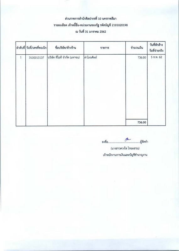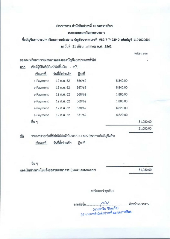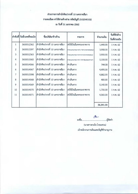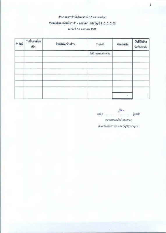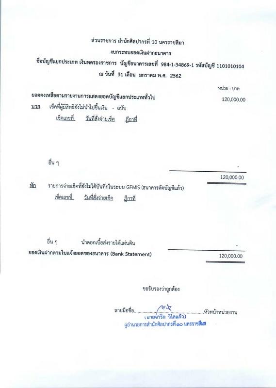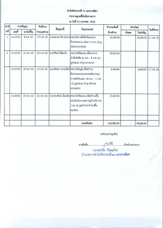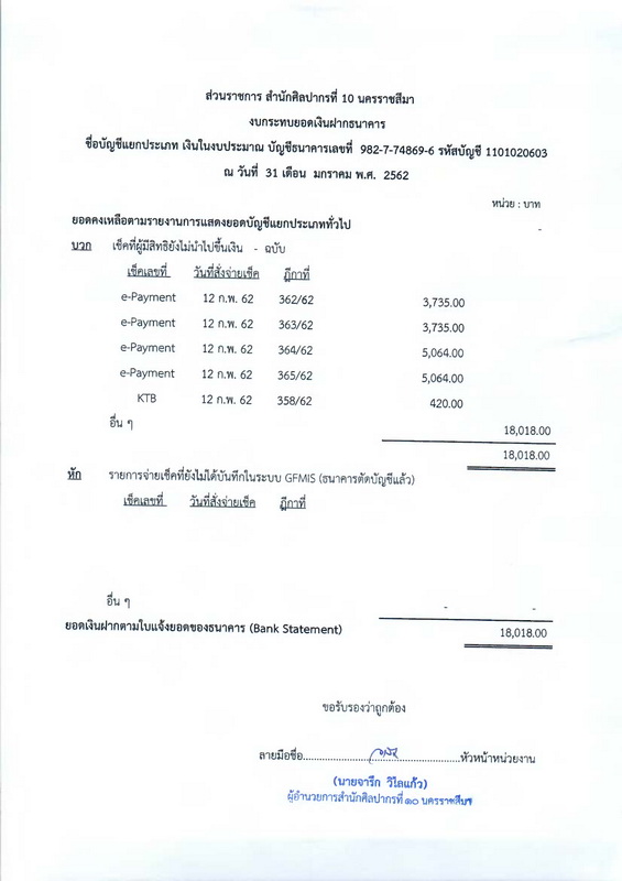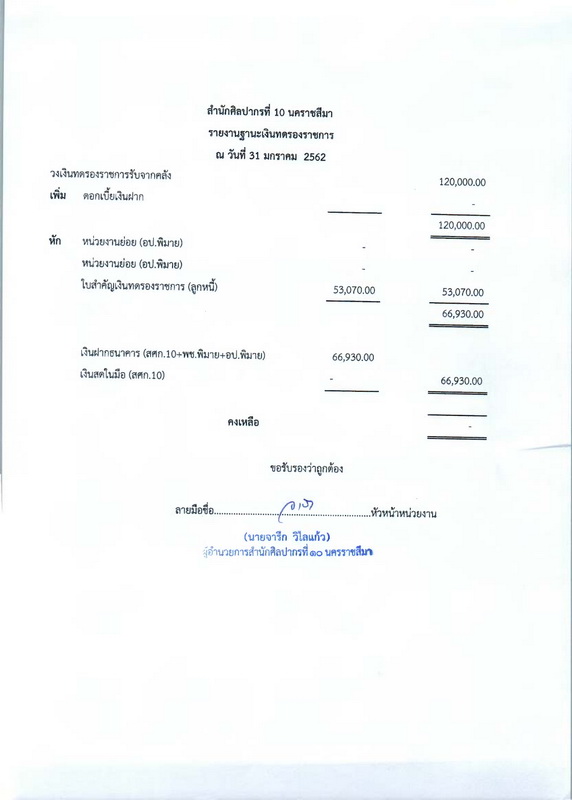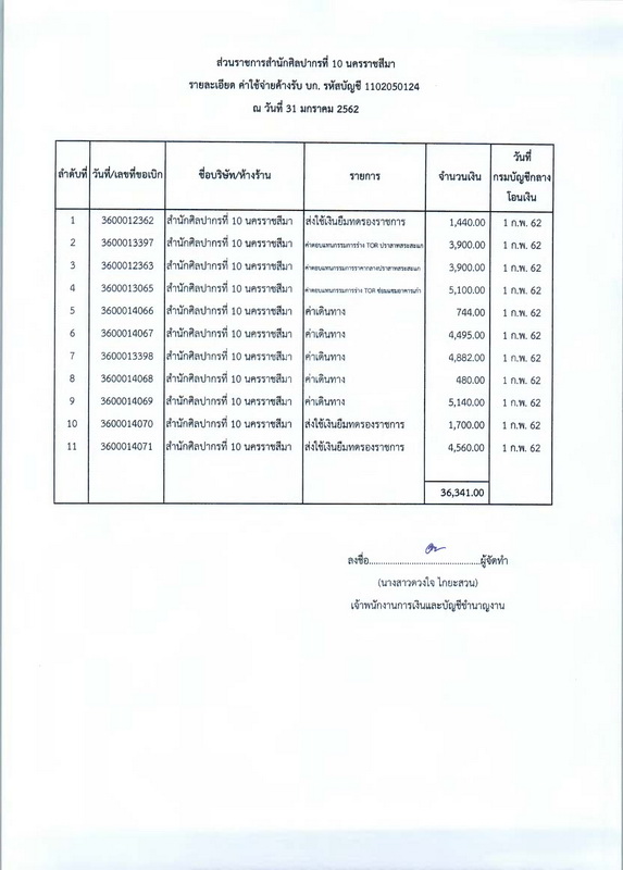 รายงานบัญชีงบทดลองและเอกสารประกอบงบทดลอง สำนักศิลปากรที่ ๑๐ นครราชสีมา (เดือนมกราคม ๒๕๖๒)