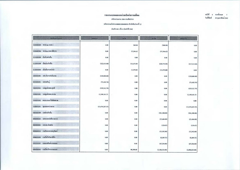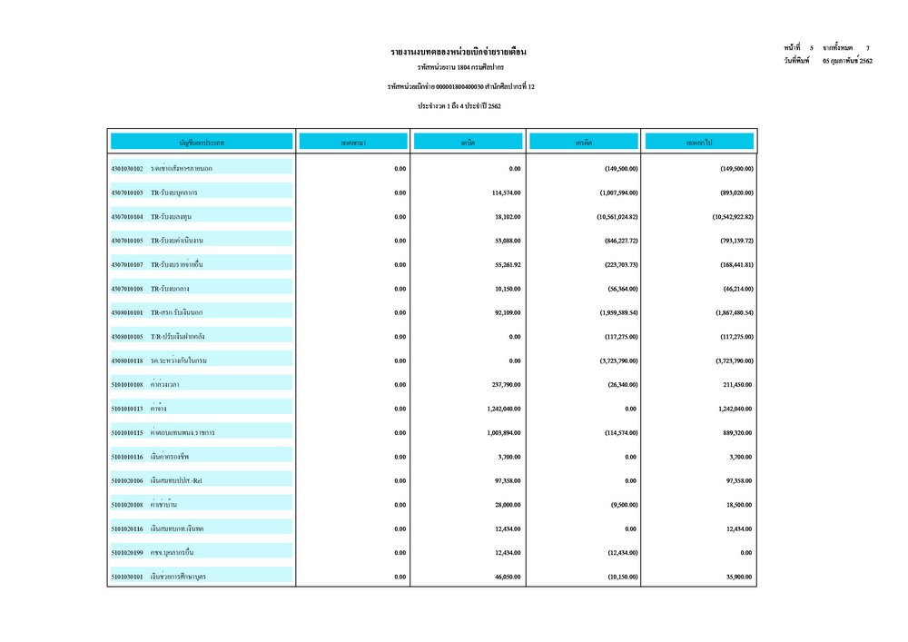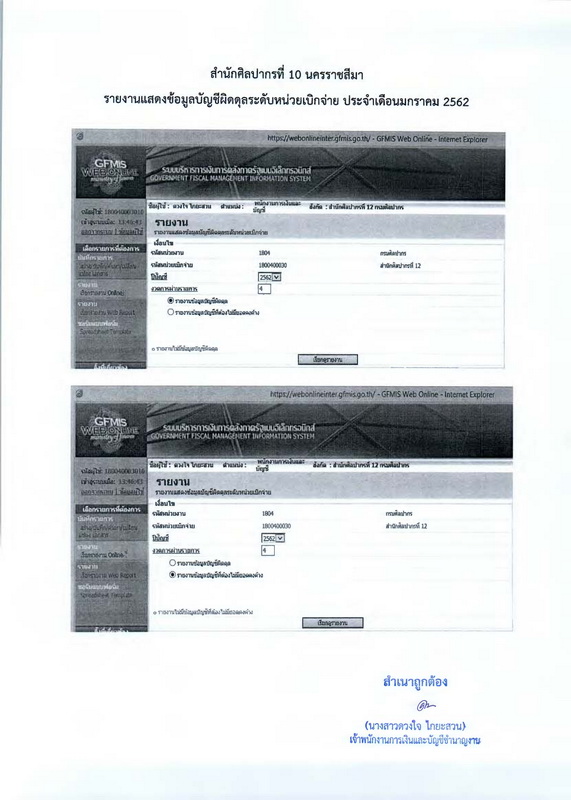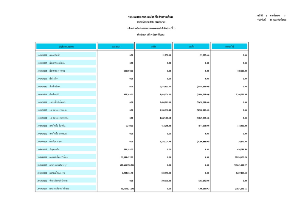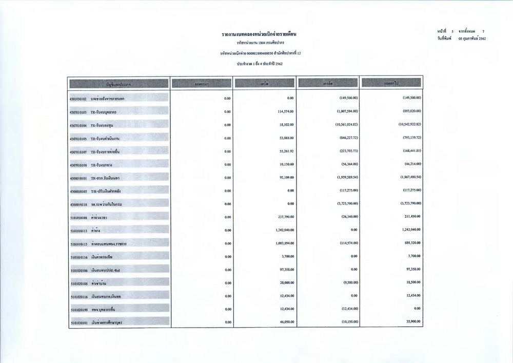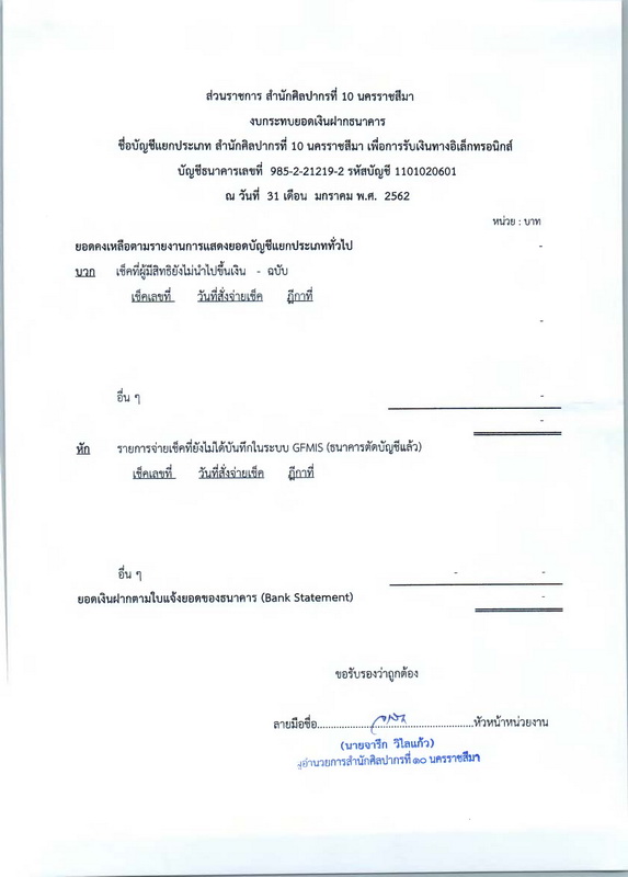 รายงานบัญชีงบทดลองและเอกสารประกอบงบทดลอง สำนักศิลปากรที่ ๑๐ นครราชสีมา (เดือนมกราคม ๒๕๖๒)