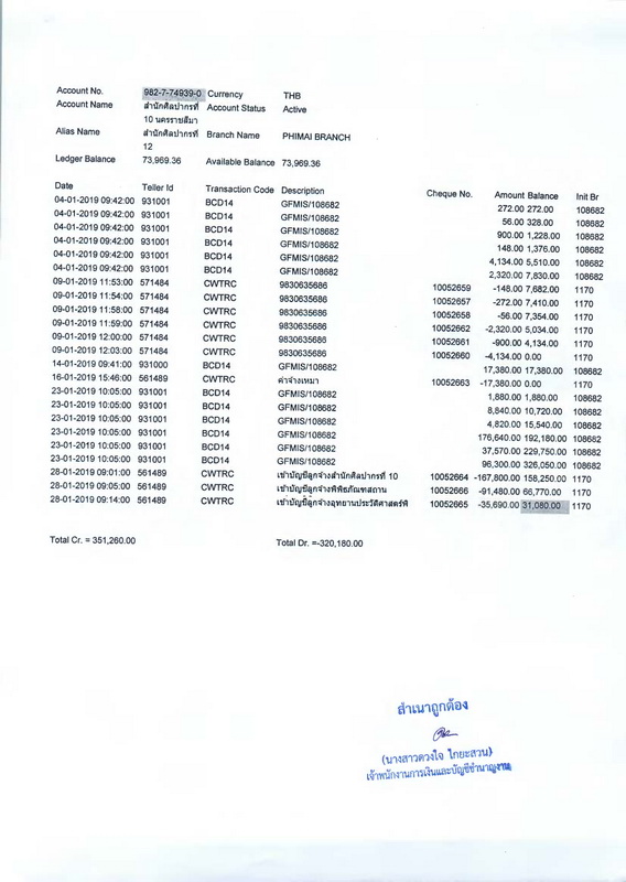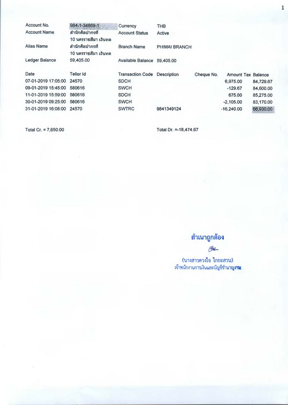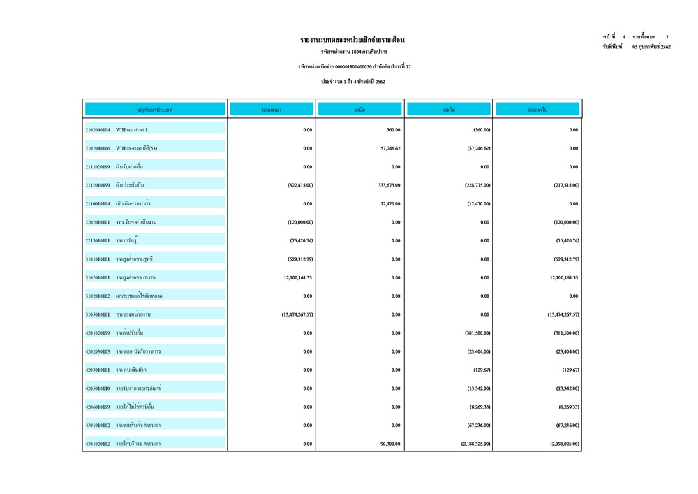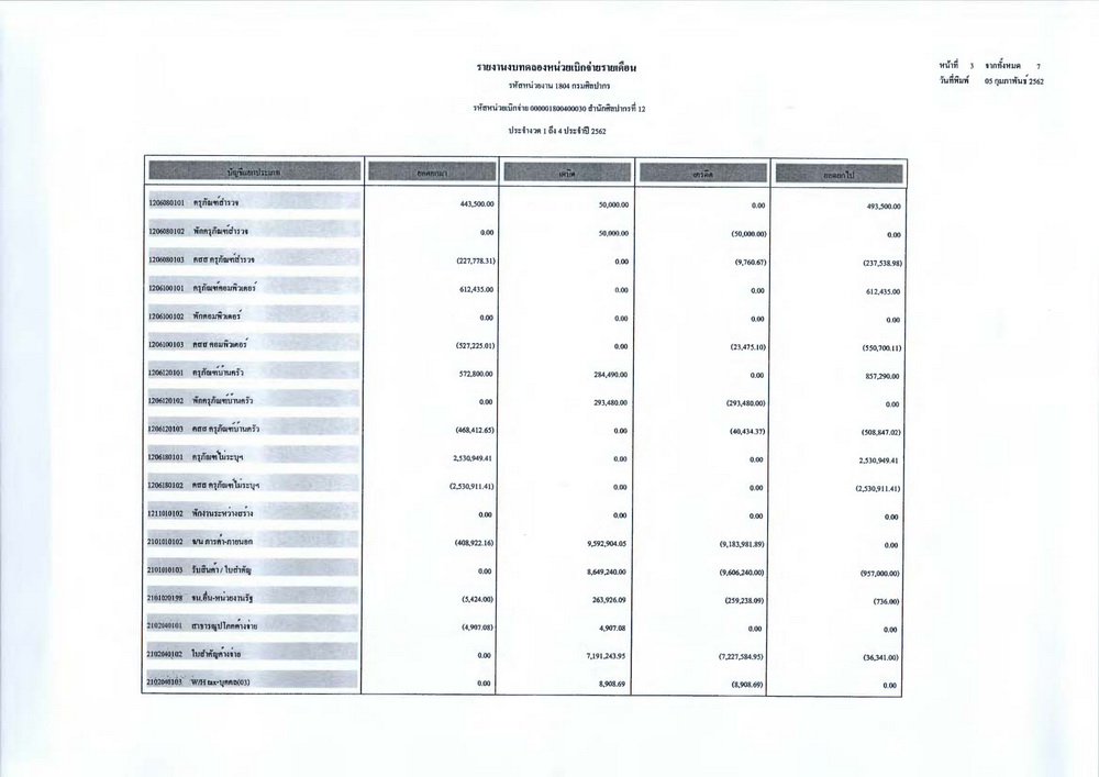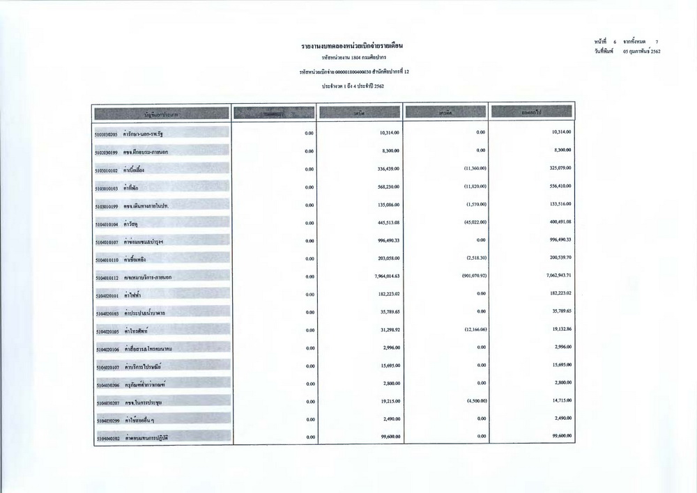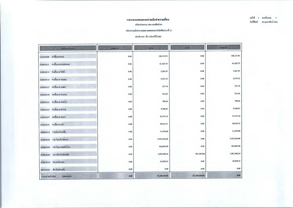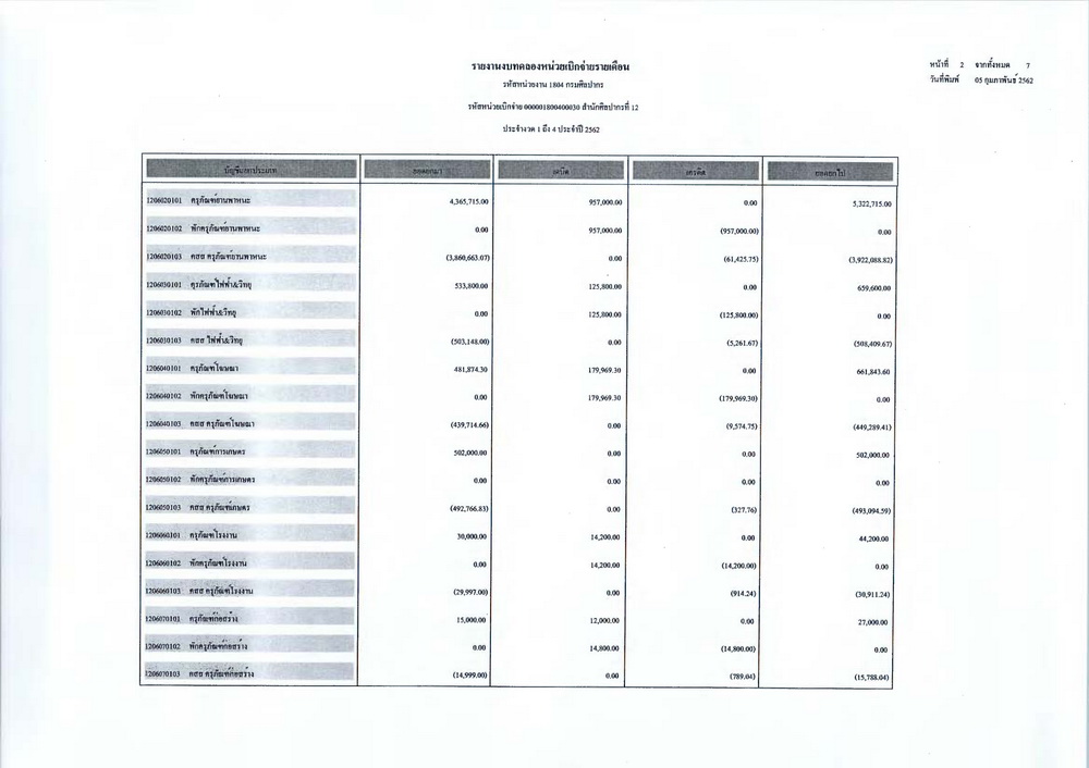 รายงานบัญชีงบทดลองและเอกสารประกอบงบทดลอง สำนักศิลปากรที่ ๑๐ นครราชสีมา (เดือนมกราคม ๒๕๖๒)