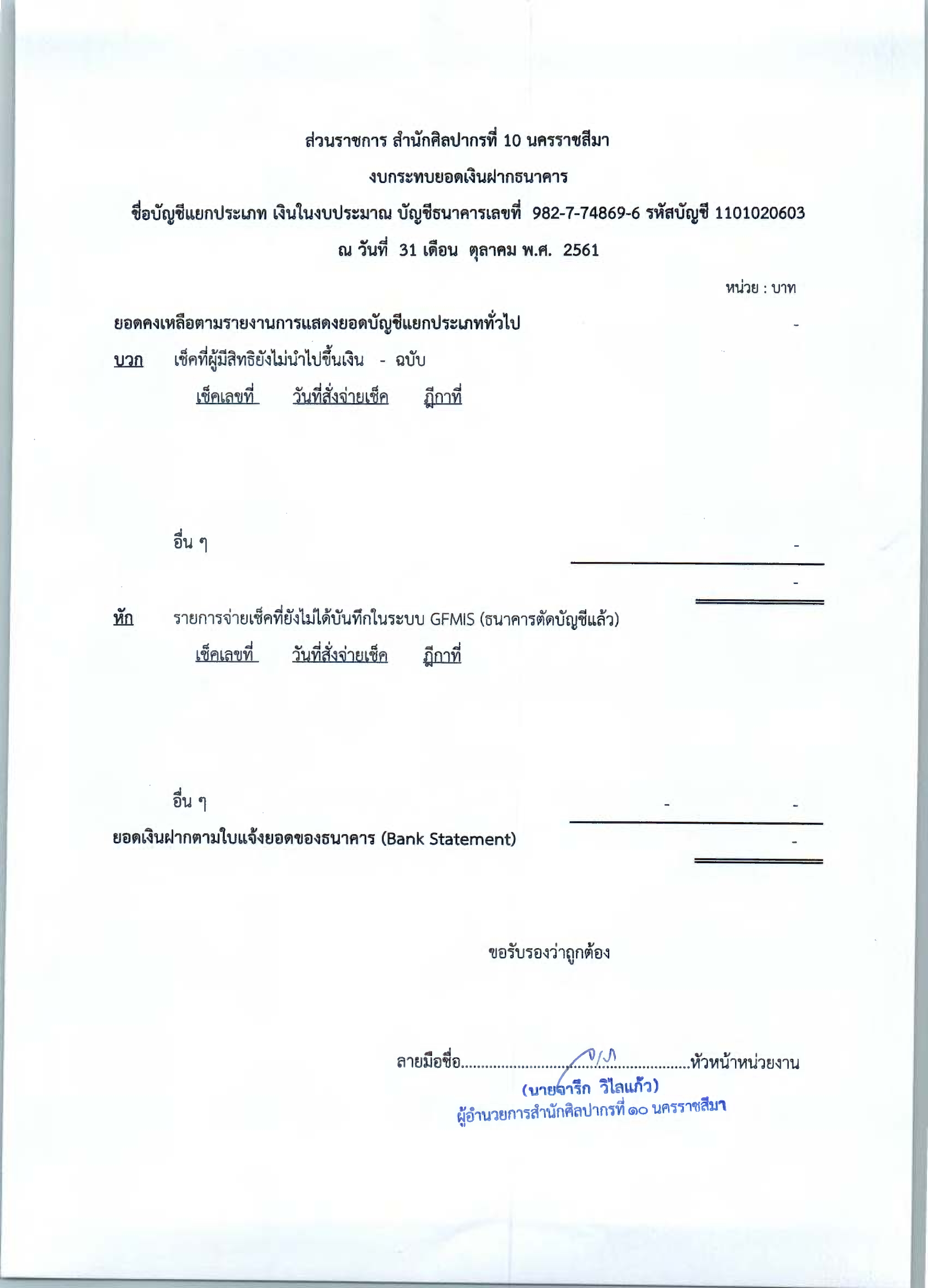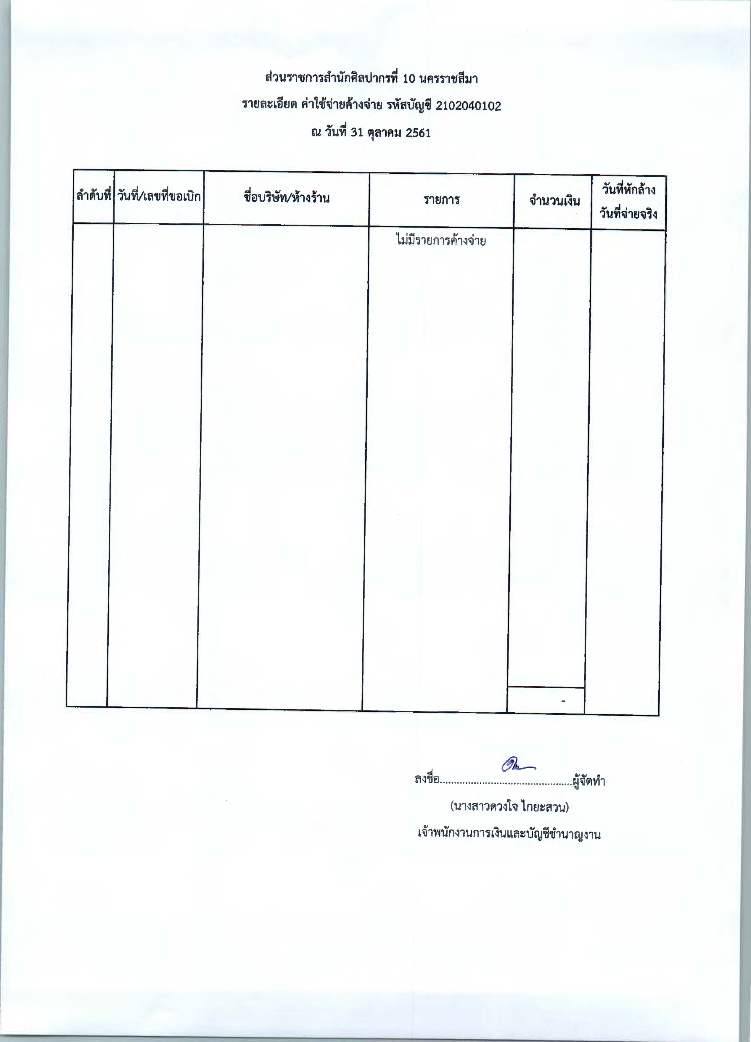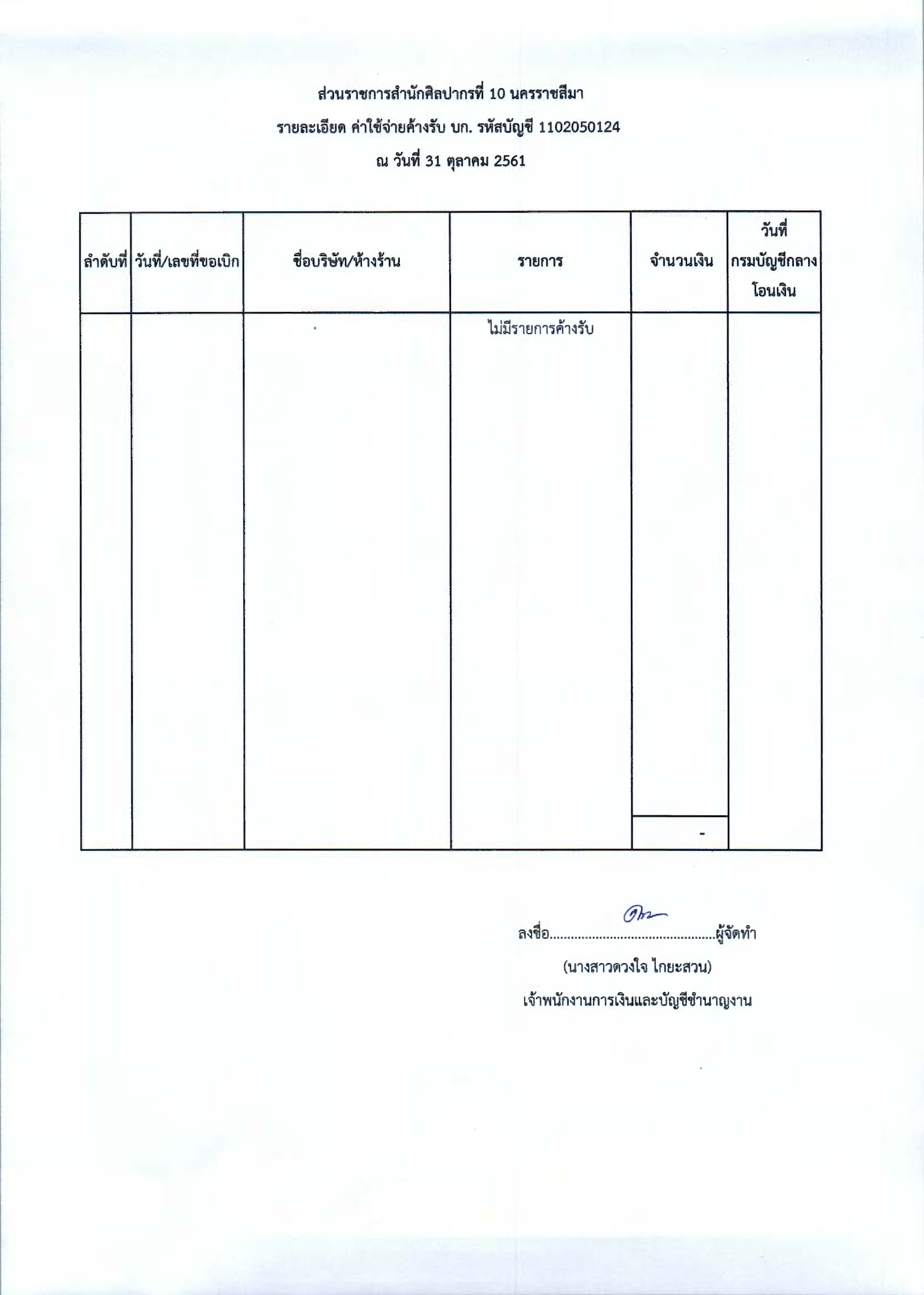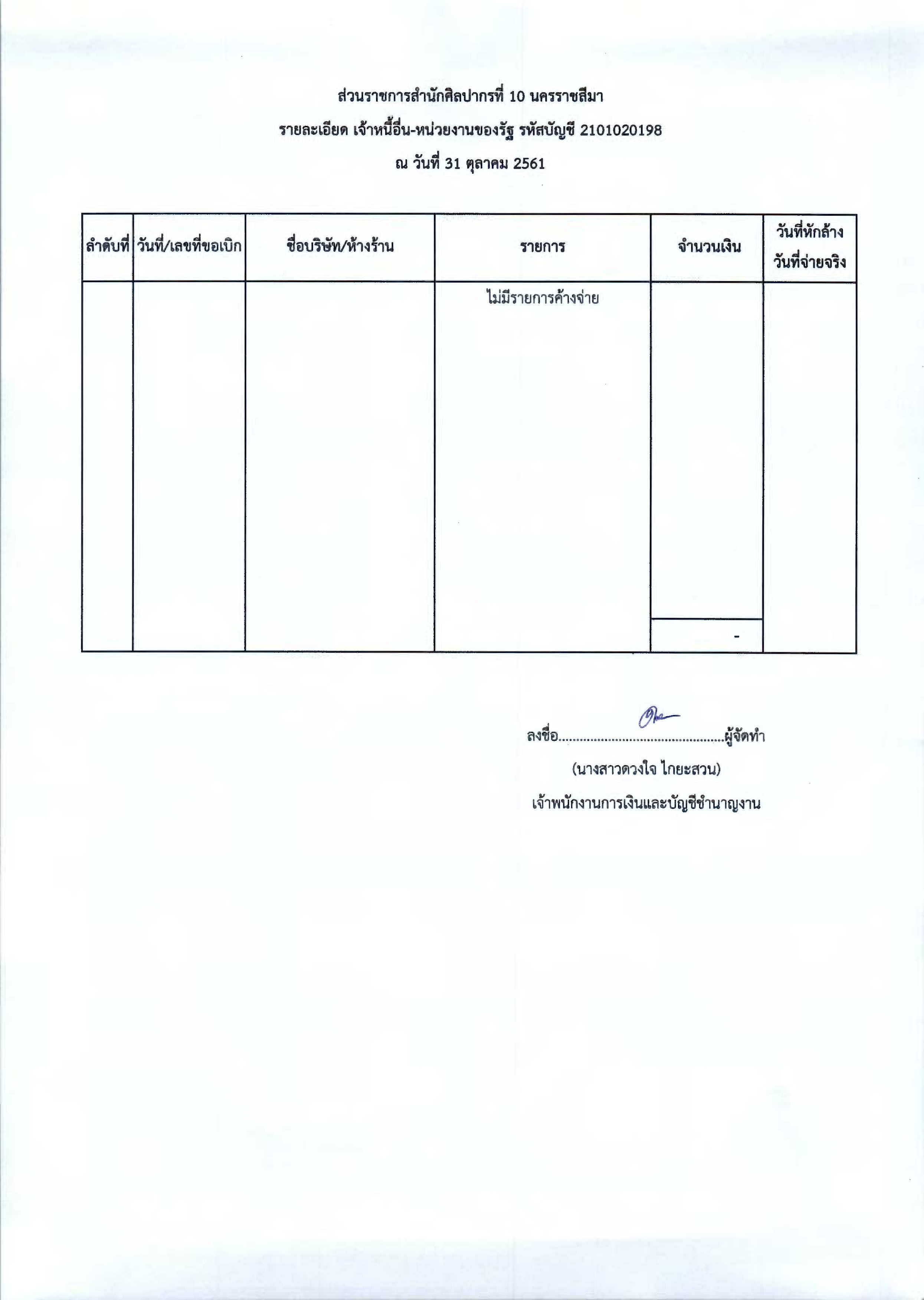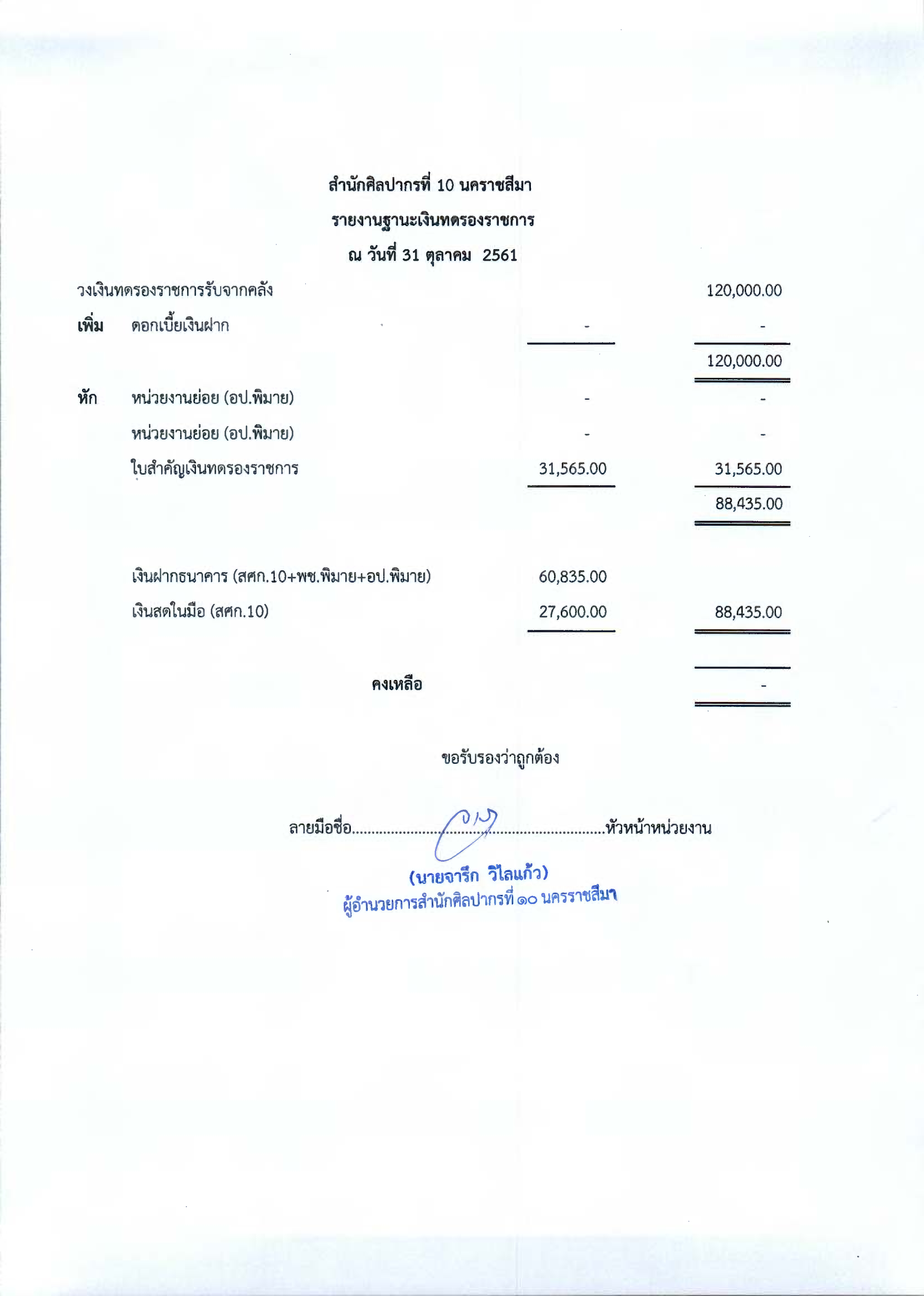 รายงานบัญชีงบทดลองและเอกสารประกอบงบทดลอง สำนักศิลปากรที่ ๑๐ นครราชสีมา (เดือนตุลาคม ๒๕๖๑)
