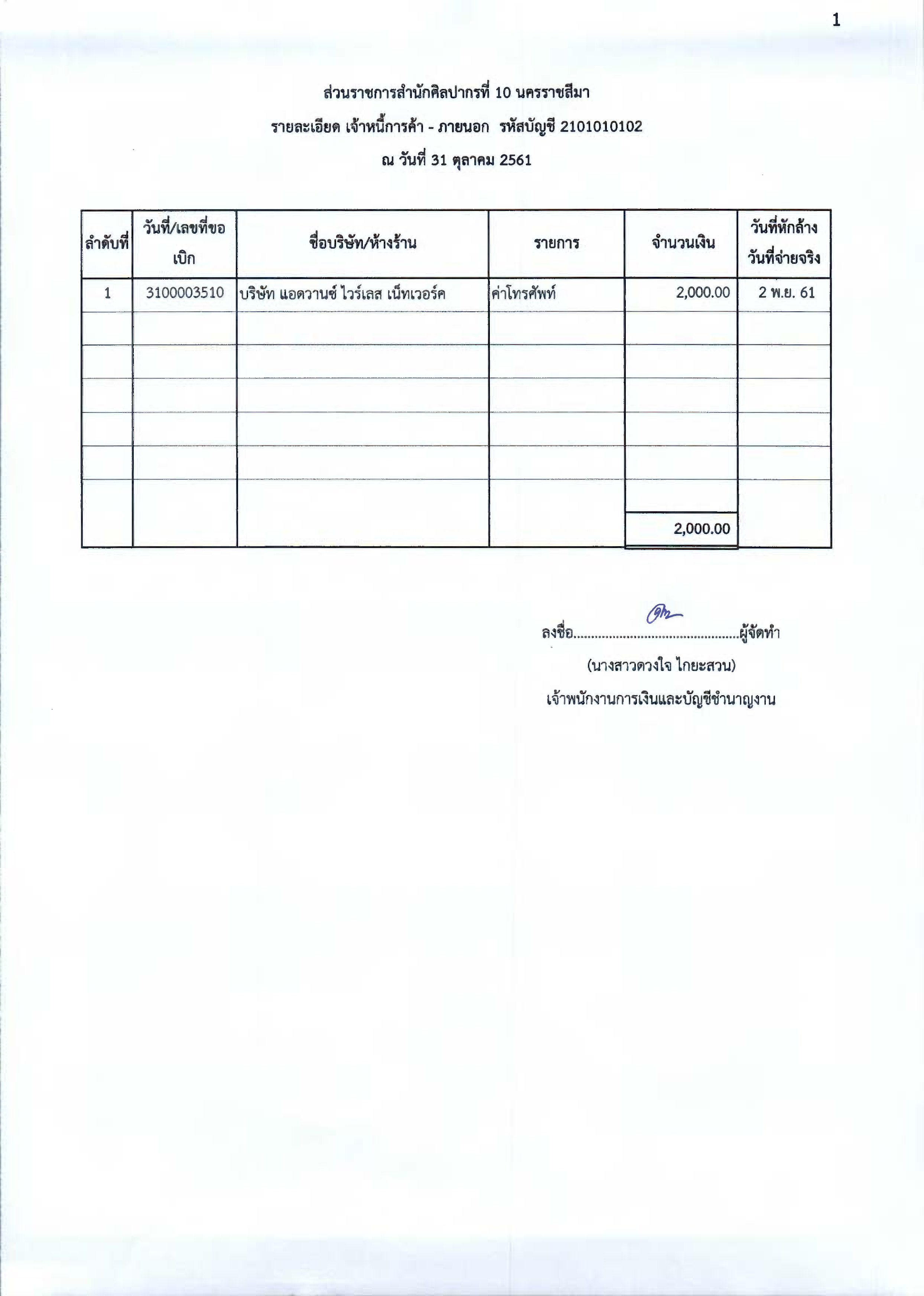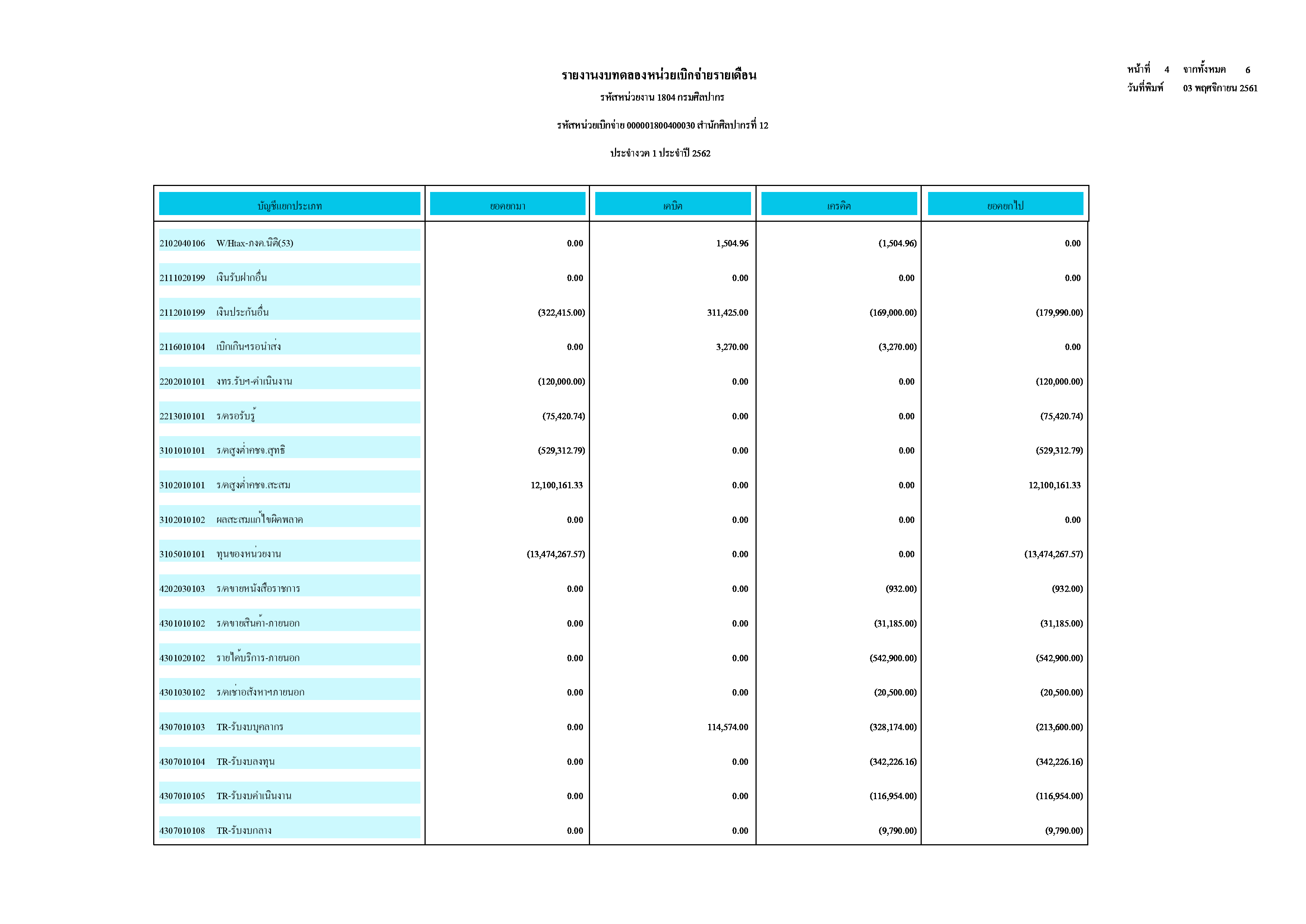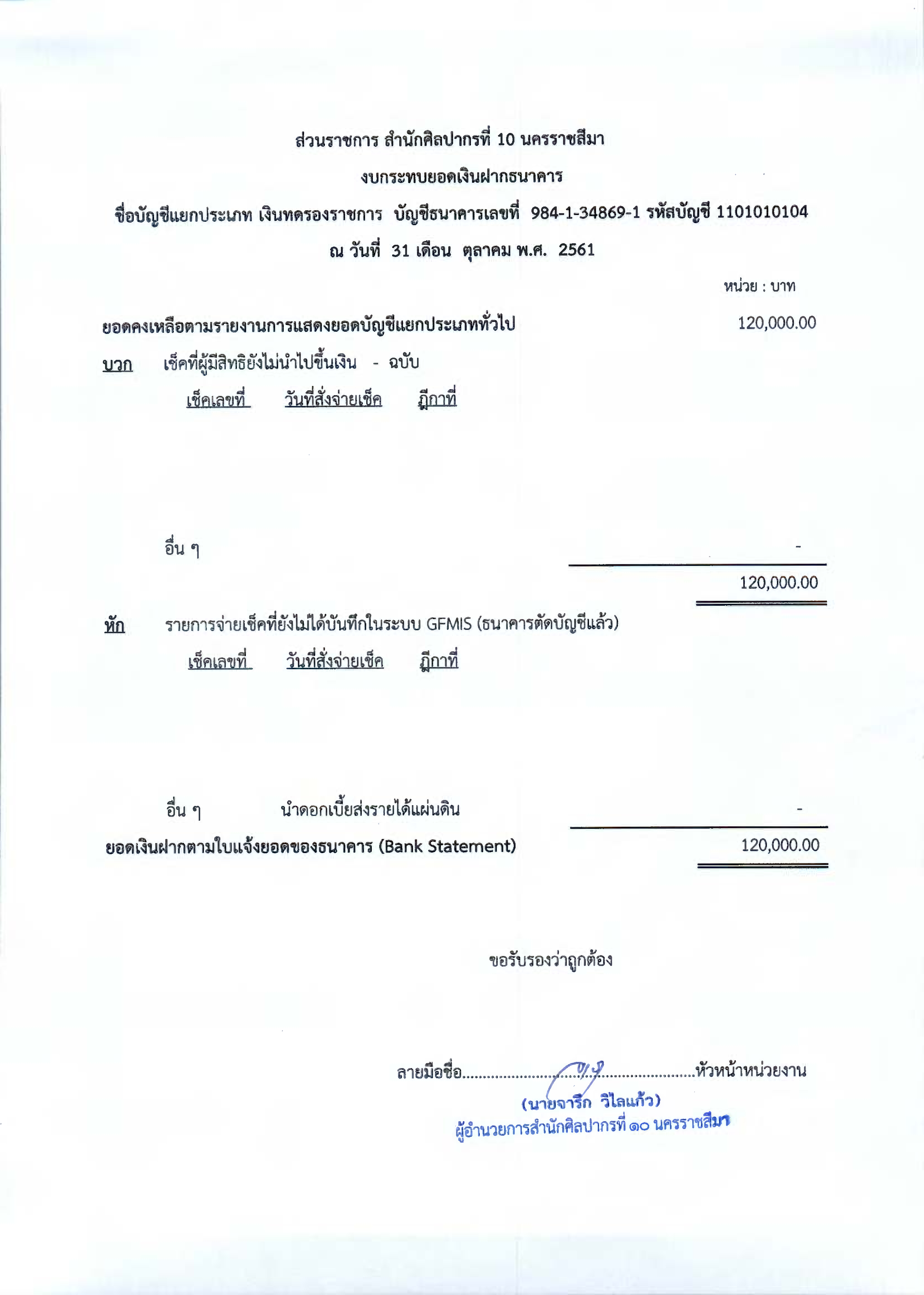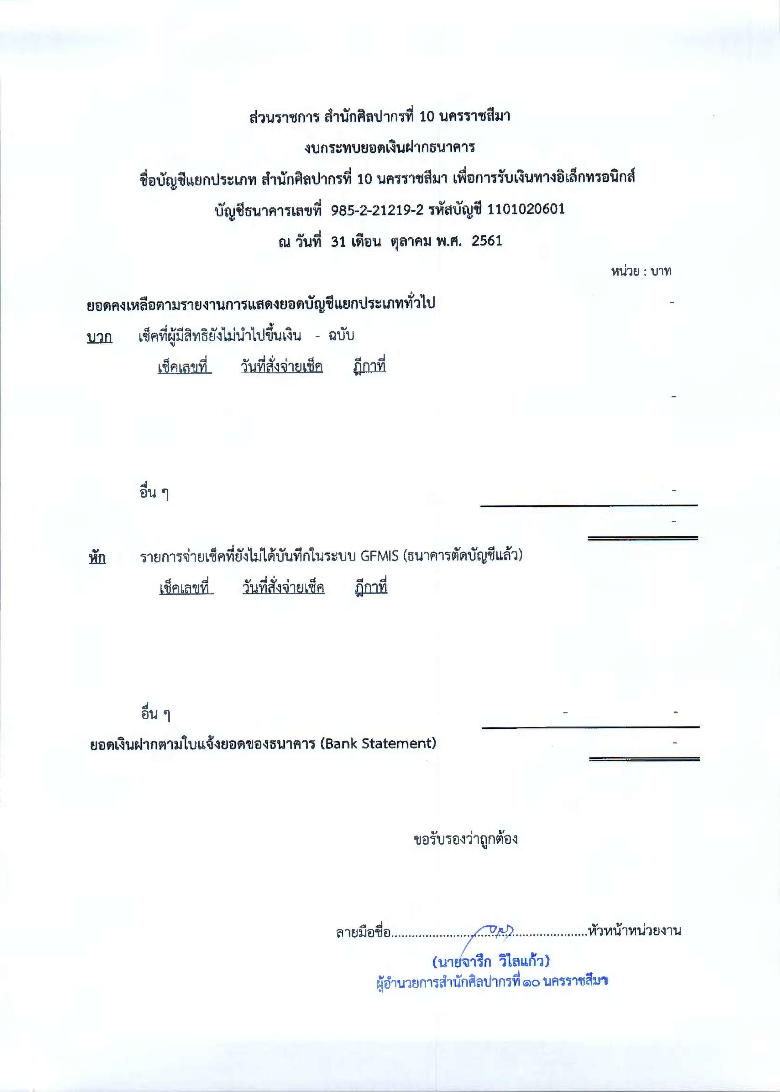 รายงานบัญชีงบทดลองและเอกสารประกอบงบทดลอง สำนักศิลปากรที่ ๑๐ นครราชสีมา (เดือนตุลาคม ๒๕๖๑)