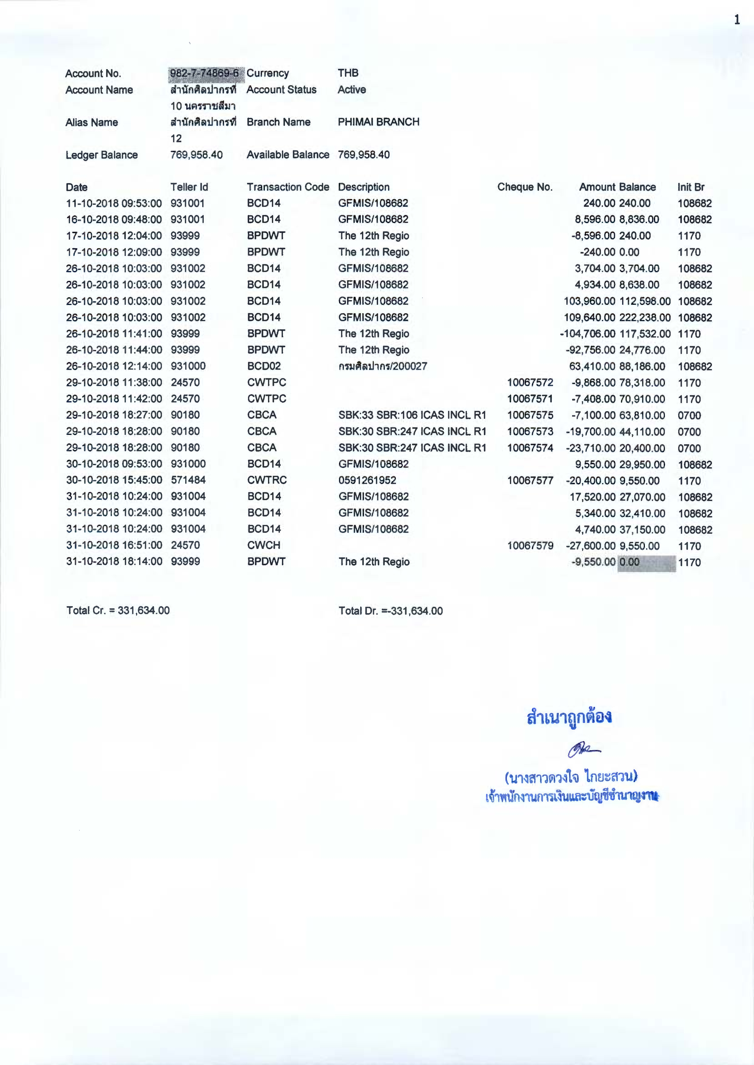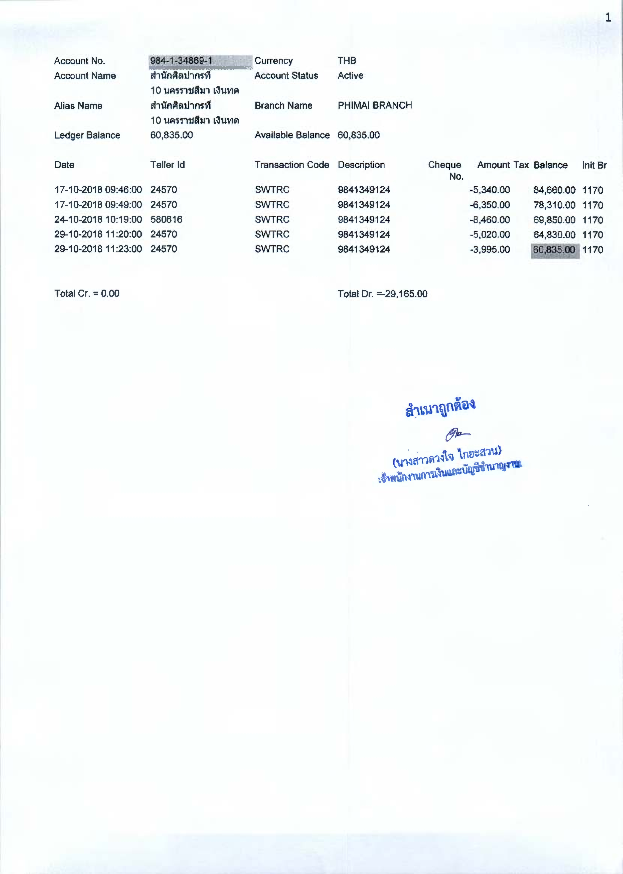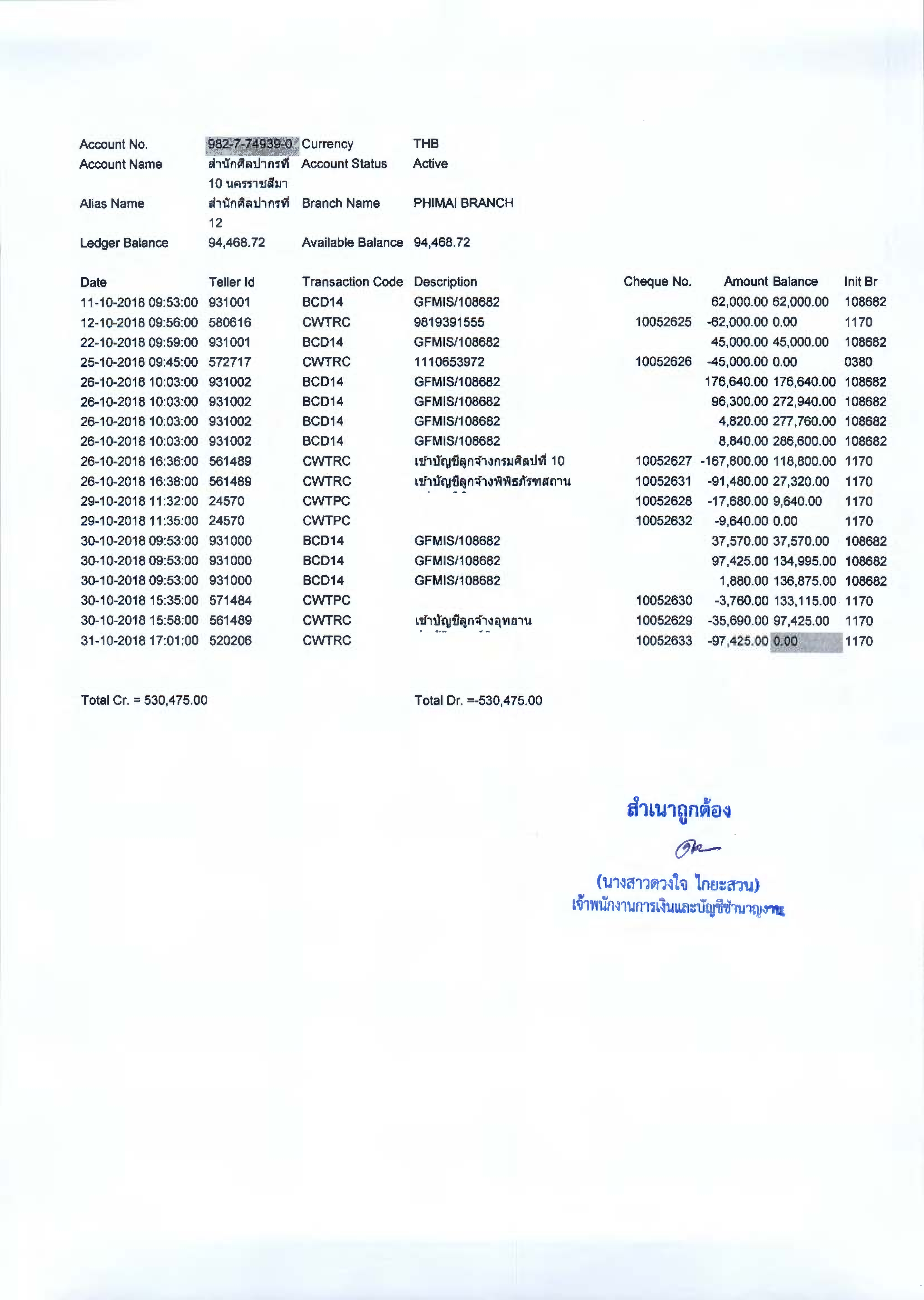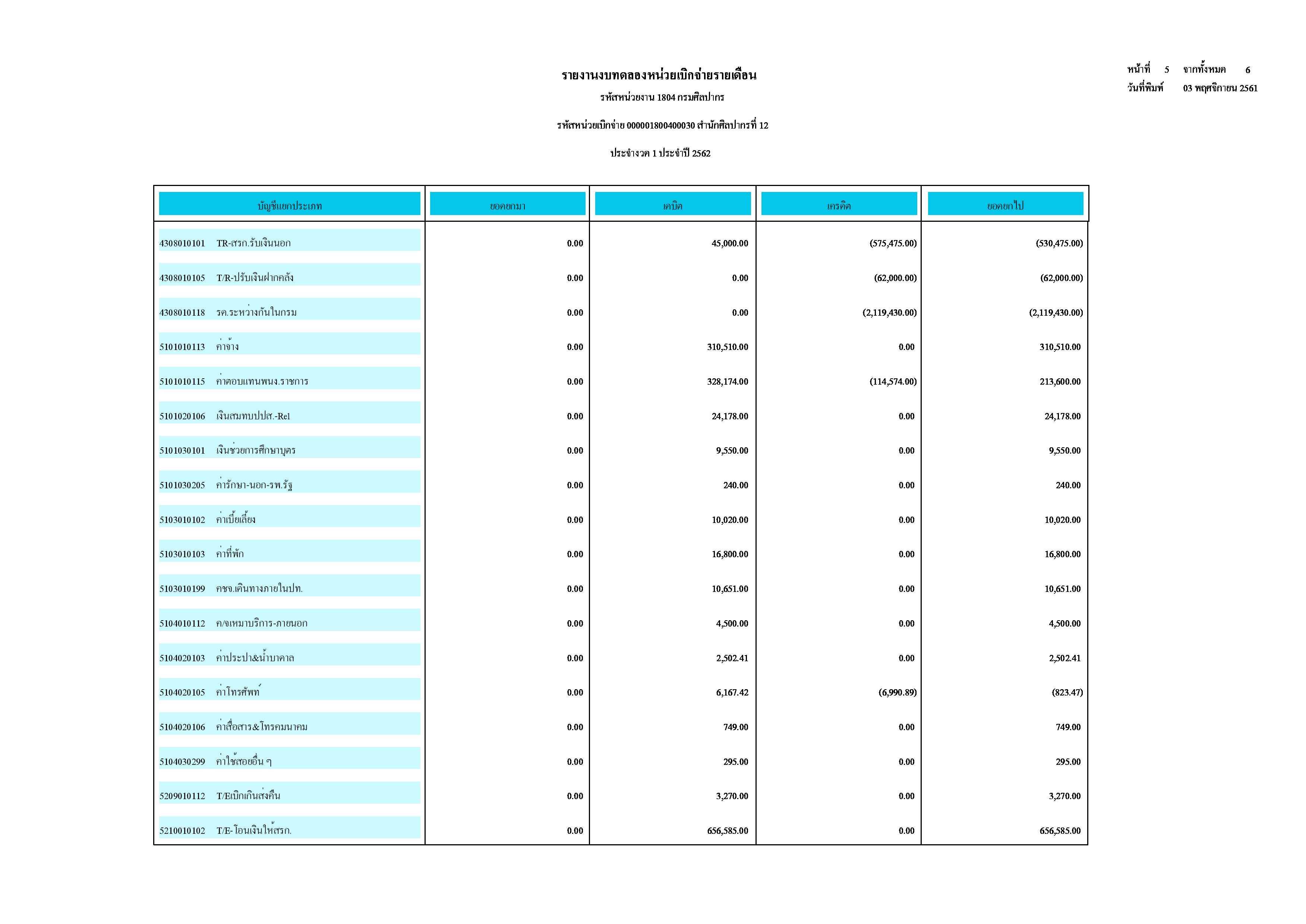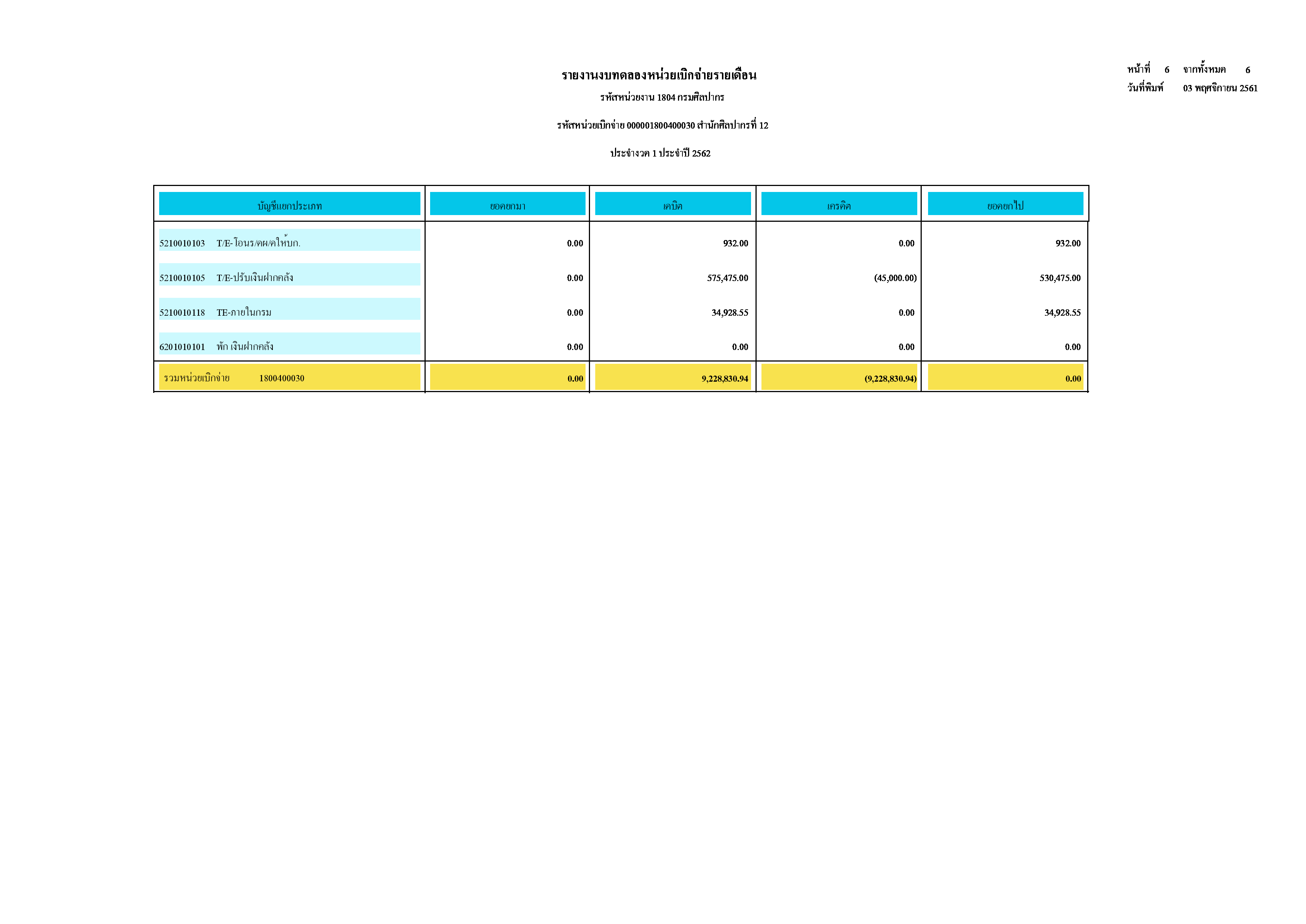รายงานบัญชีงบทดลองและเอกสารประกอบงบทดลอง สำนักศิลปากรที่ ๑๐ นครราชสีมา (เดือนตุลาคม ๒๕๖๑)