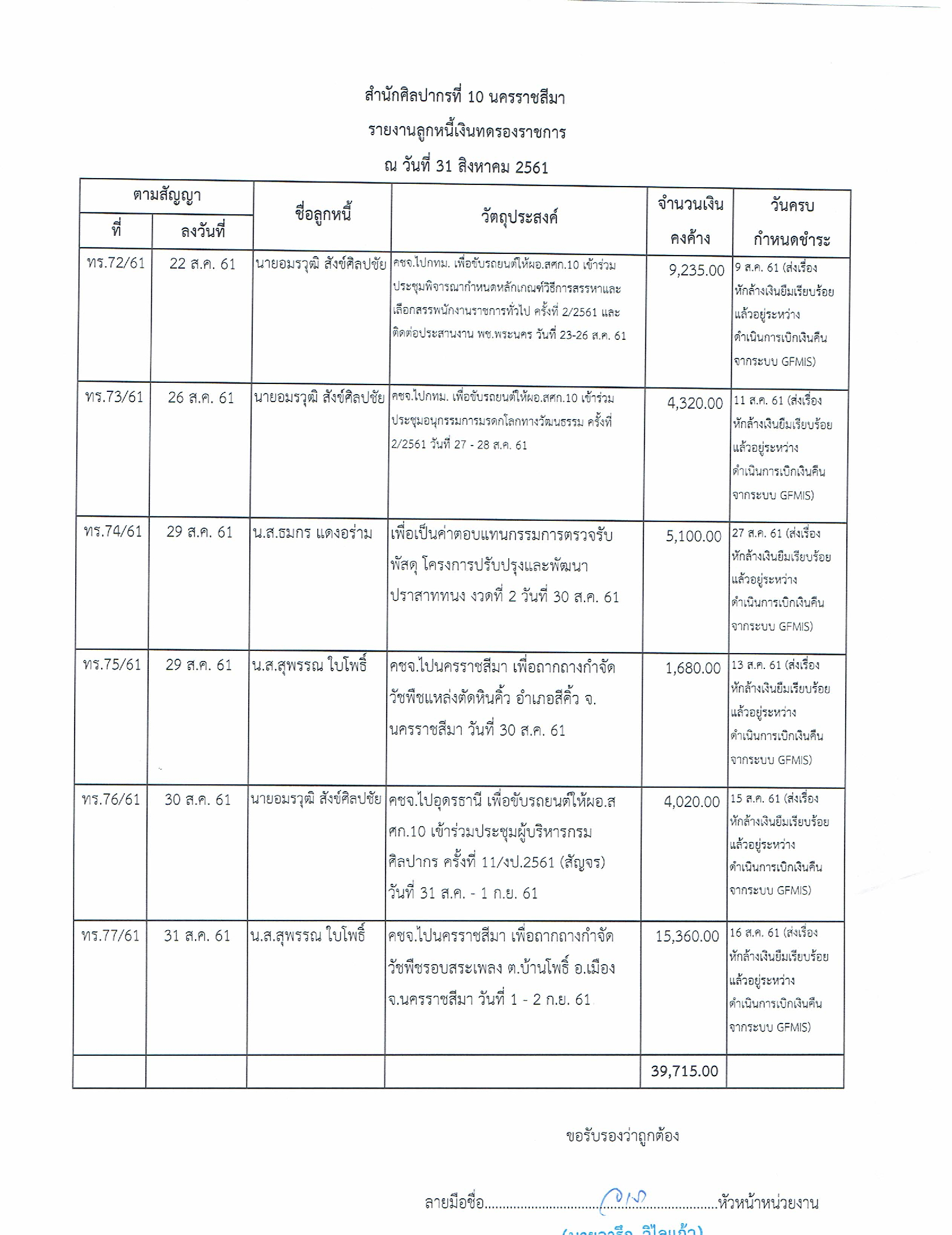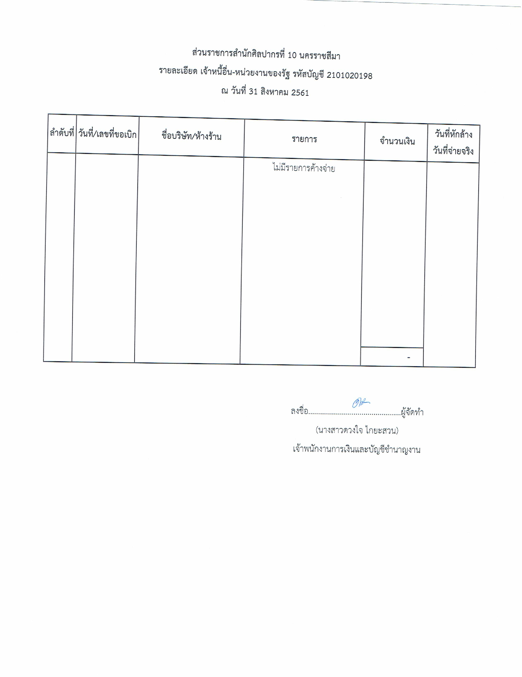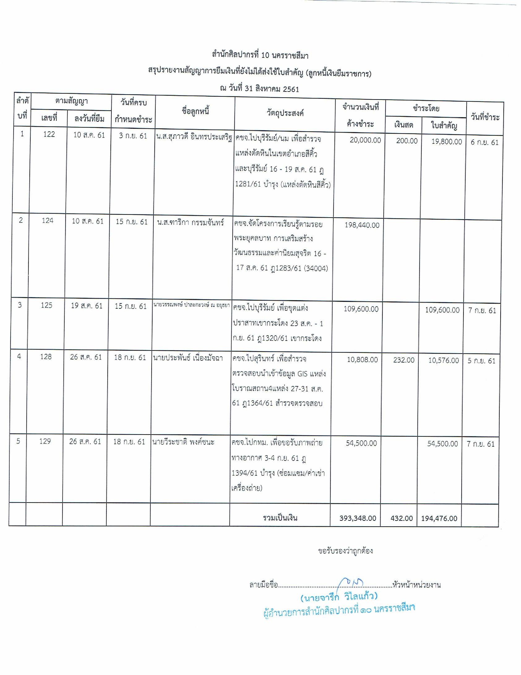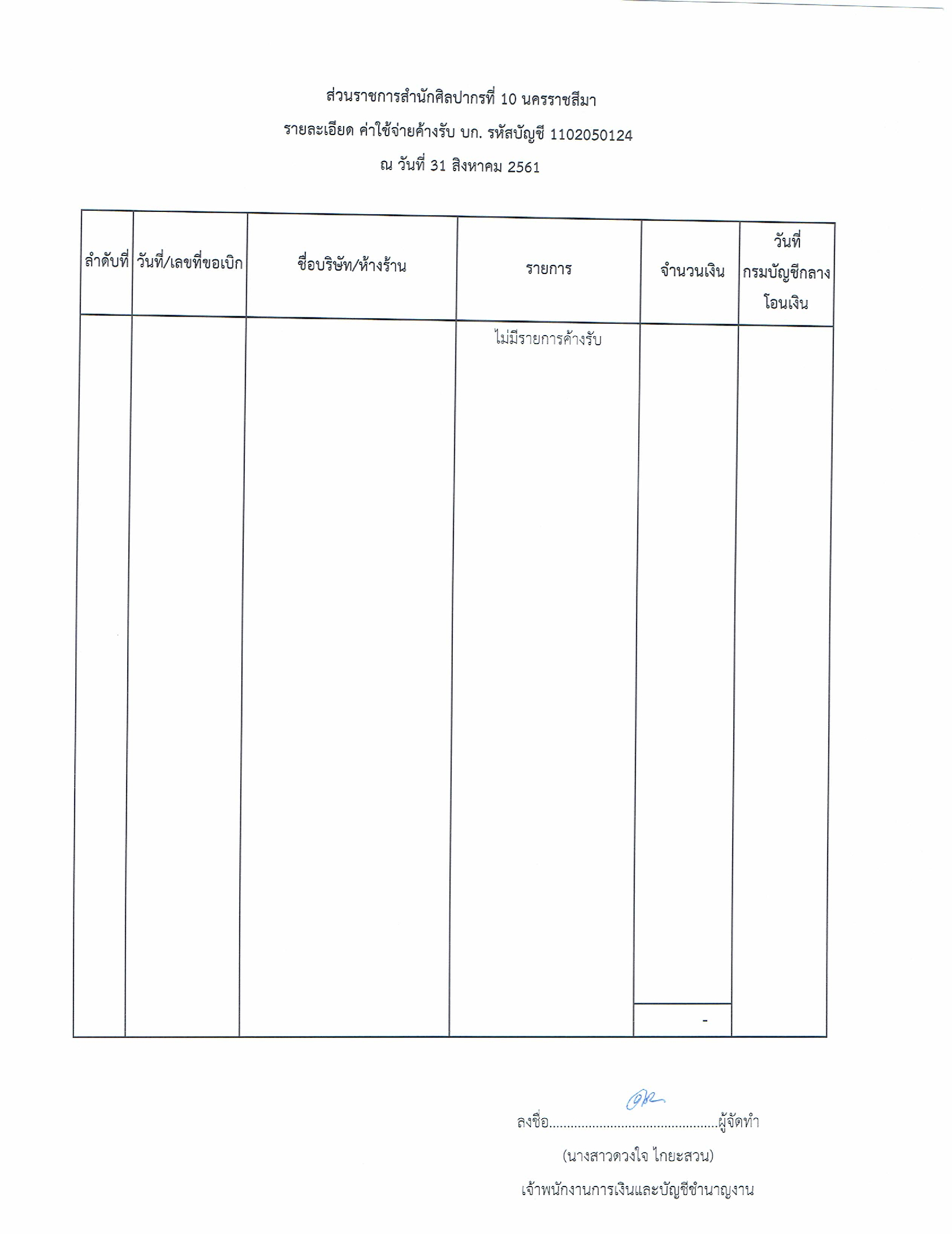 รายงานบัญชีงบทดลองและเอกสารประกอบงบทดลอง สำนักศิลปากรที่ ๑๐ นครราชสีมา (เดือนสิงหาคม ๒๕๖๑)
