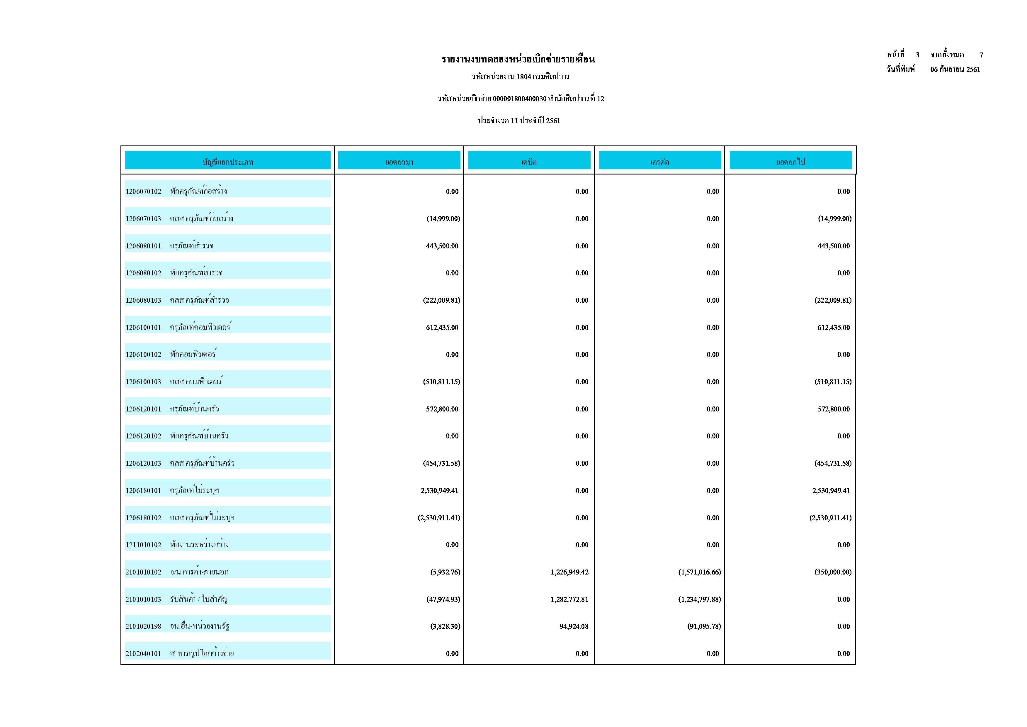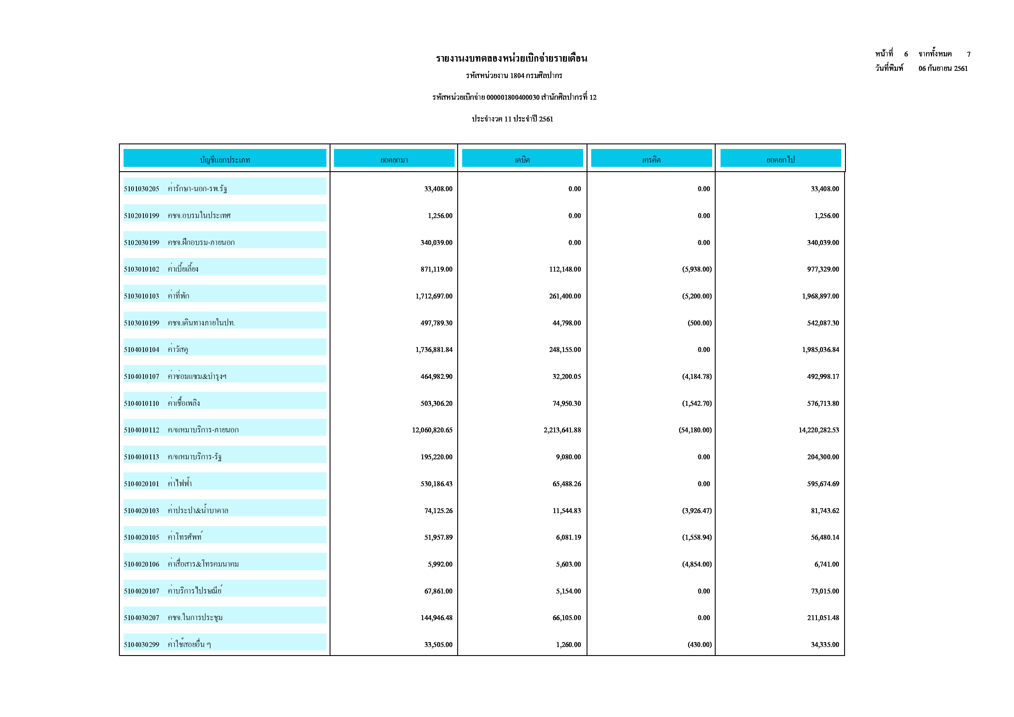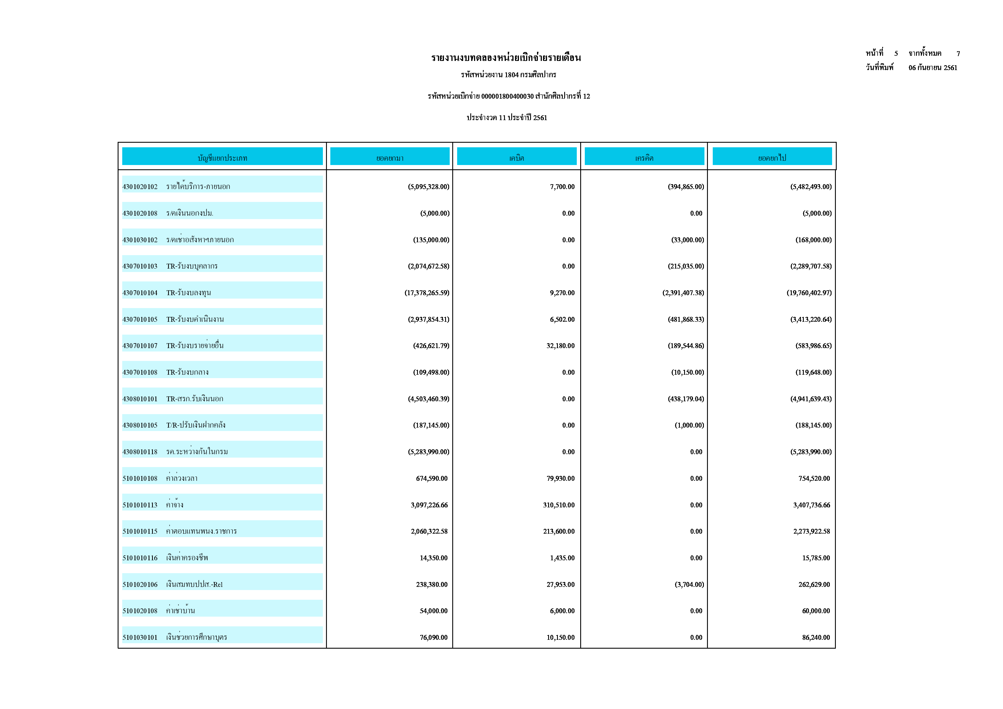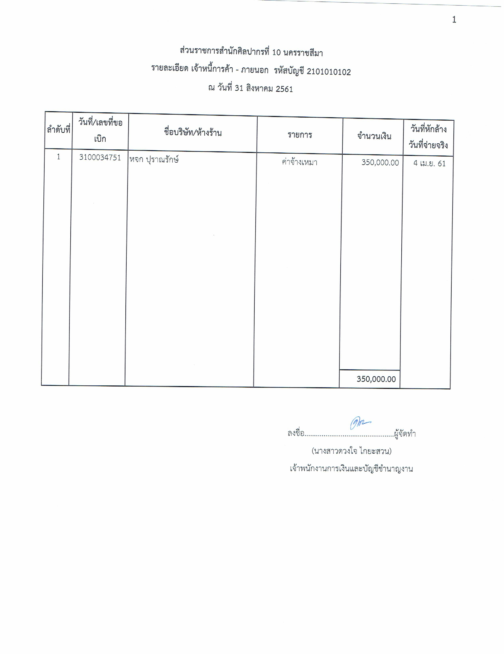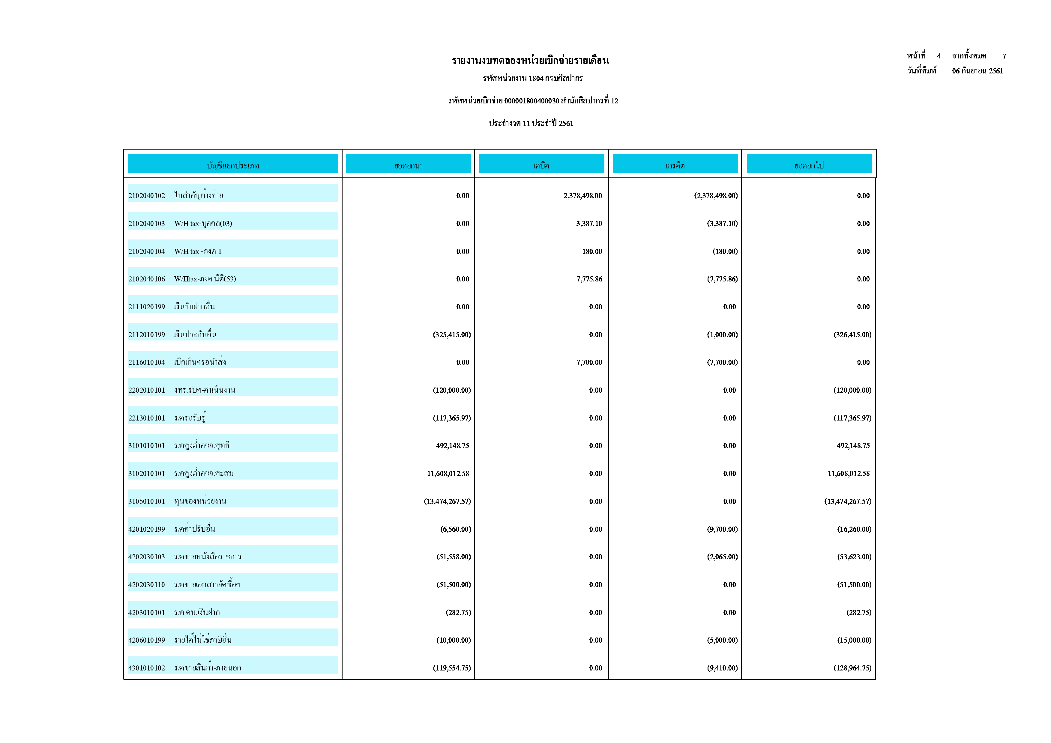 รายงานบัญชีงบทดลองและเอกสารประกอบงบทดลอง สำนักศิลปากรที่ ๑๐ นครราชสีมา (เดือนสิงหาคม ๒๕๖๑)