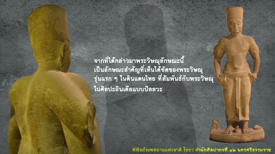 ซึ่งเทวรูปองค์นี้คล้ายกับชิ้นส่วนเทวรูปพระวิษณุที่พบที่เขาศรีวิชัย อำเภอพุนพิน