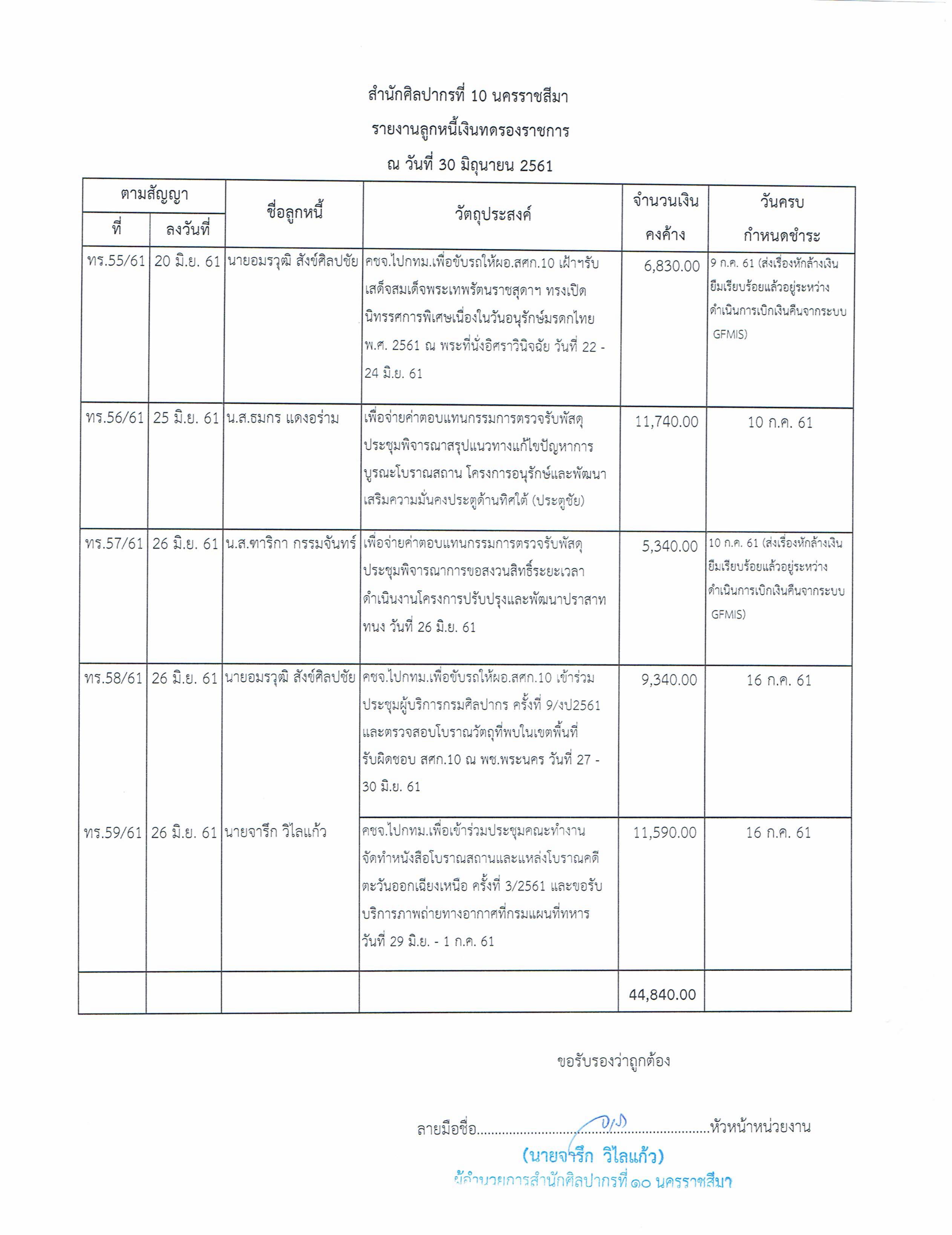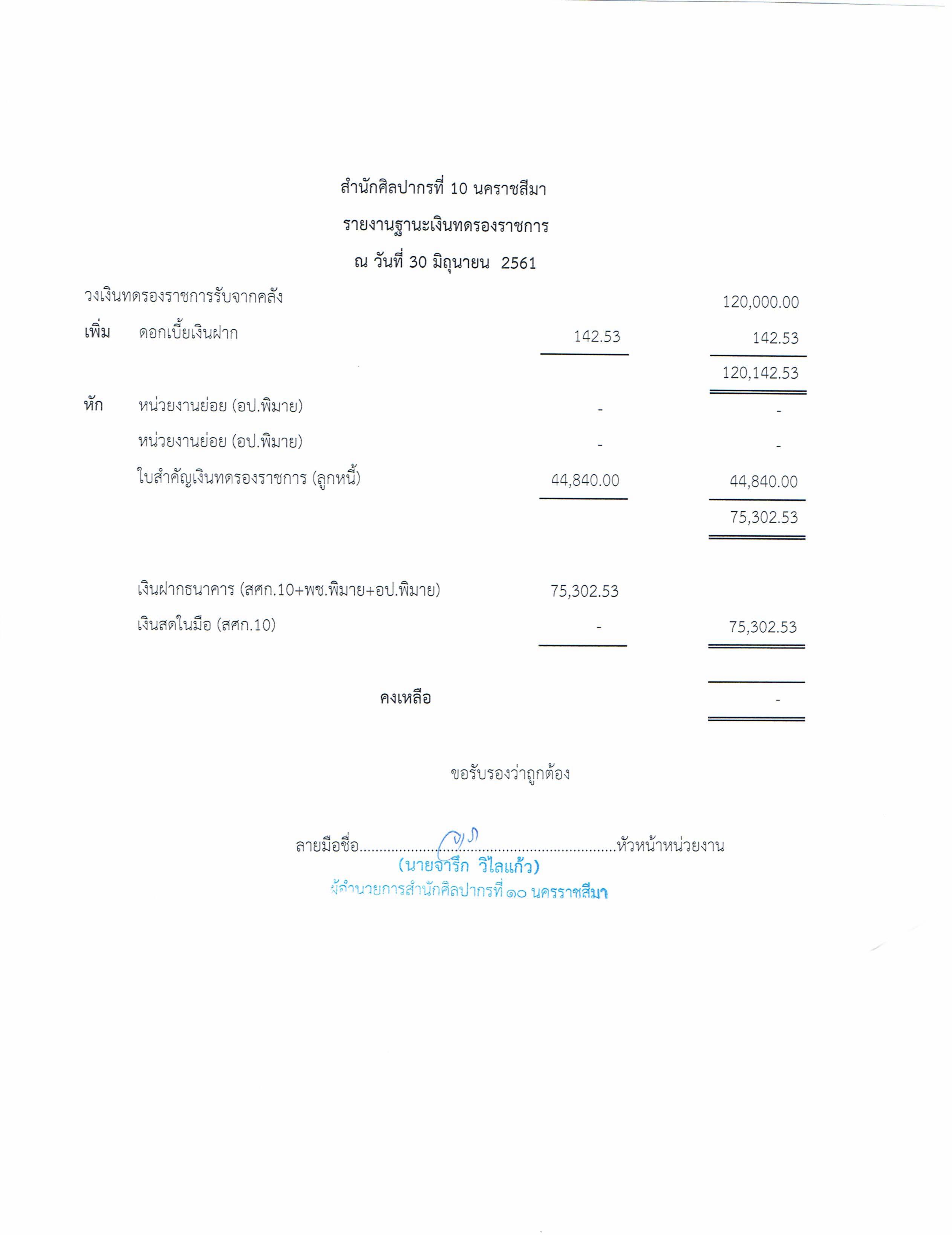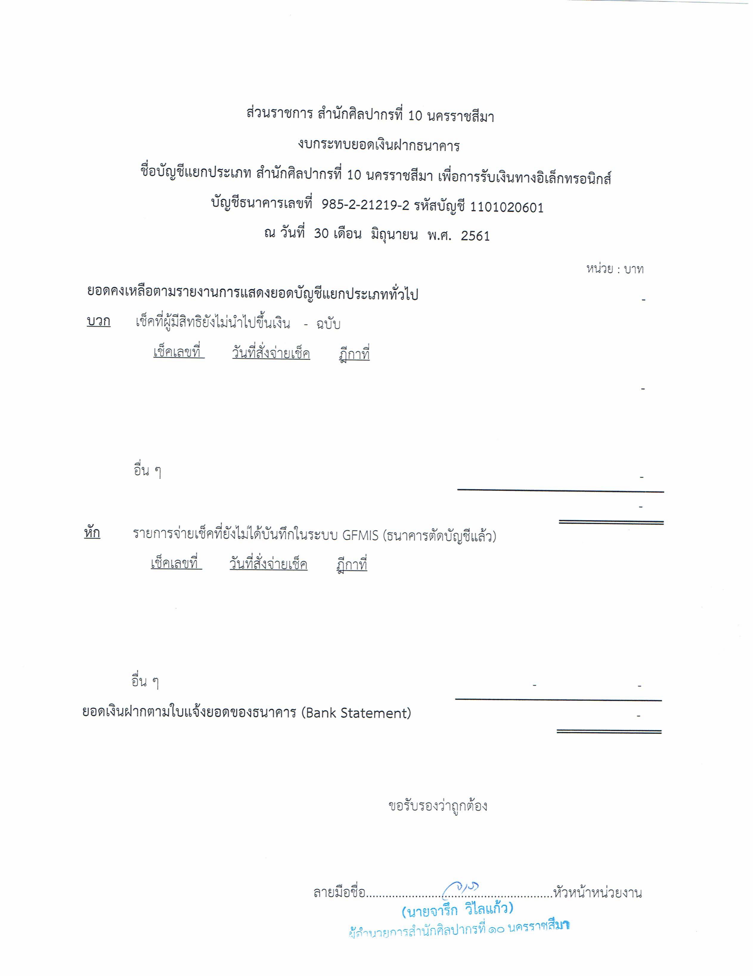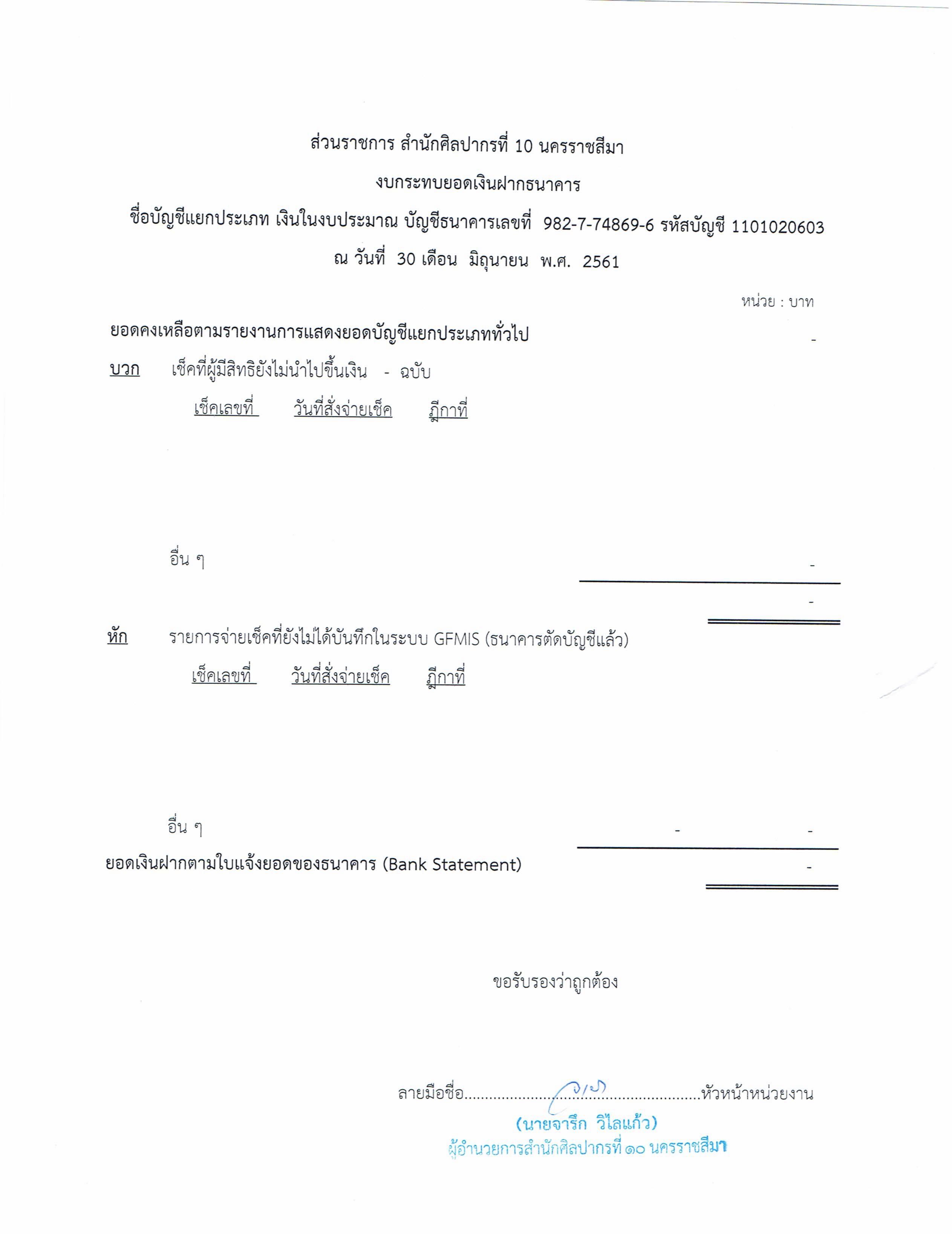 รายงานบัญชีงบทดลองและเอกสารประกอบงบทดลอง สำนักศิลปากรที่ ๑๐ นครราชสีมา (เดือนมิถุนายน ๒๕๖๑)