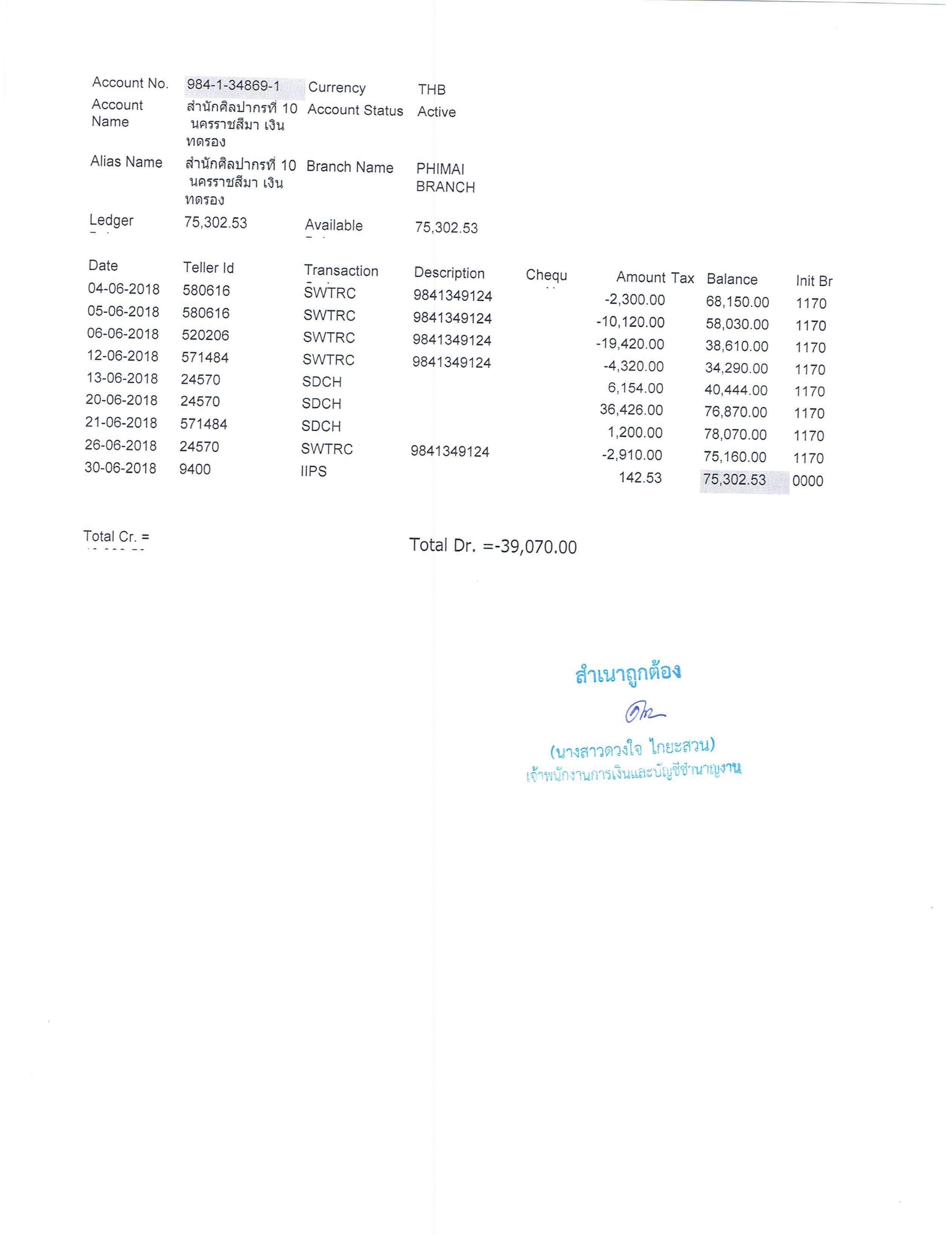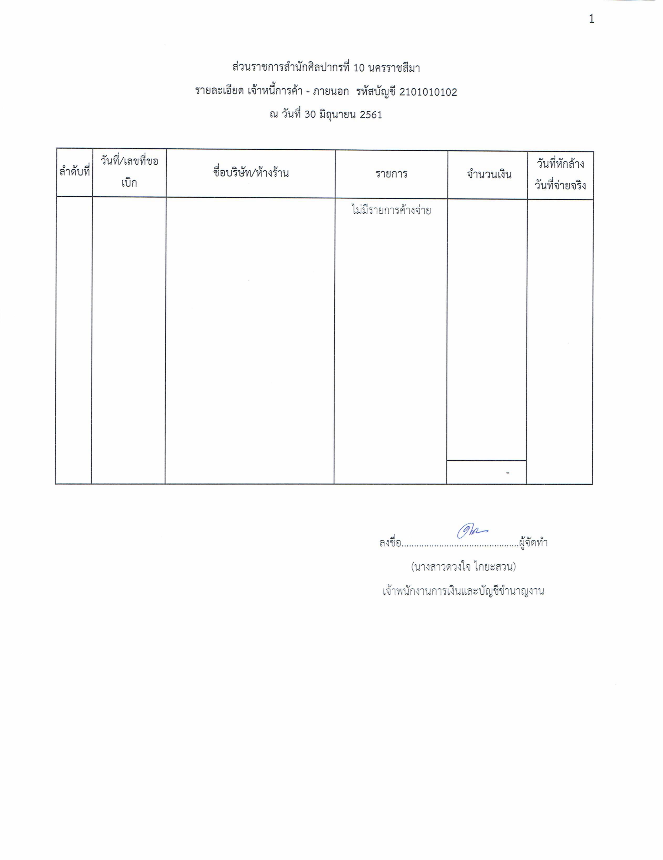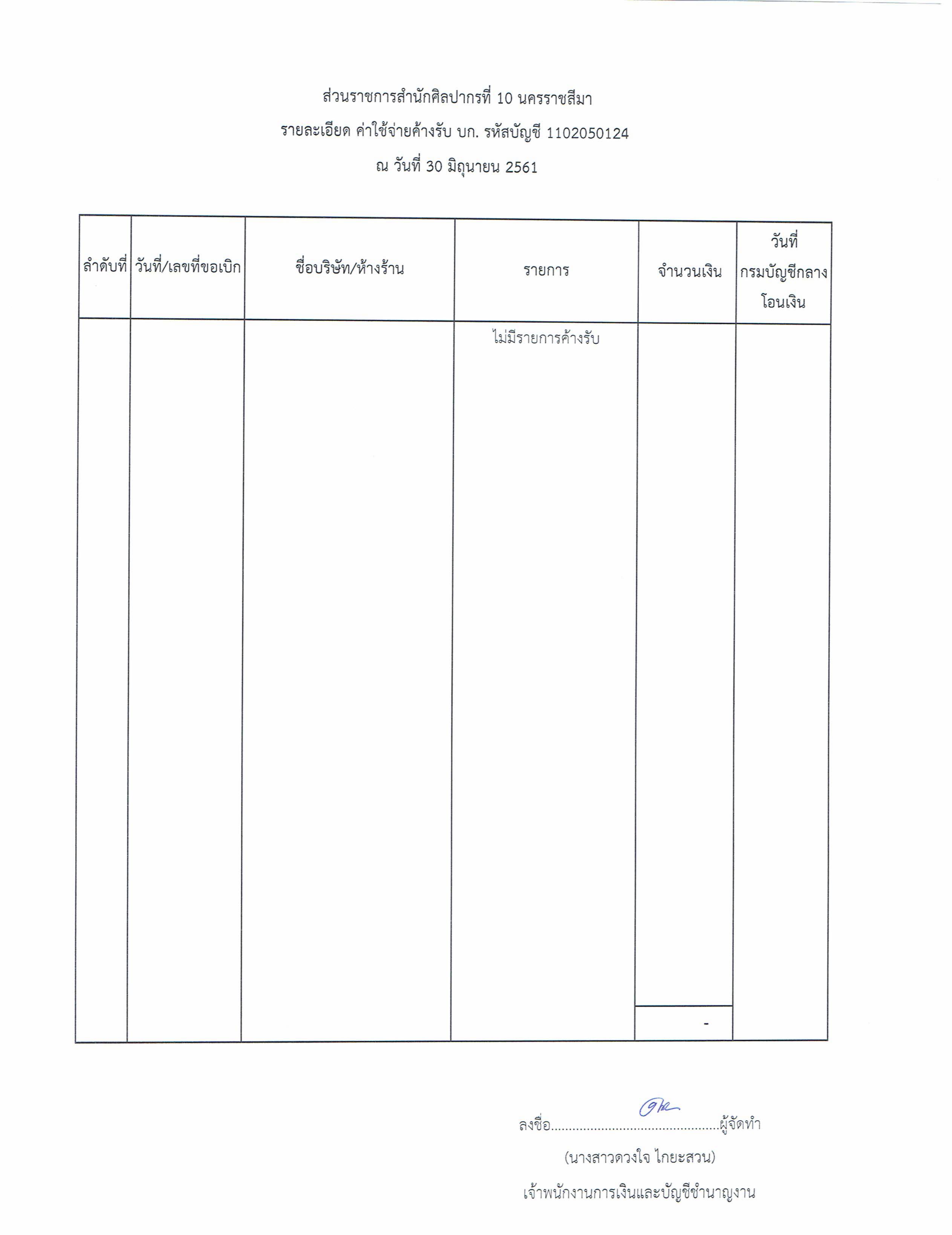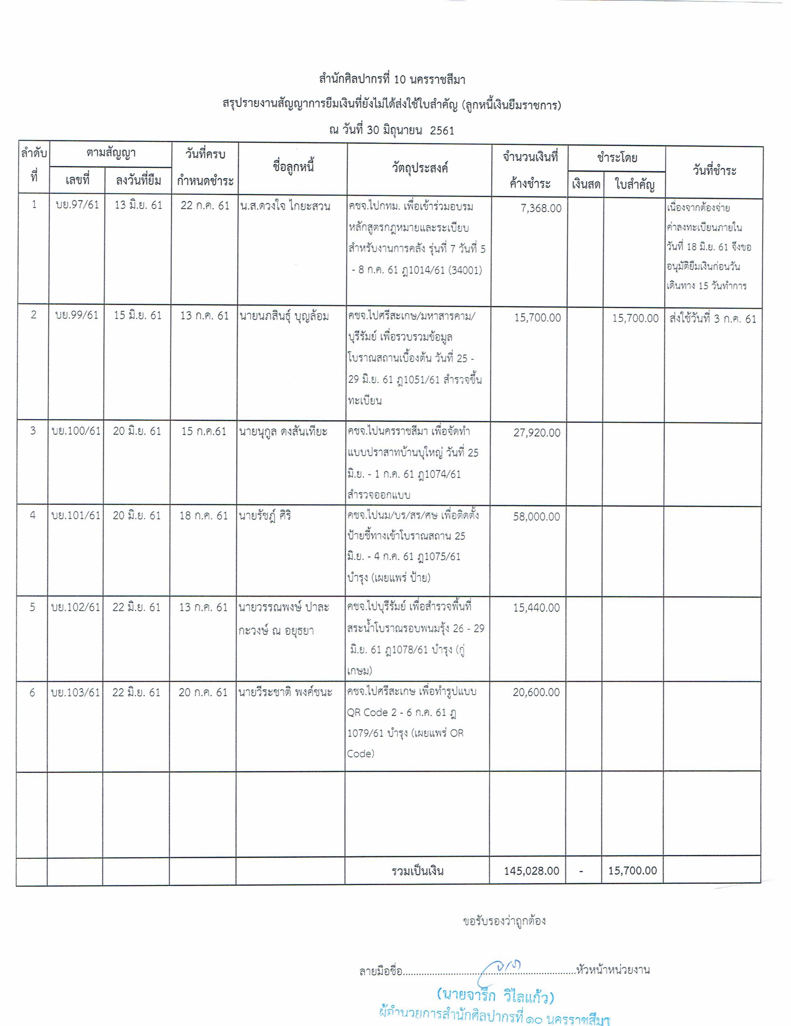 รายงานบัญชีงบทดลองและเอกสารประกอบงบทดลอง สำนักศิลปากรที่ ๑๐ นครราชสีมา (เดือนมิถุนายน ๒๕๖๑)