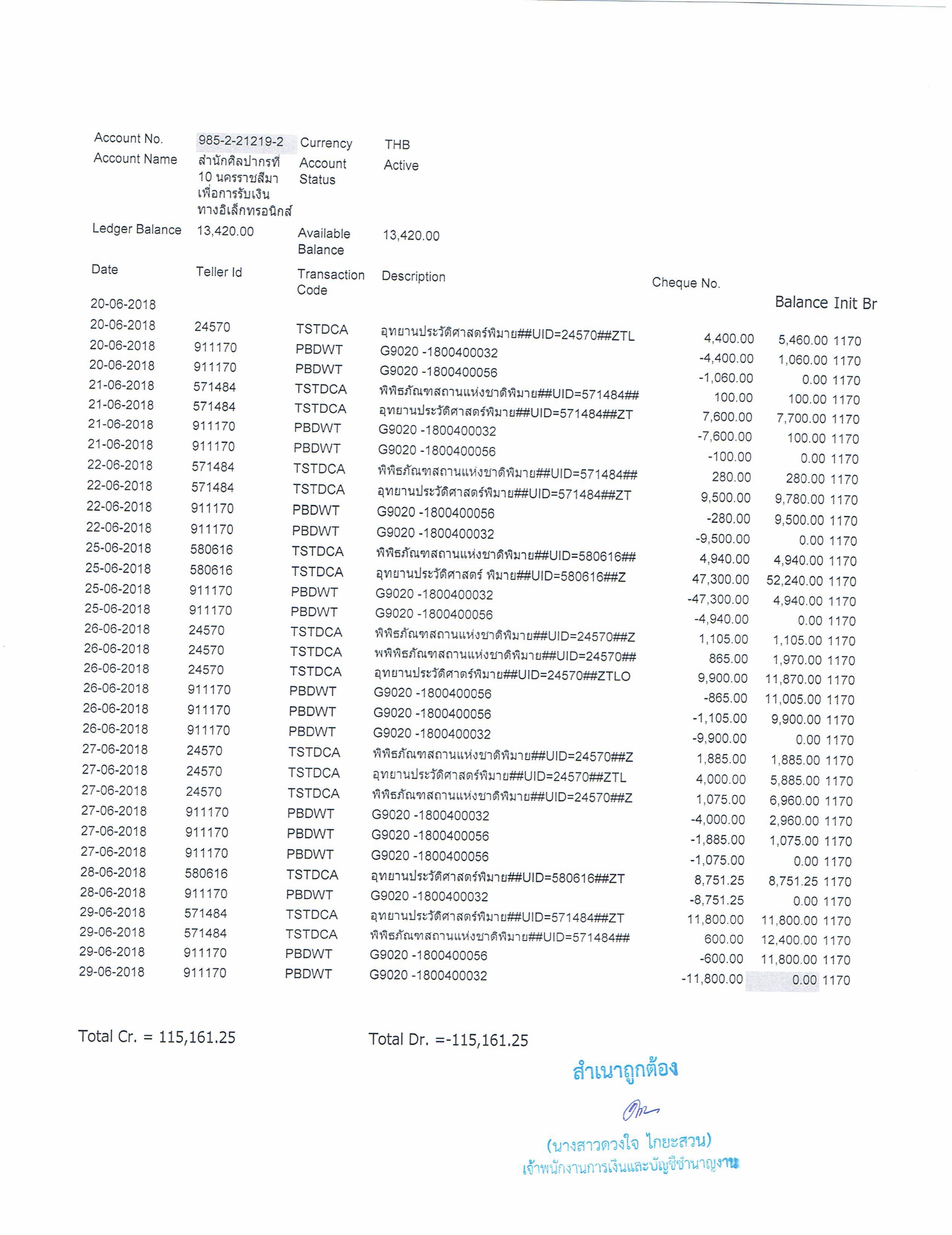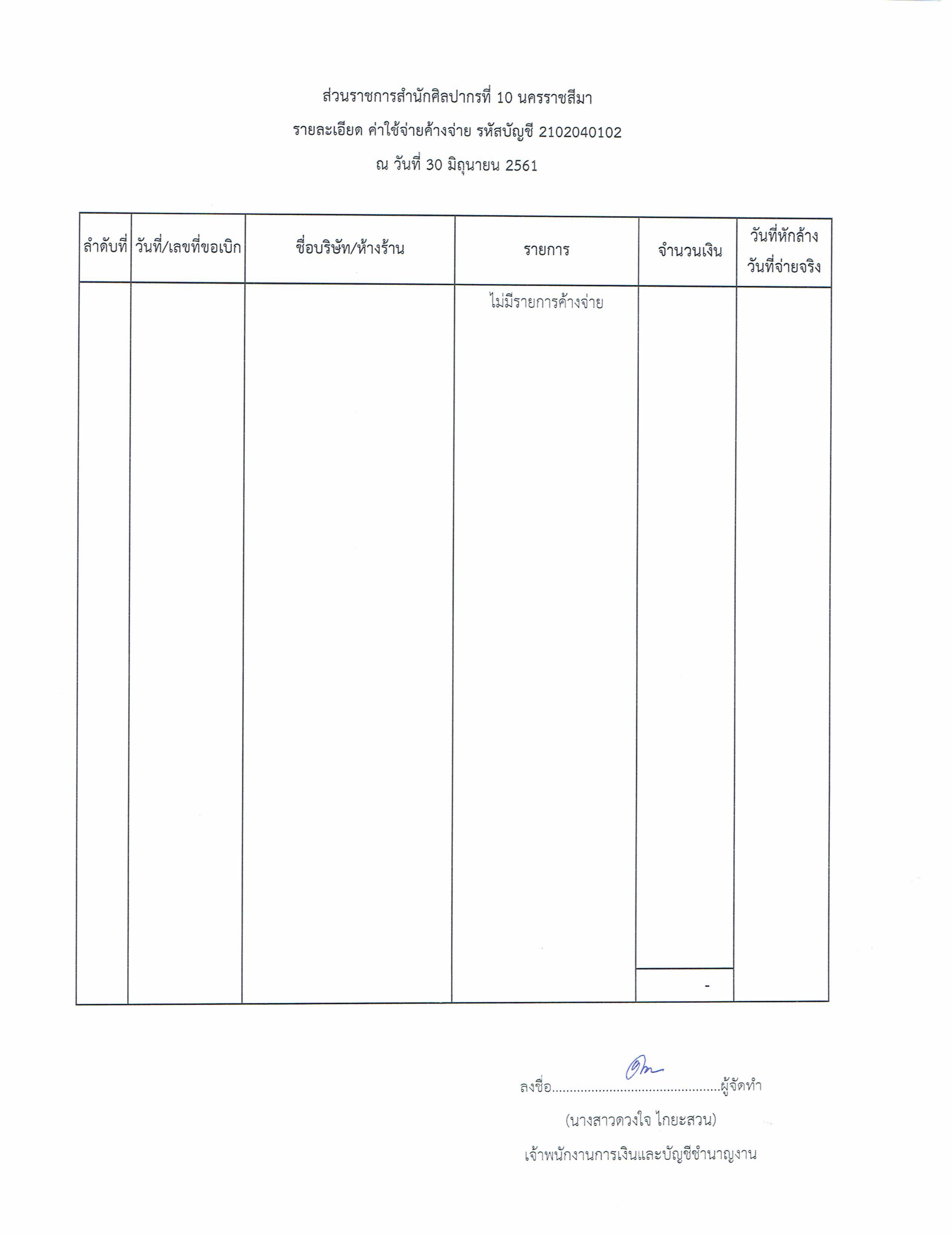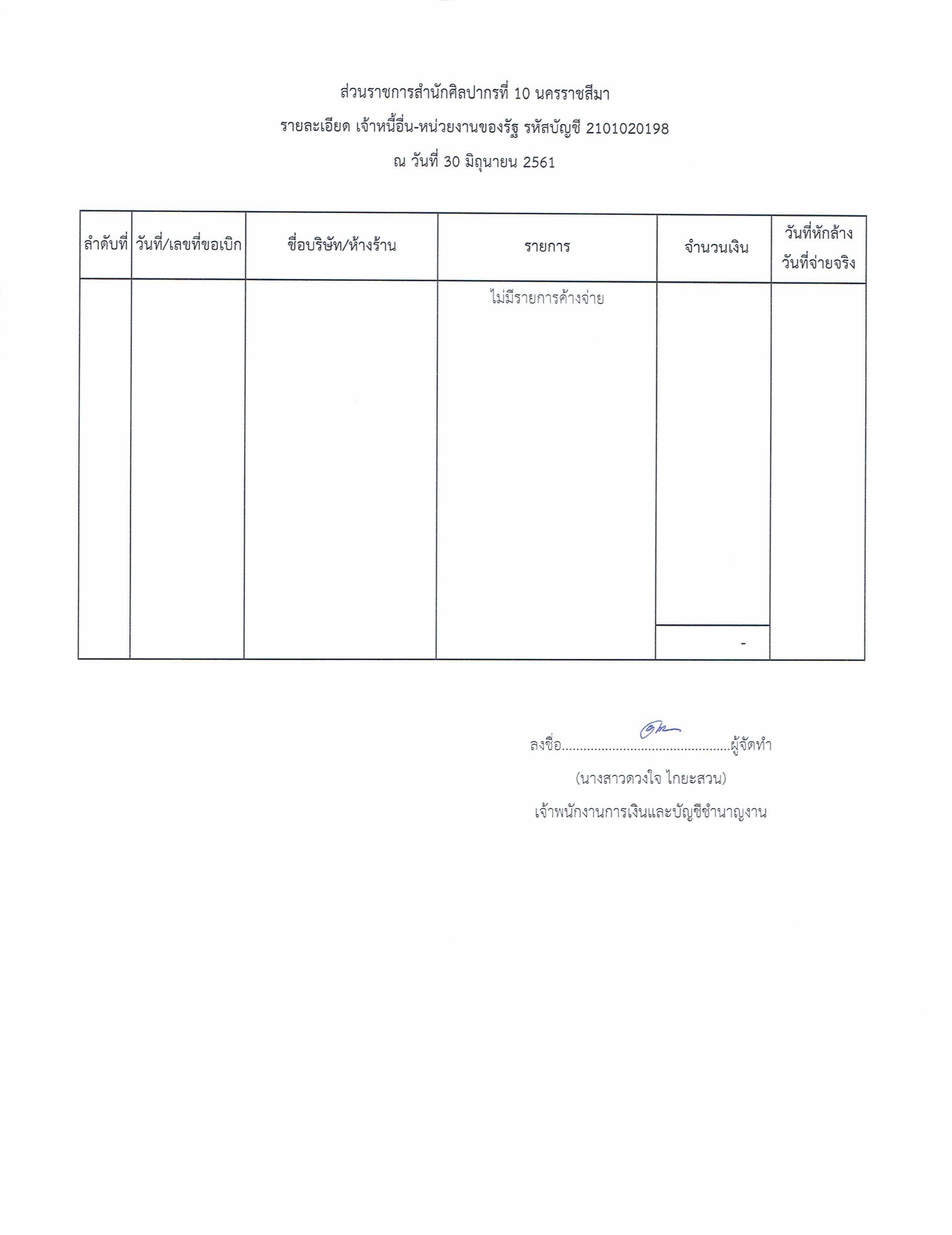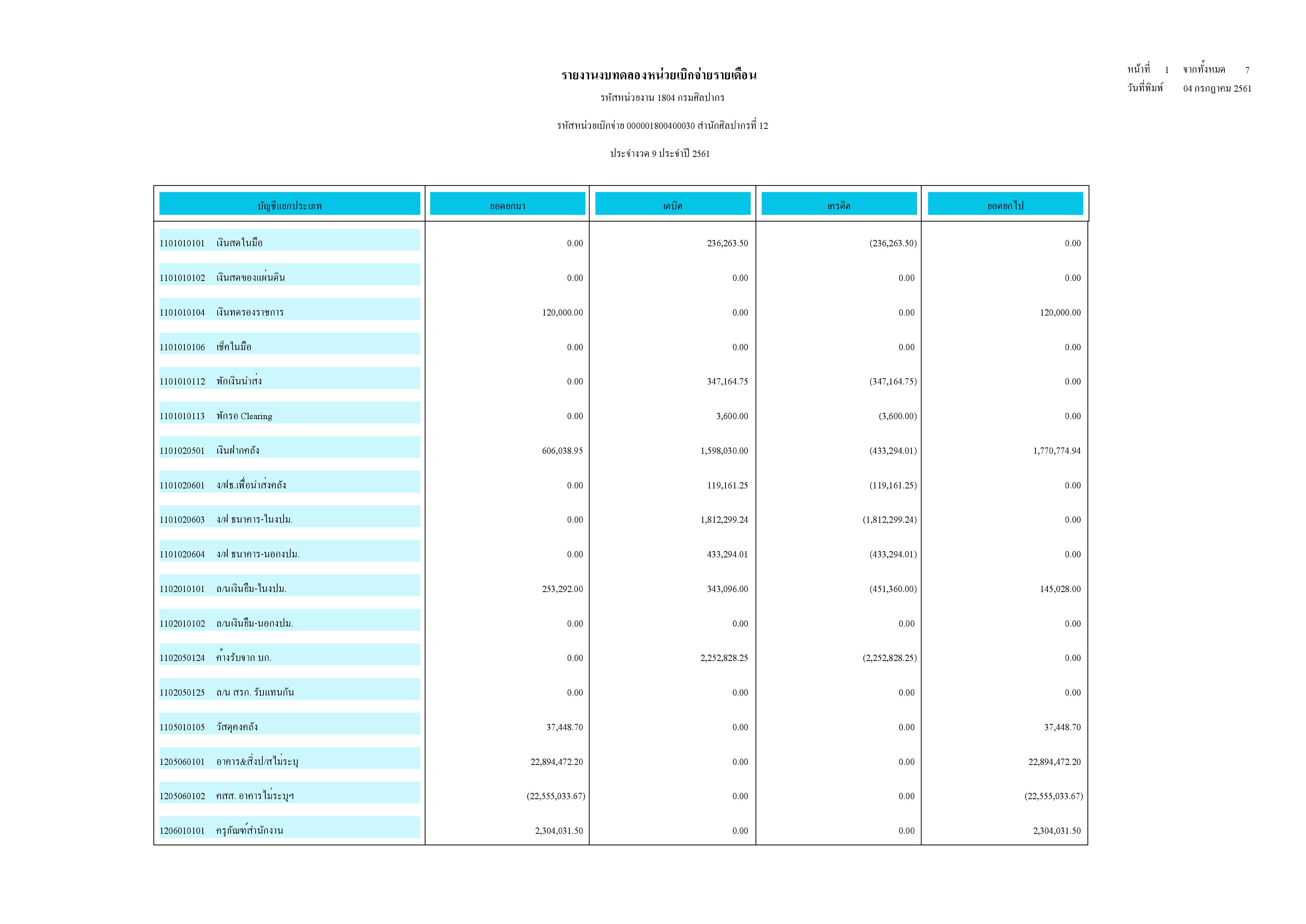 รายงานบัญชีงบทดลองและเอกสารประกอบงบทดลอง สำนักศิลปากรที่ ๑๐ นครราชสีมา (เดือนมิถุนายน ๒๕๖๑)