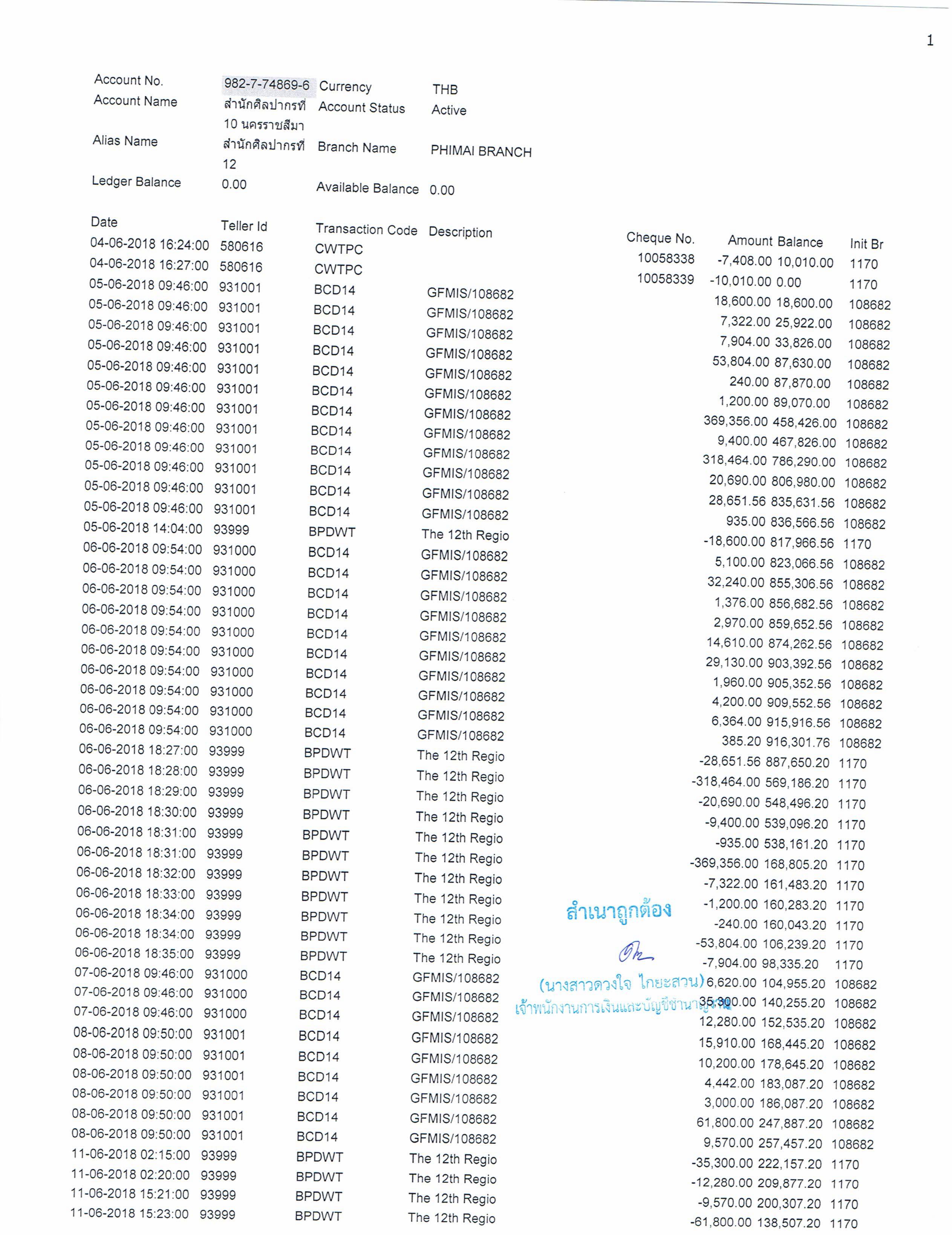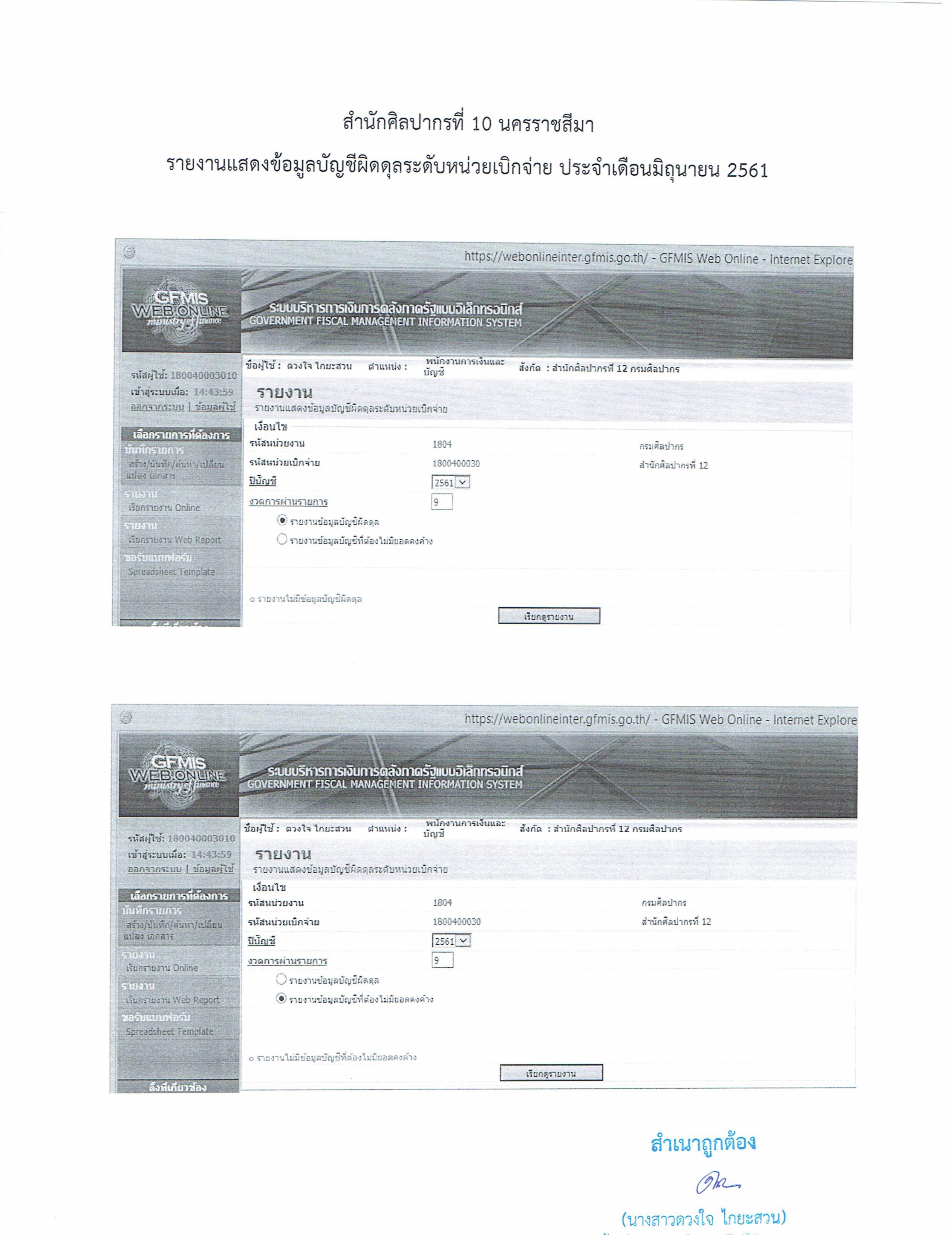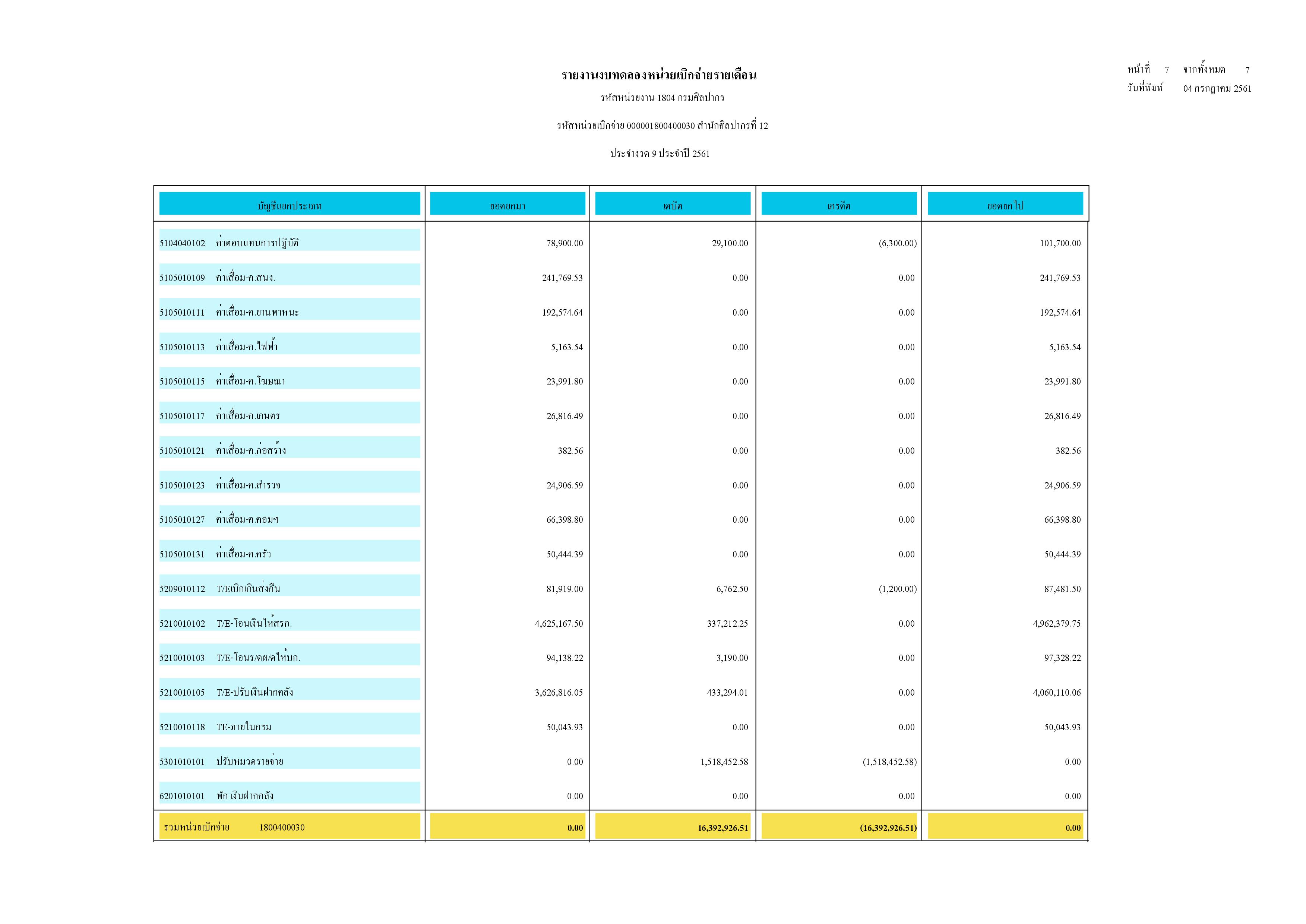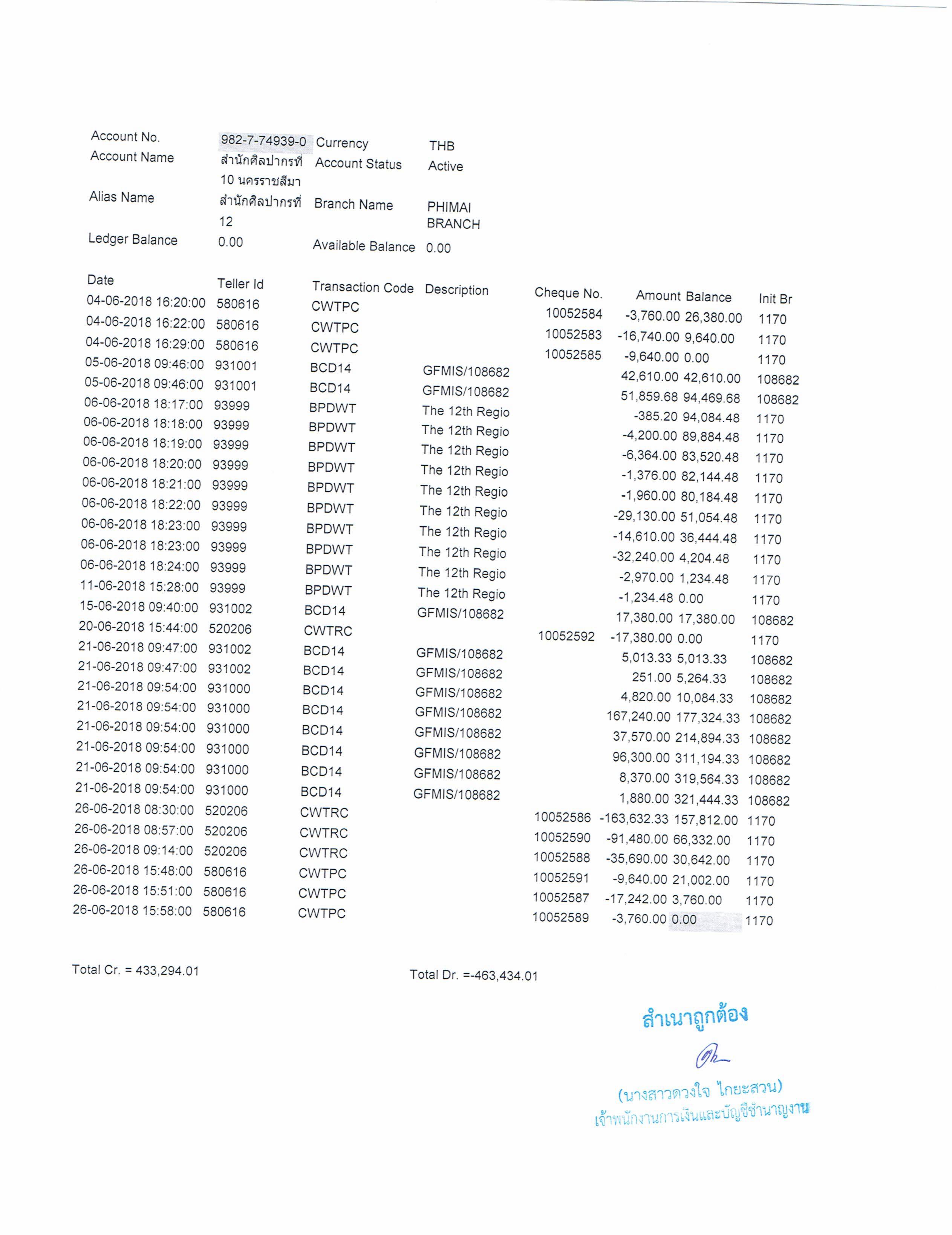 รายงานบัญชีงบทดลองและเอกสารประกอบงบทดลอง สำนักศิลปากรที่ ๑๐ นครราชสีมา (เดือนมิถุนายน ๒๕๖๑)