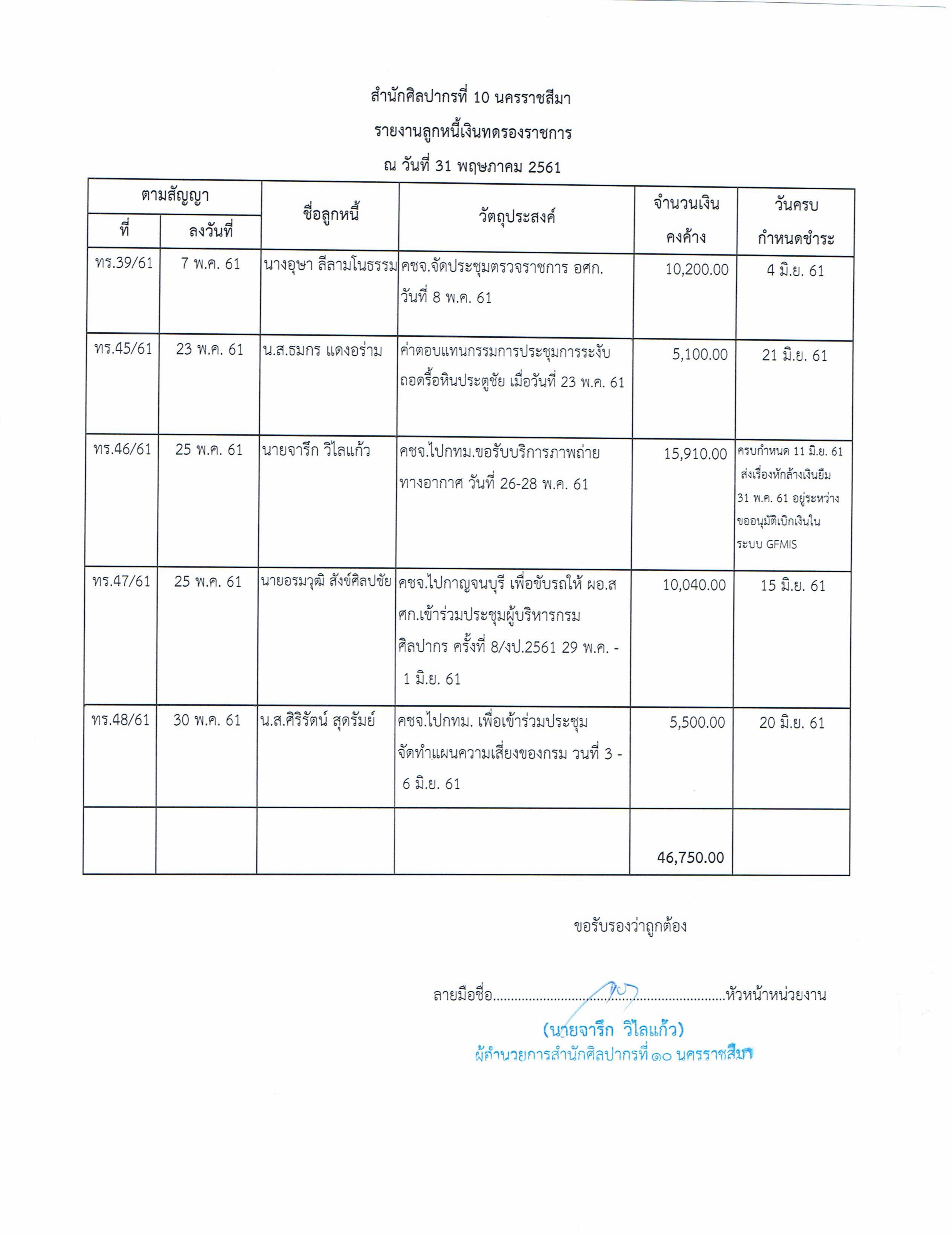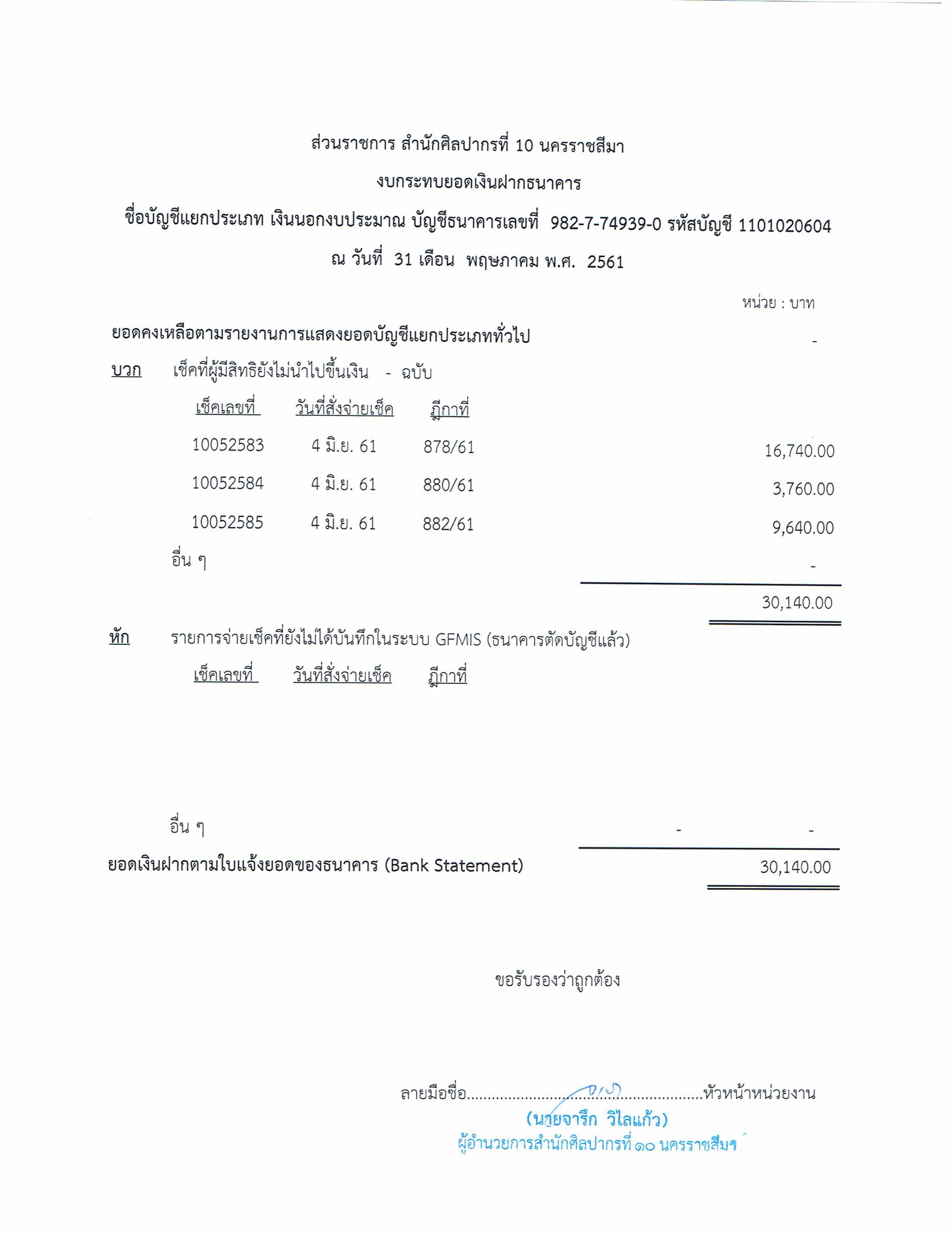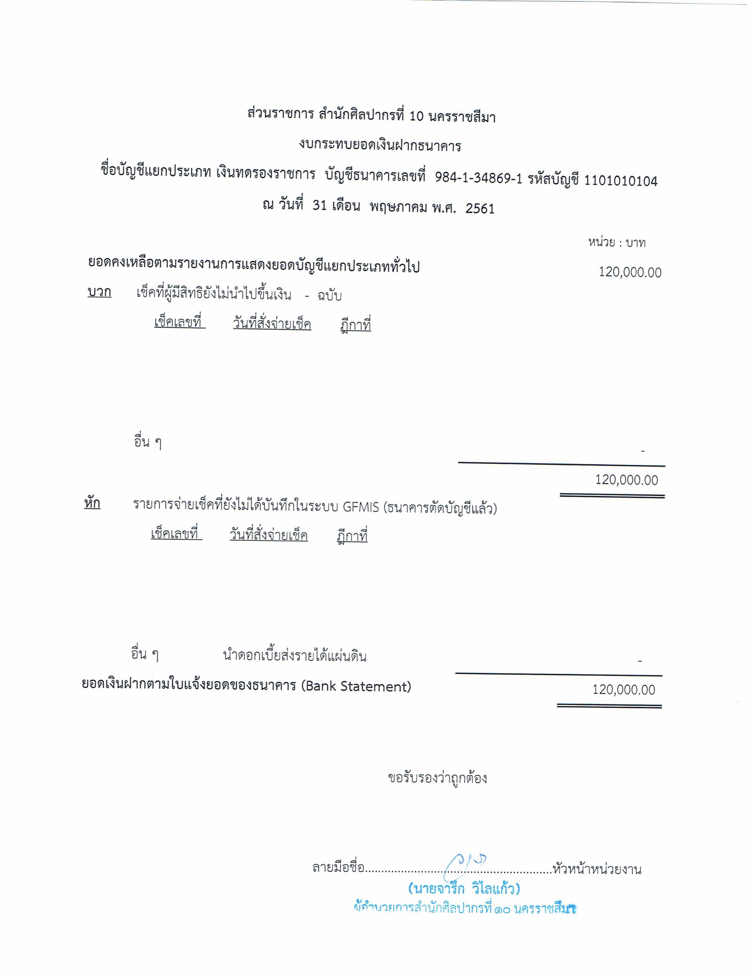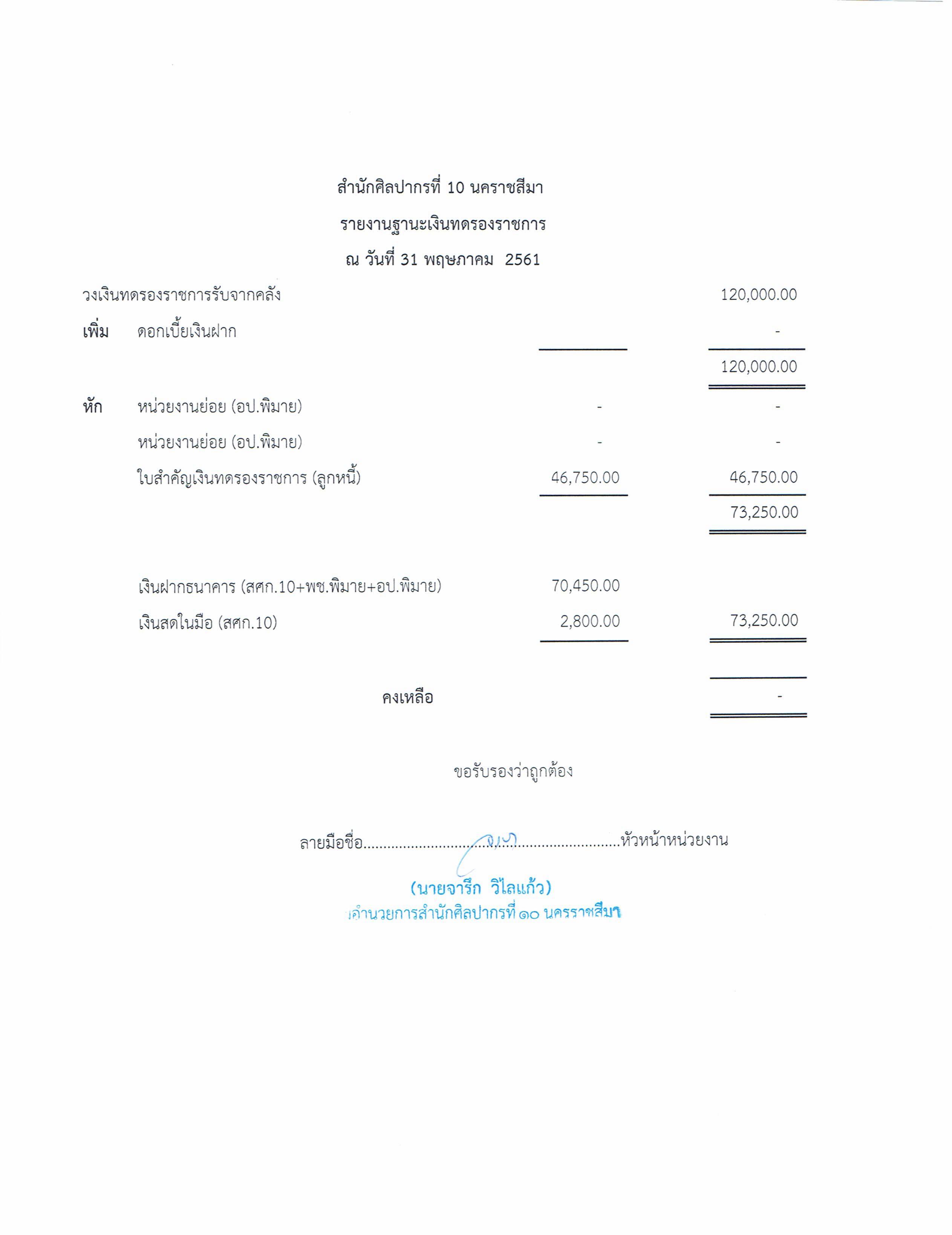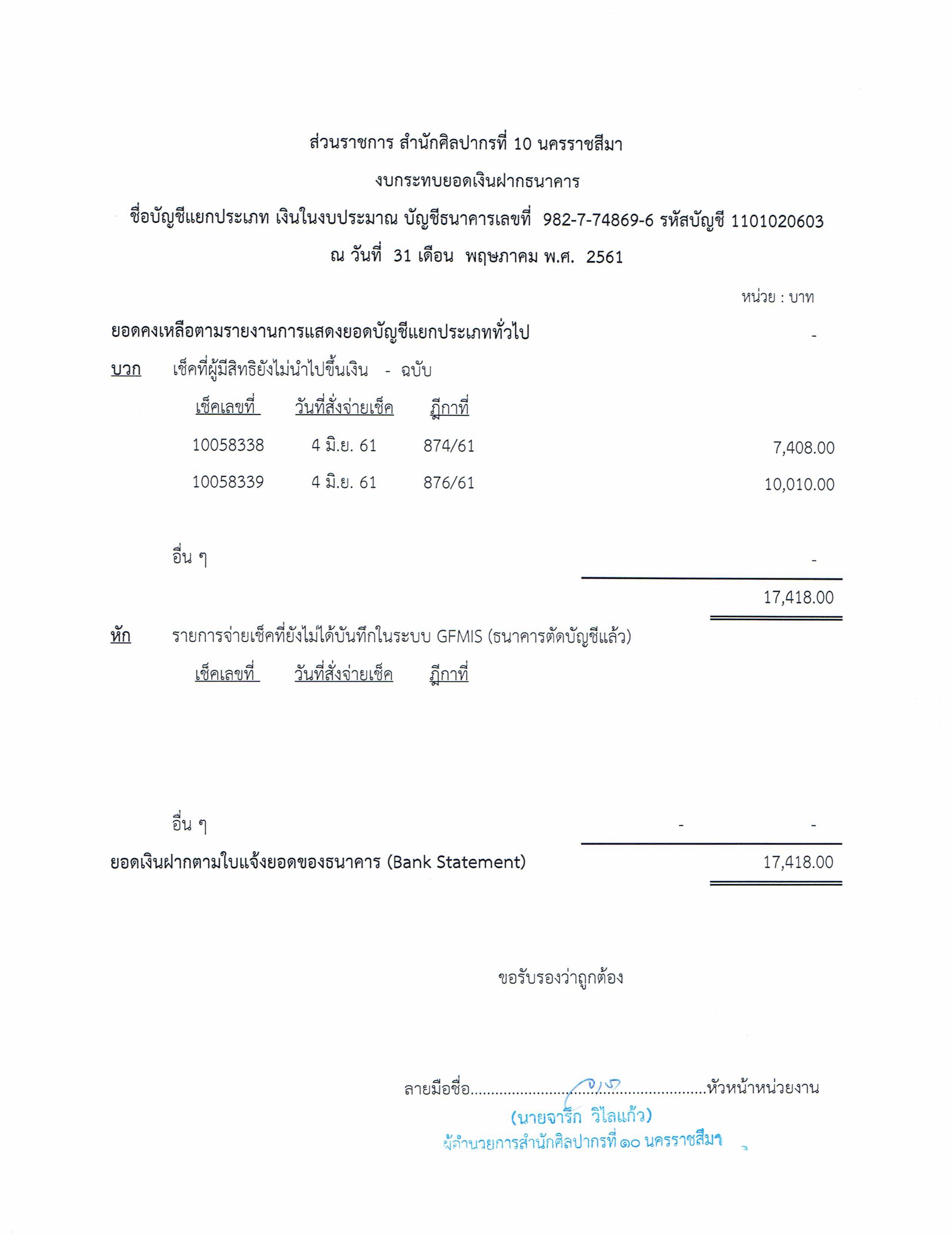 รายงานบัญชีงบทดลองและเอกสารประกอบงบทดลอง สำนักศิลปากรที่ ๑๐ นครราชสีมา (เดือนพฤษภาคม ๒๕๖๑)