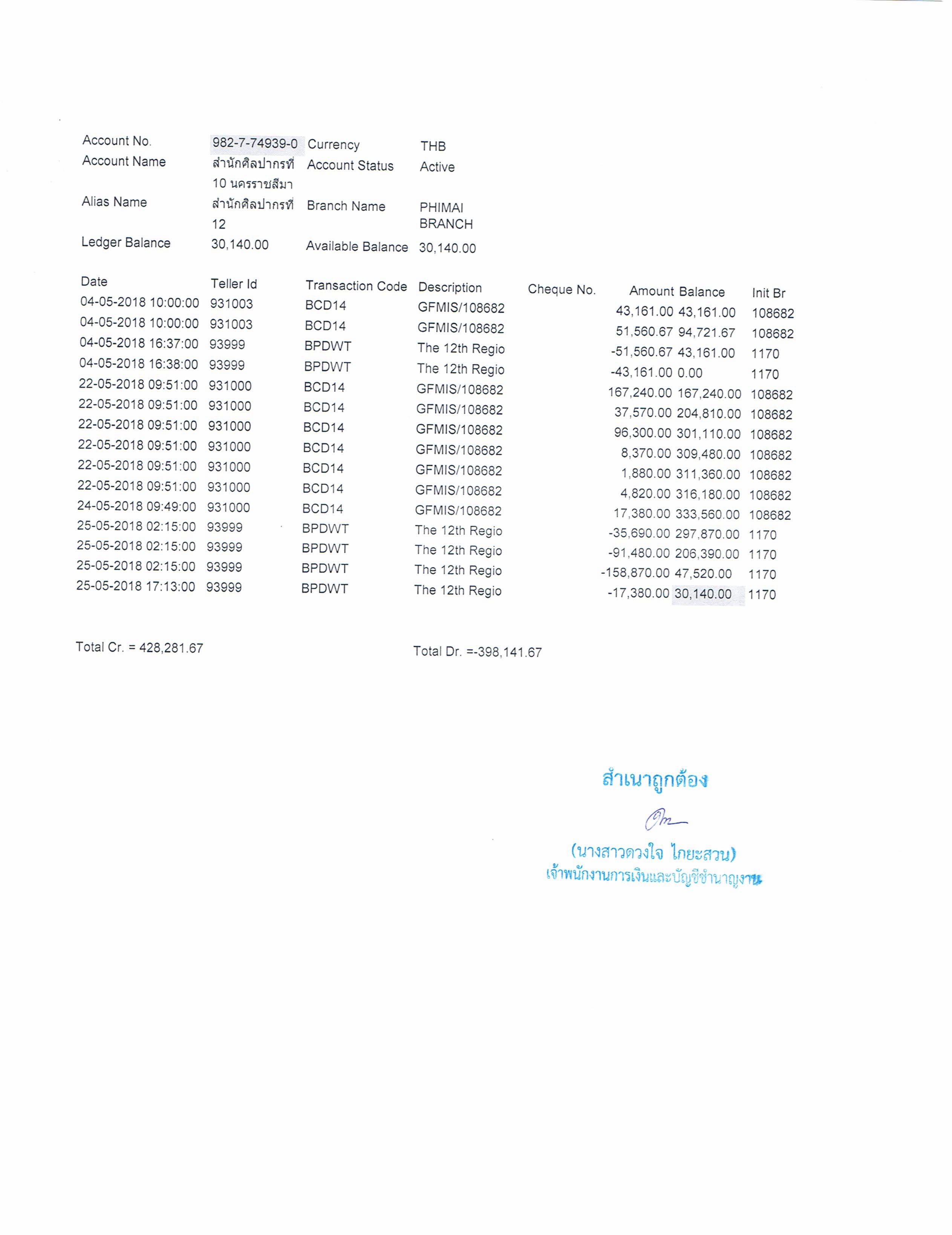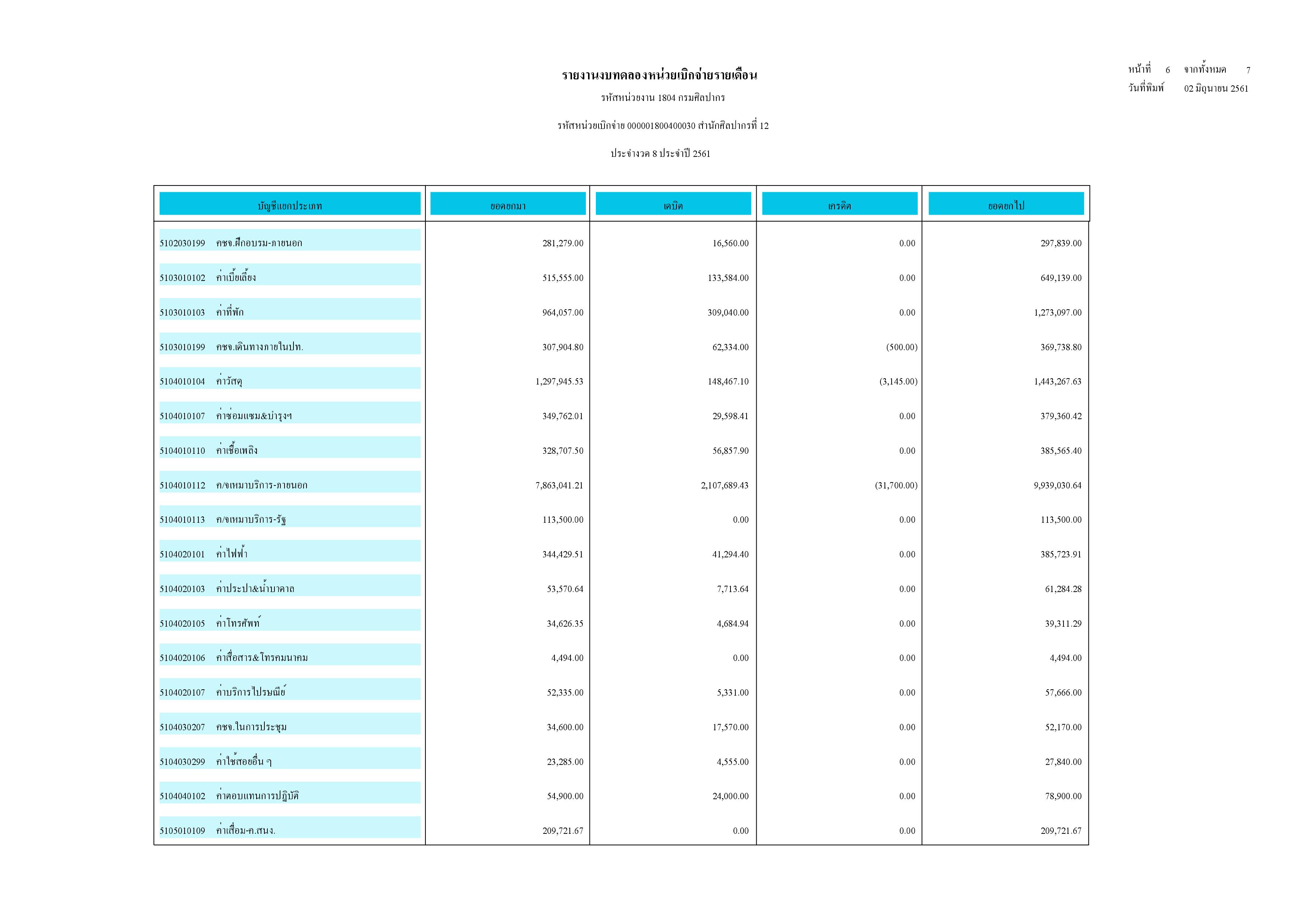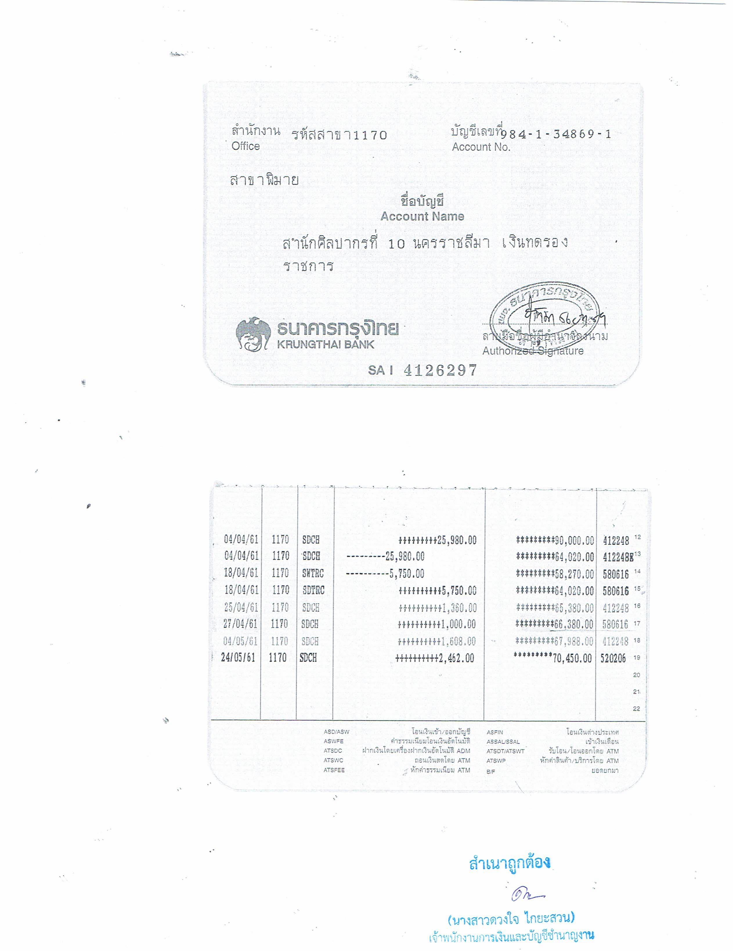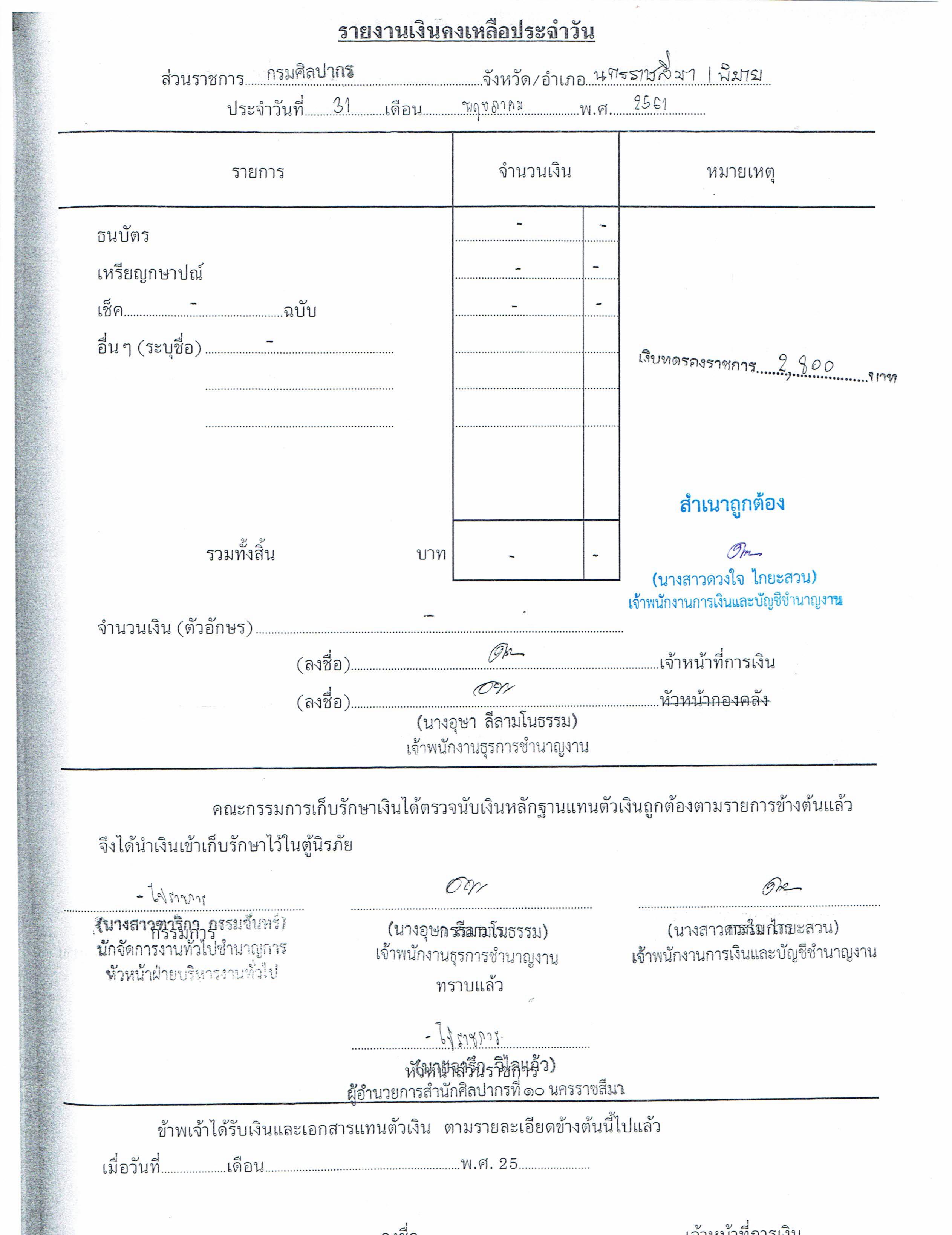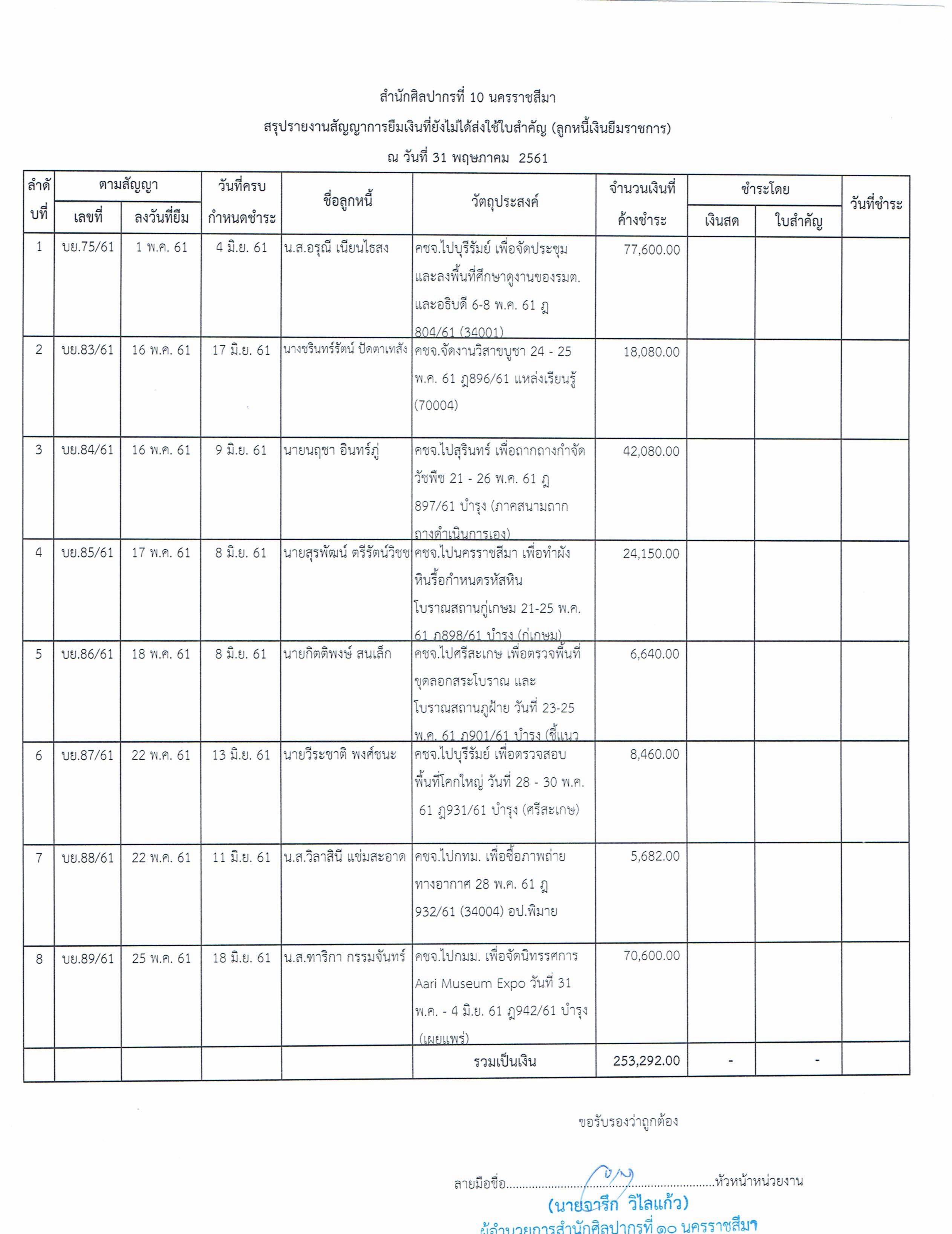 รายงานบัญชีงบทดลองและเอกสารประกอบงบทดลอง สำนักศิลปากรที่ ๑๐ นครราชสีมา (เดือนพฤษภาคม ๒๕๖๑)