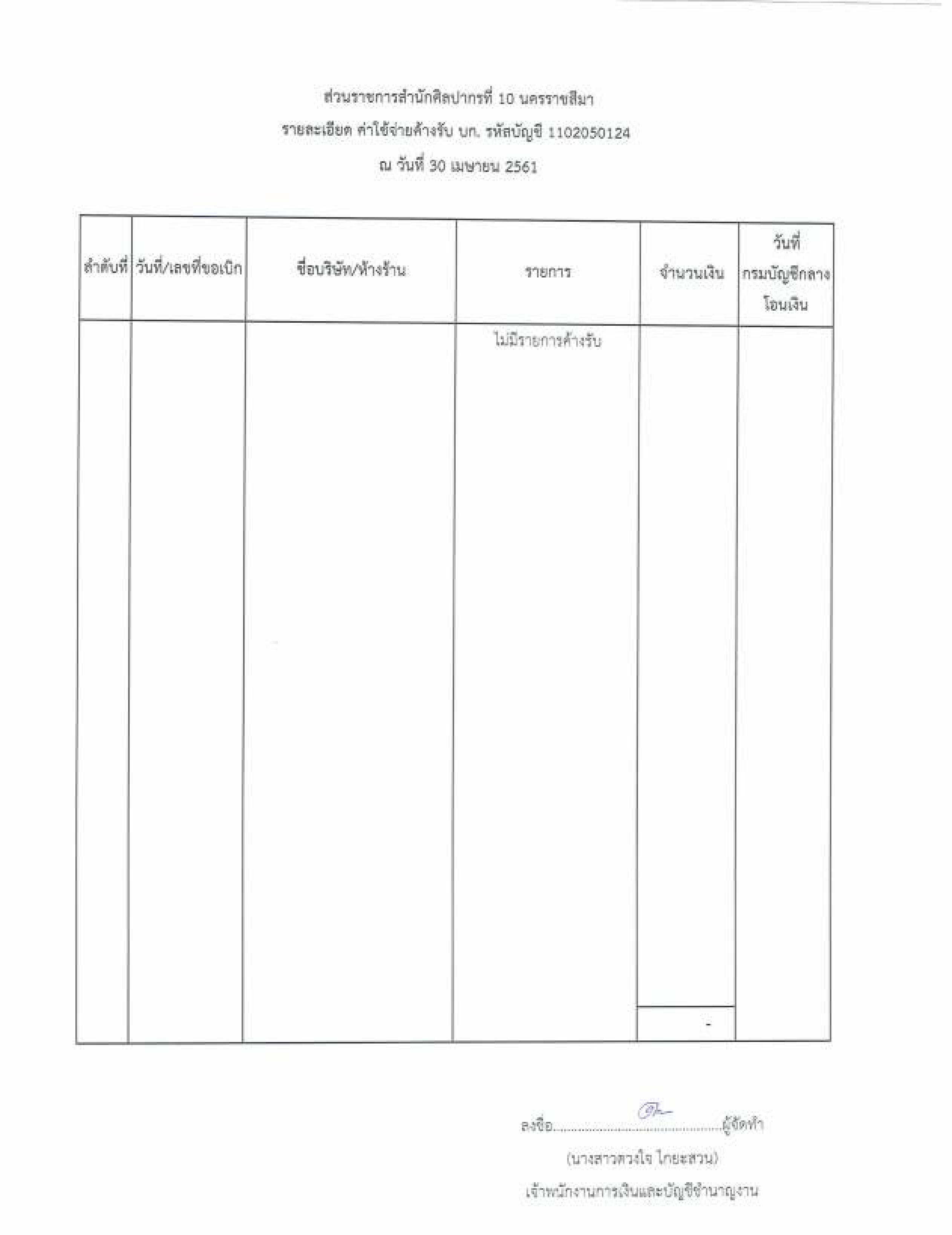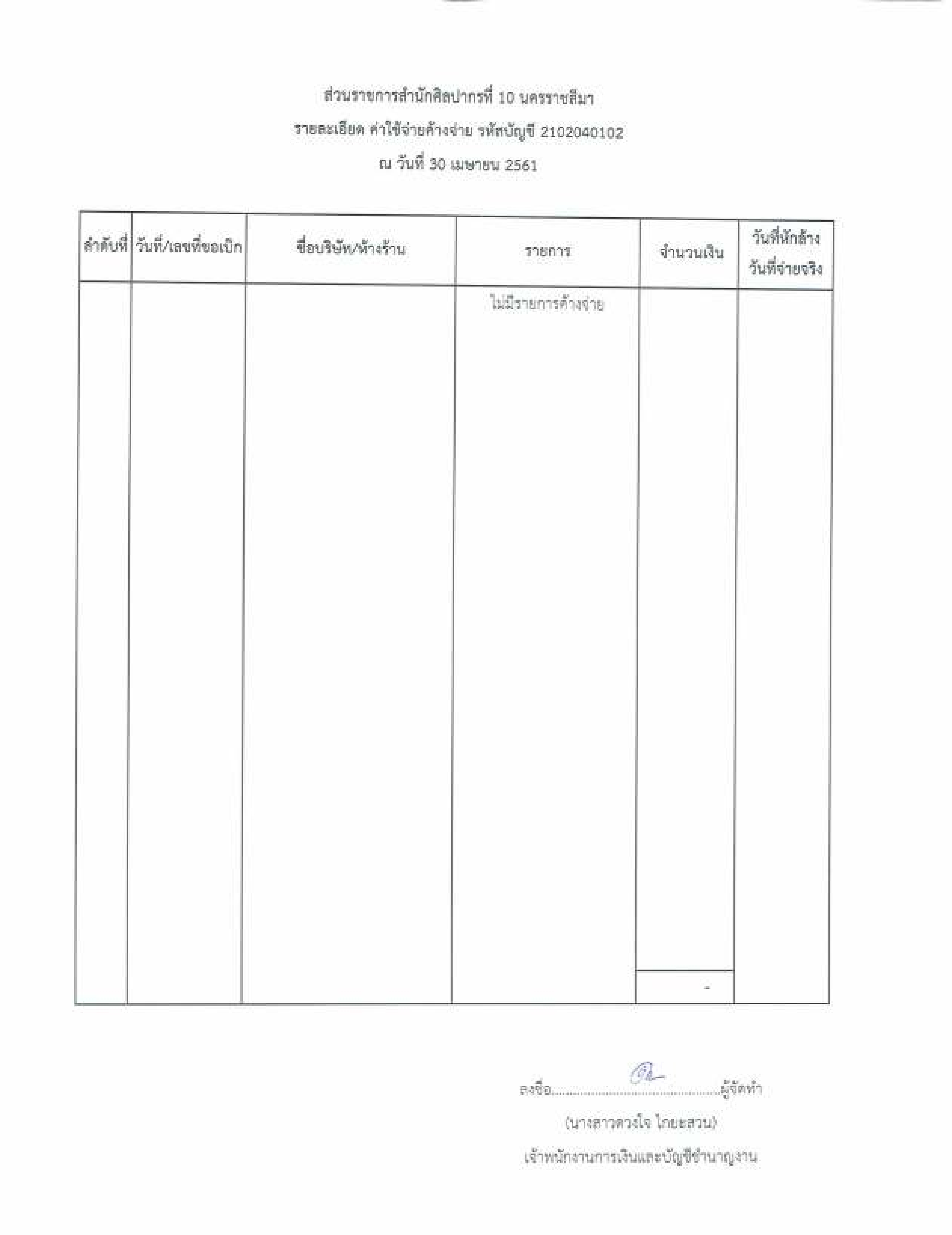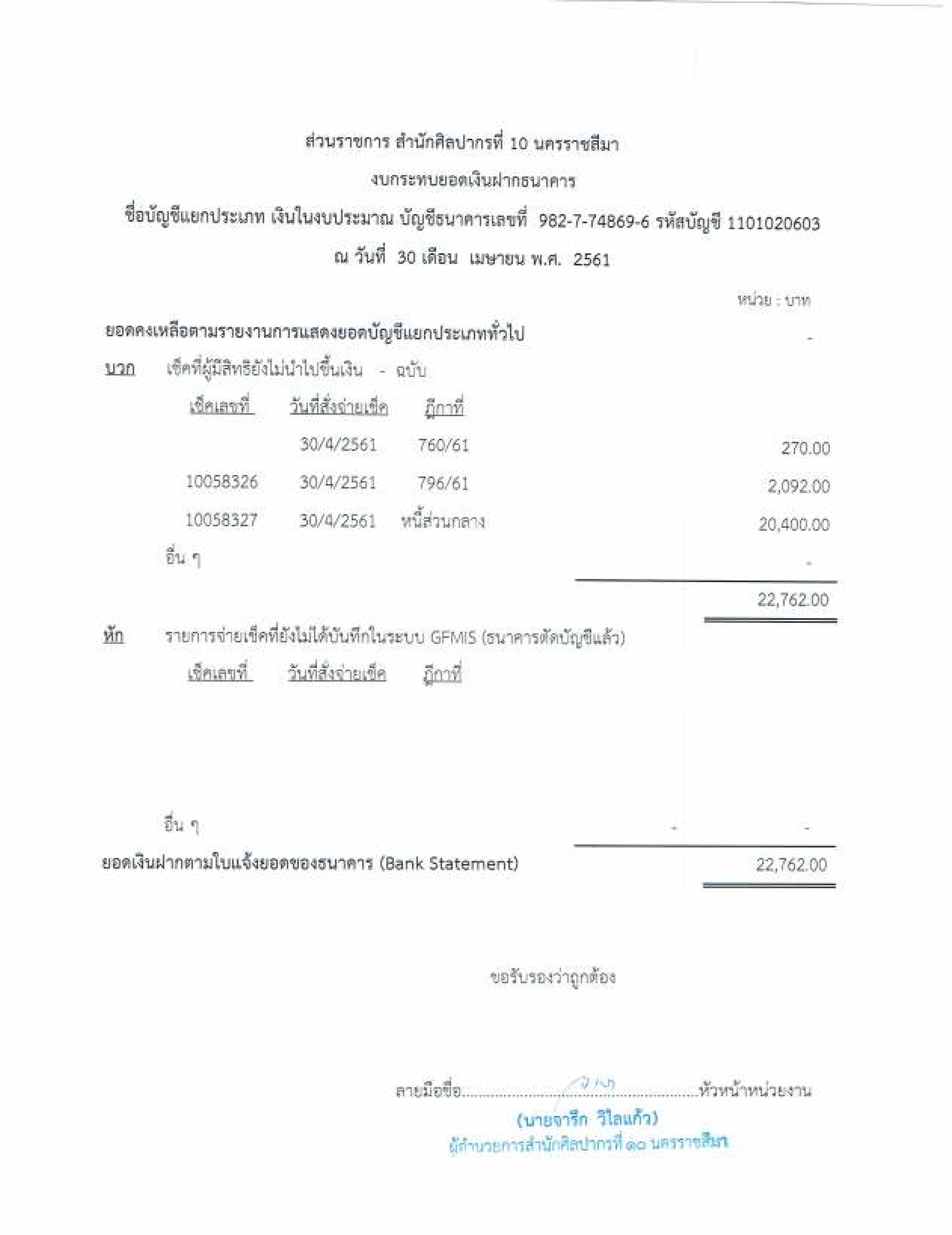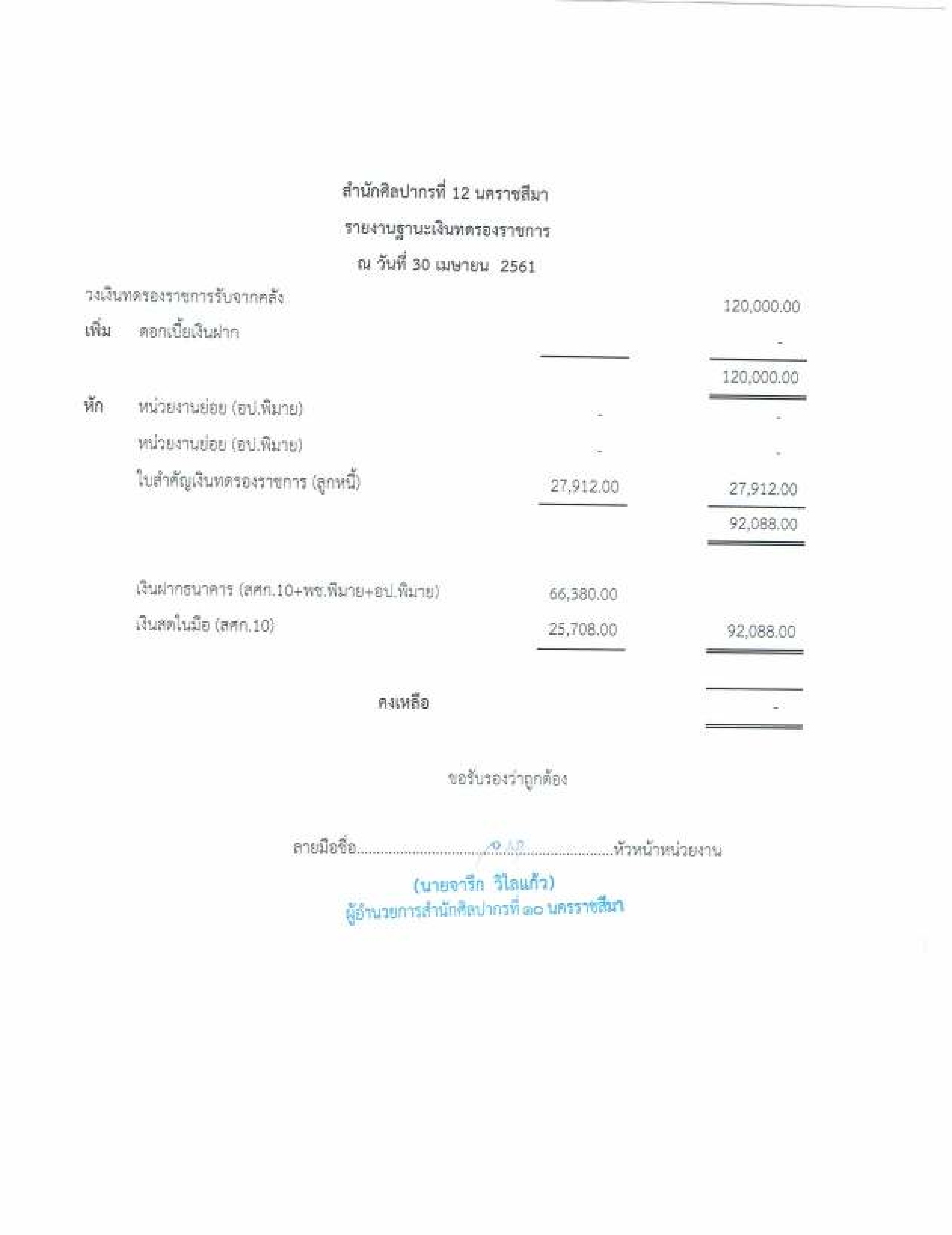 รายงานบัญชีงบทดลองและเอกสารประกอบงบทดลอง สำนักศิลปากรที่ ๑๐ นครราชสีมา (เดือนเมษายน ๒๕๖๑)