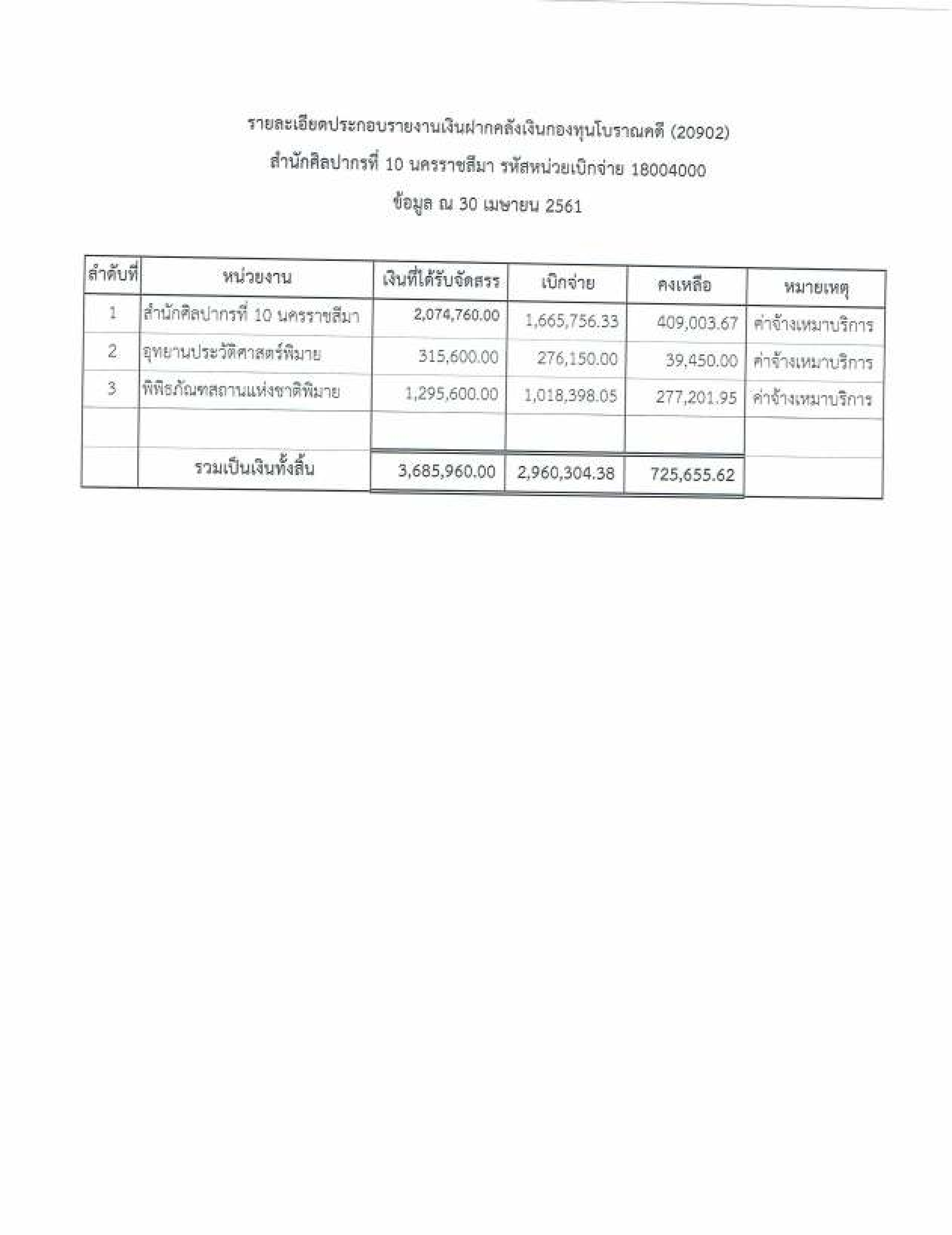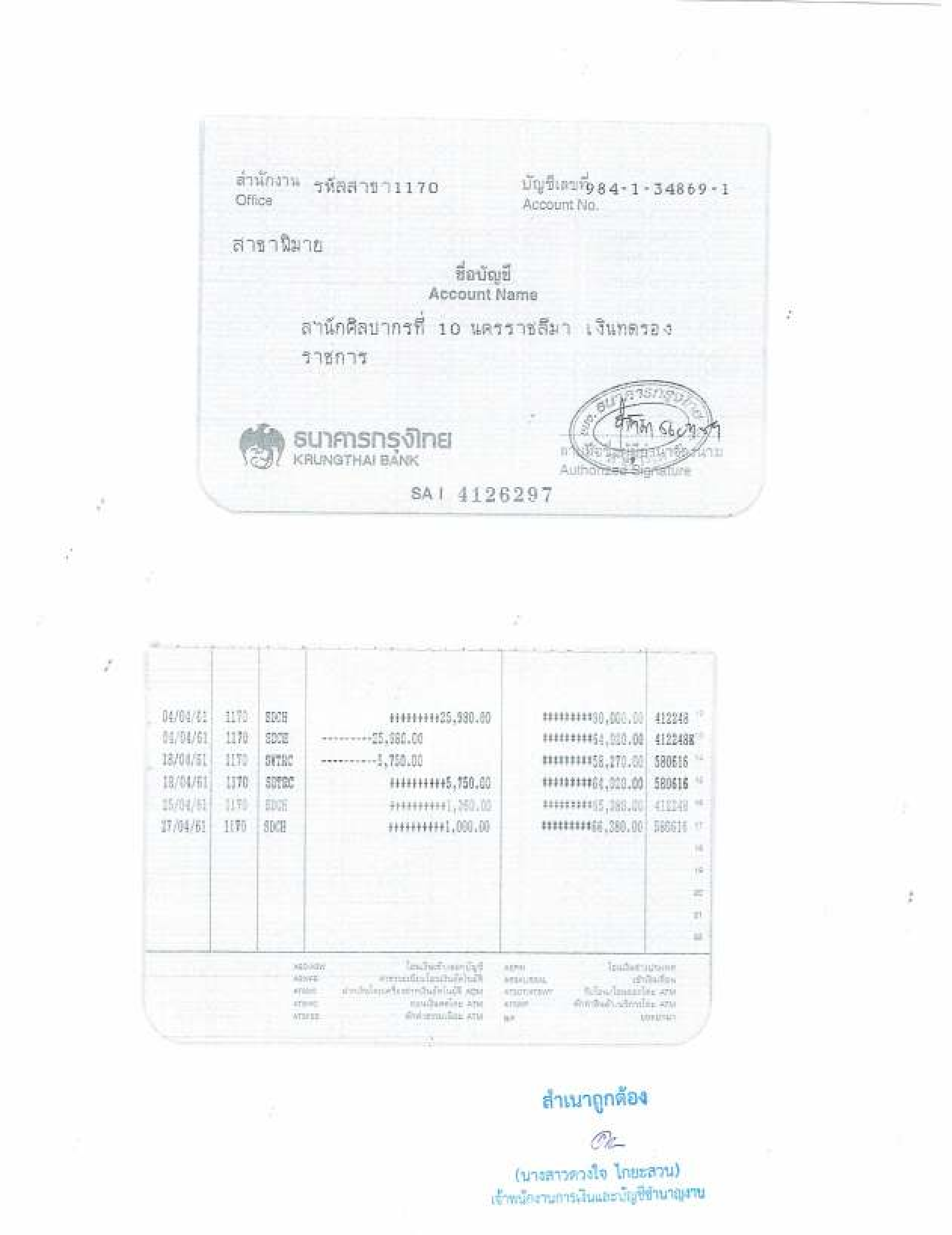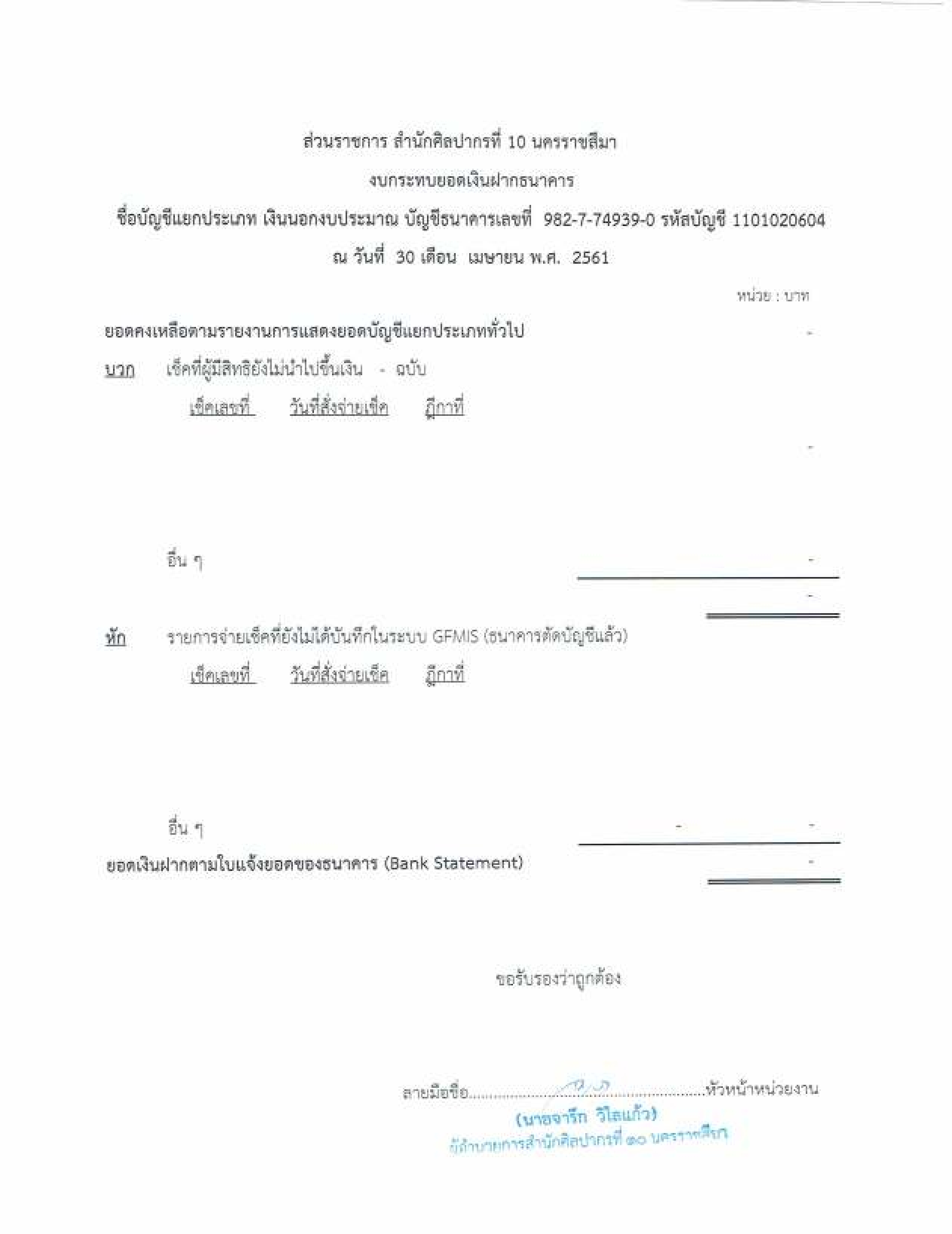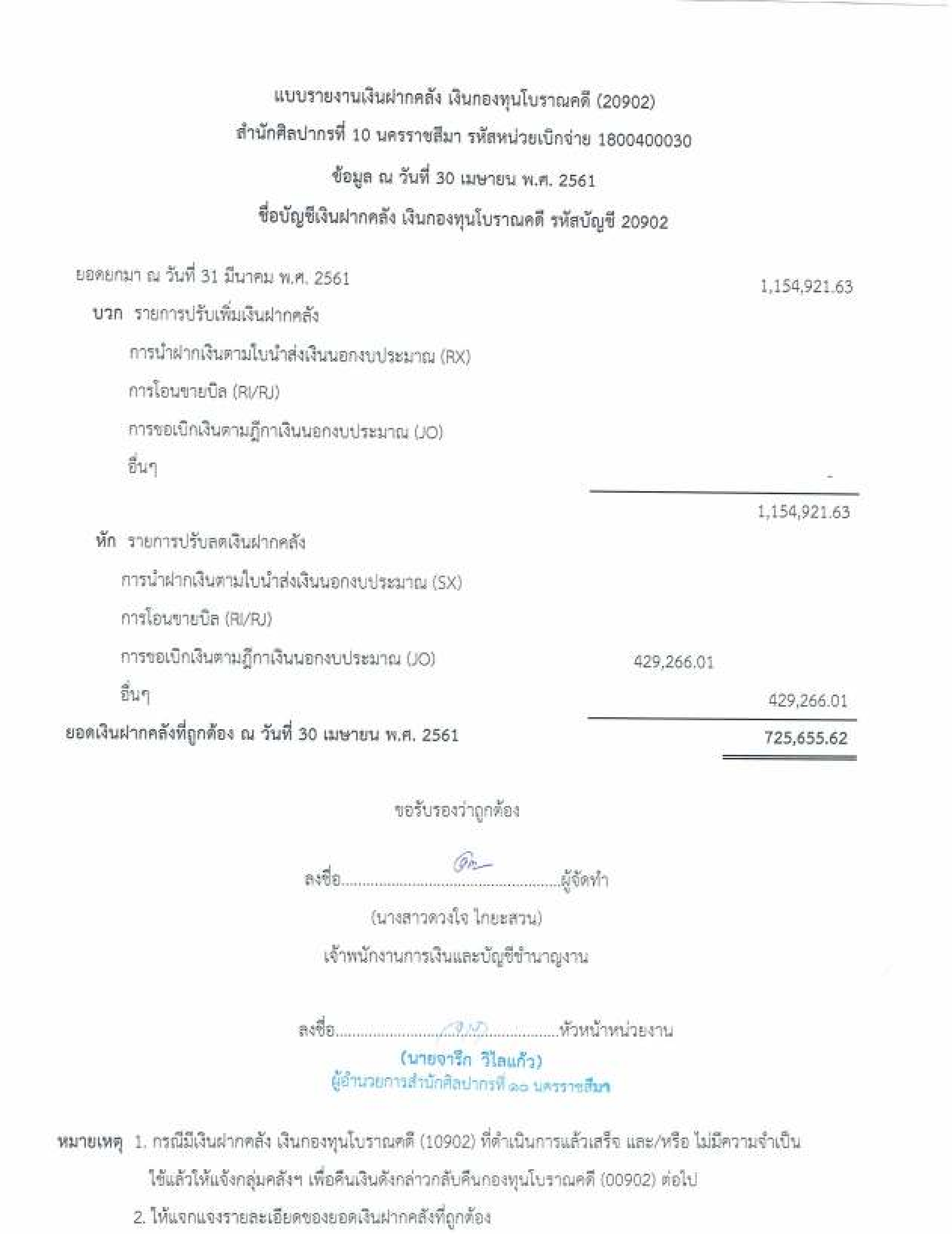 รายงานบัญชีงบทดลองและเอกสารประกอบงบทดลอง สำนักศิลปากรที่ ๑๐ นครราชสีมา (เดือนเมษายน ๒๕๖๑)