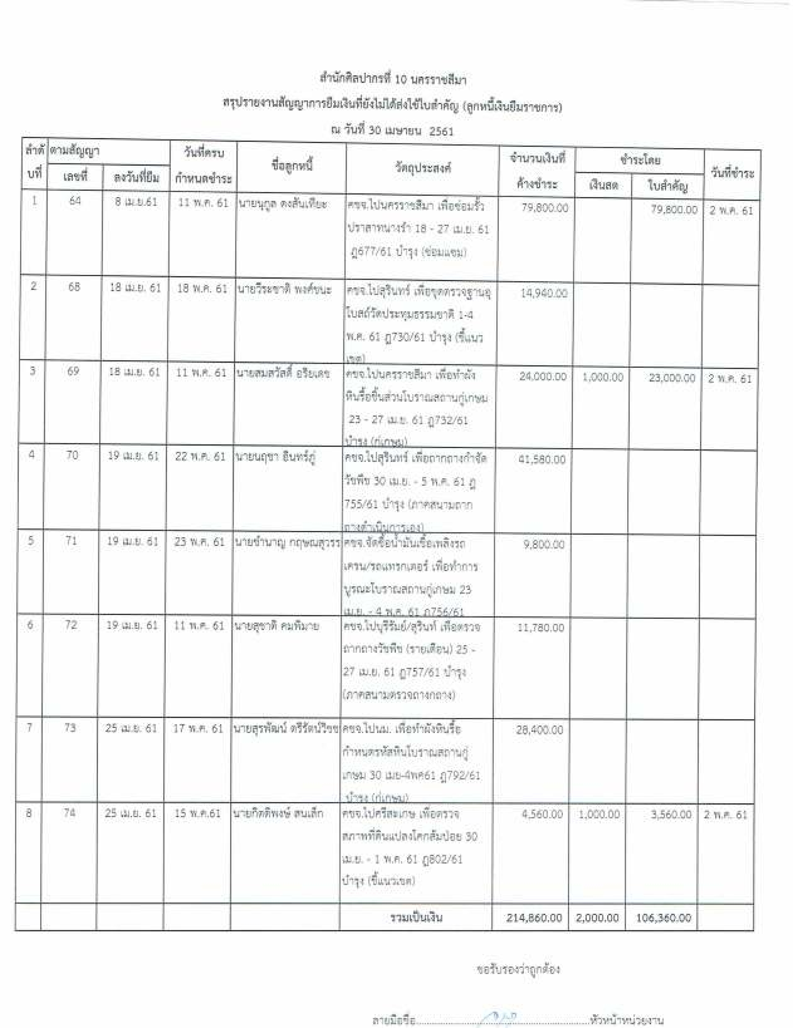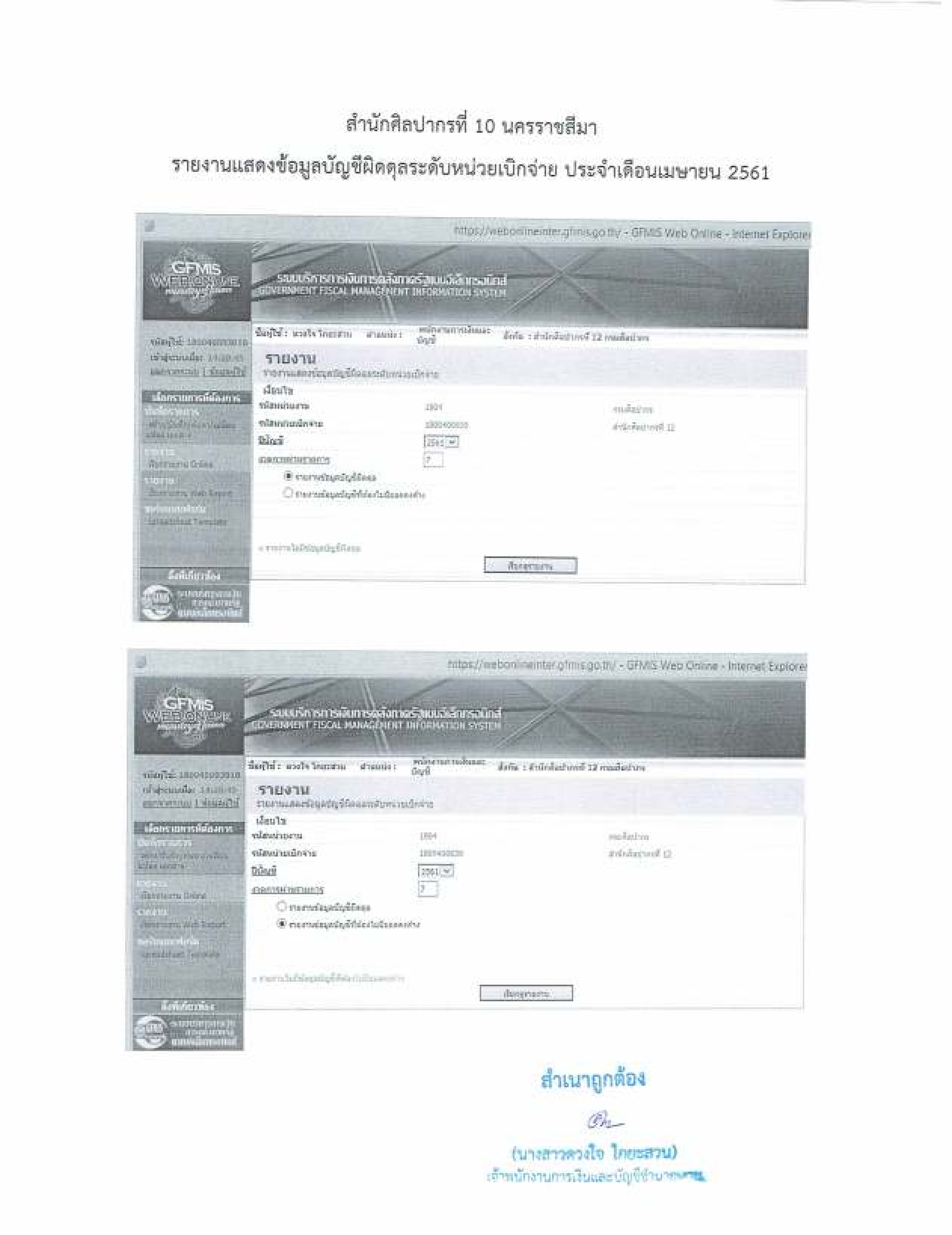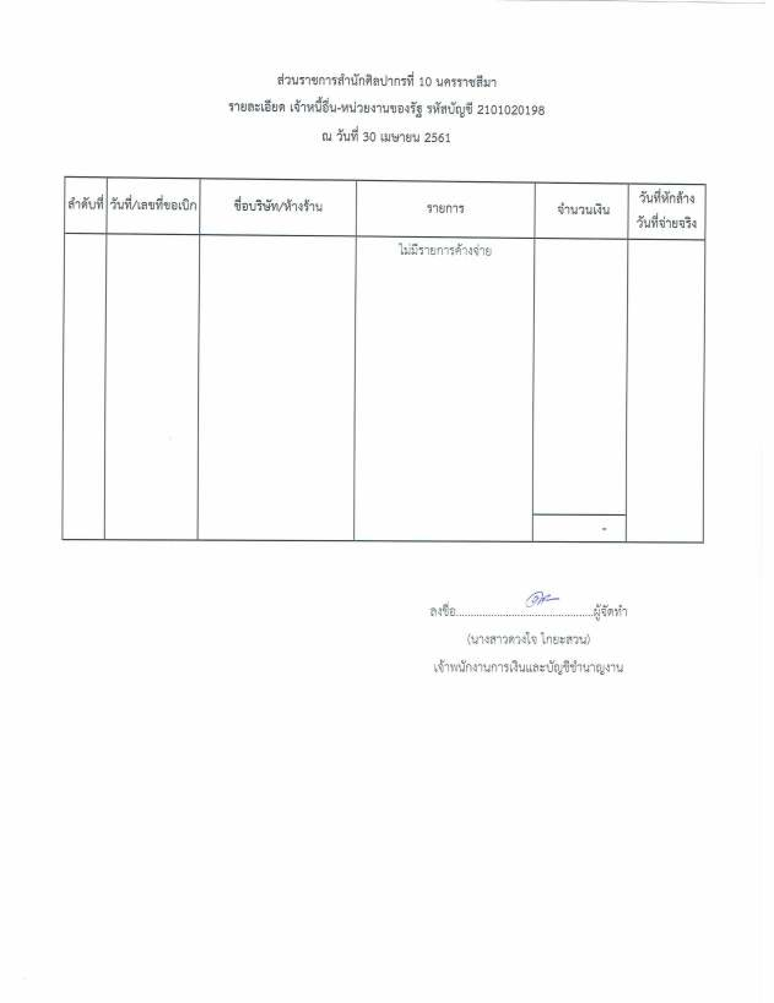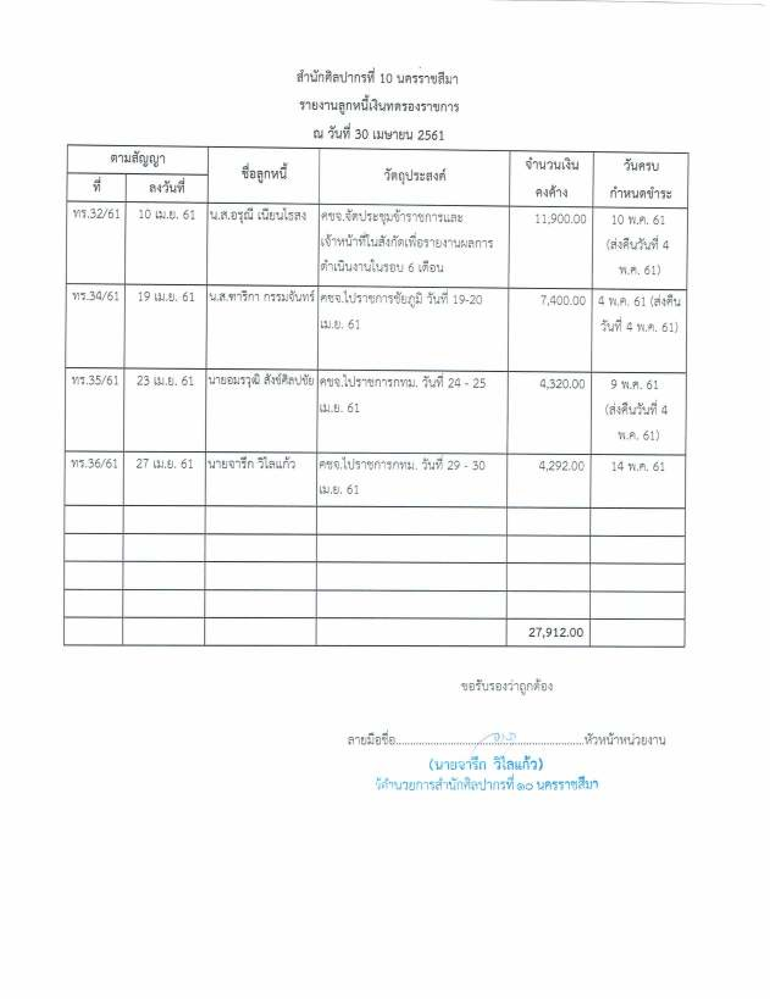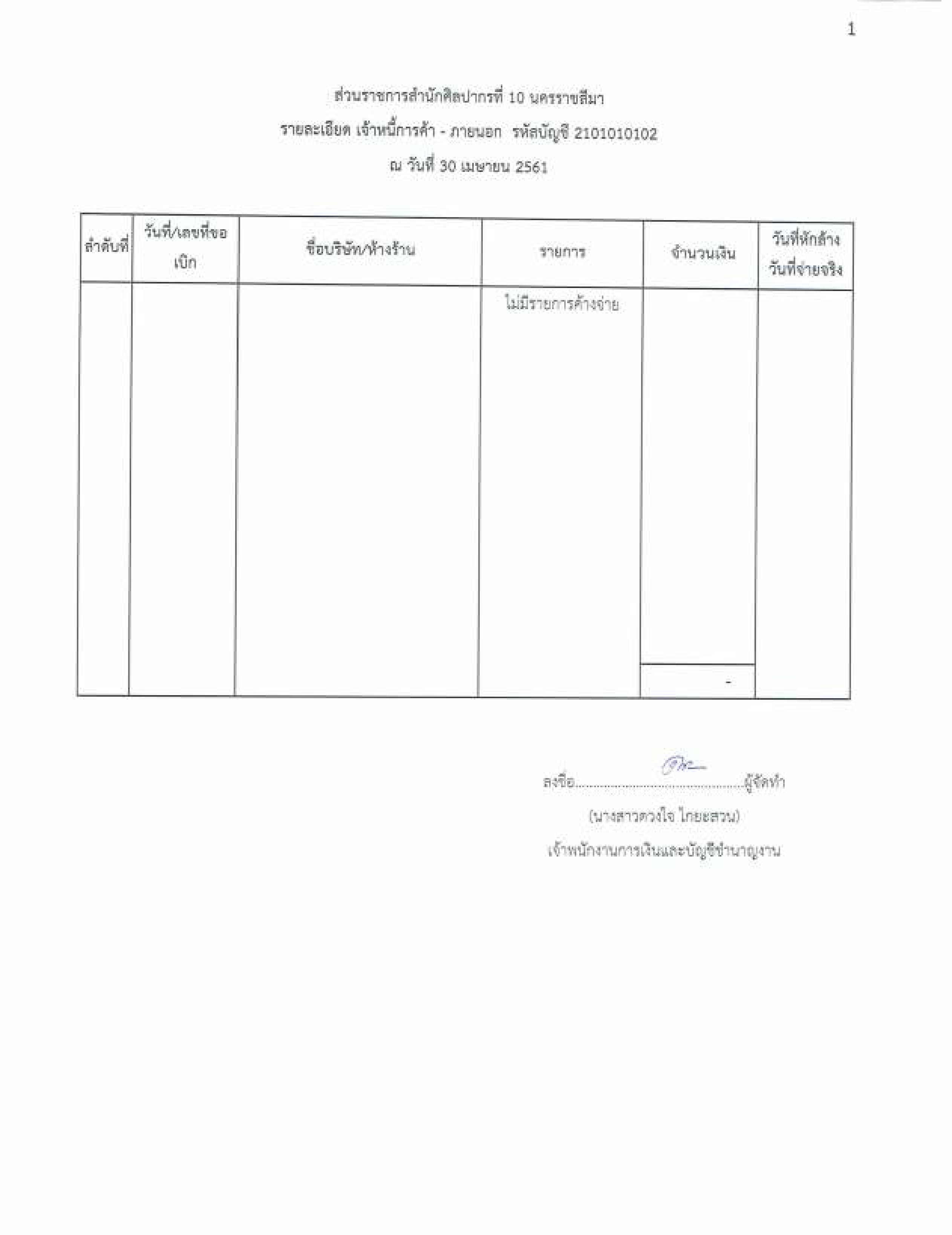 รายงานบัญชีงบทดลองและเอกสารประกอบงบทดลอง สำนักศิลปากรที่ ๑๐ นครราชสีมา (เดือนเมษายน ๒๕๖๑)