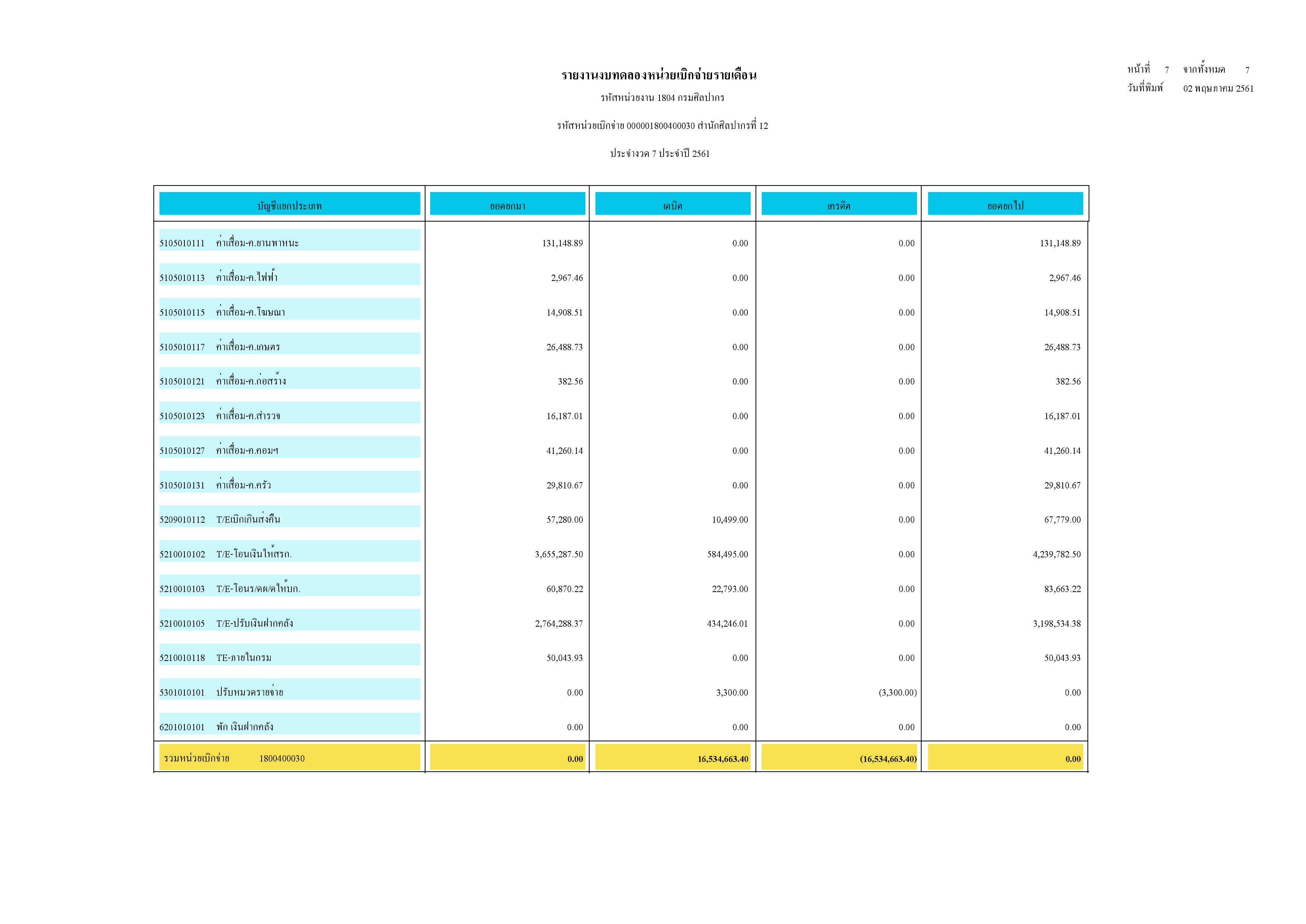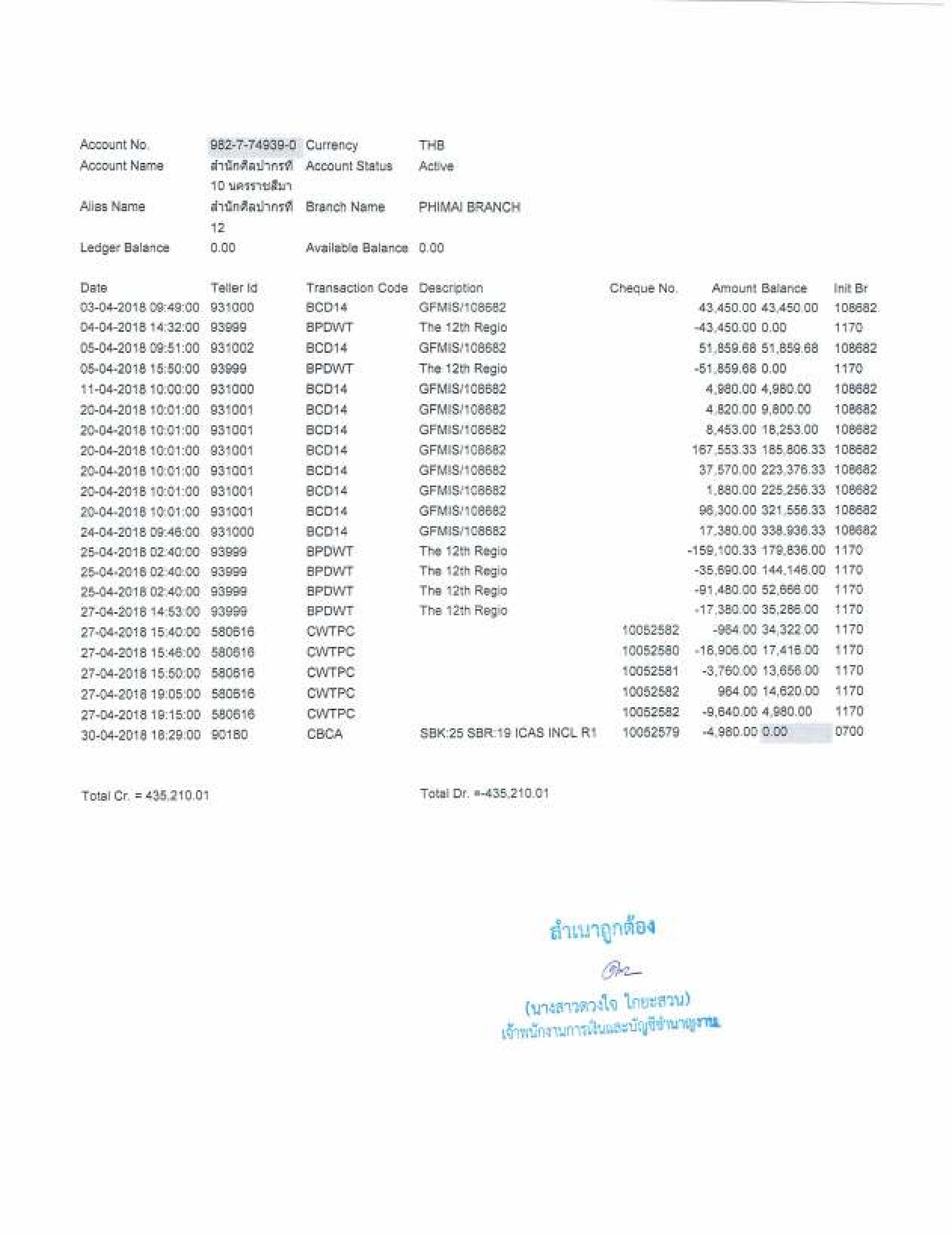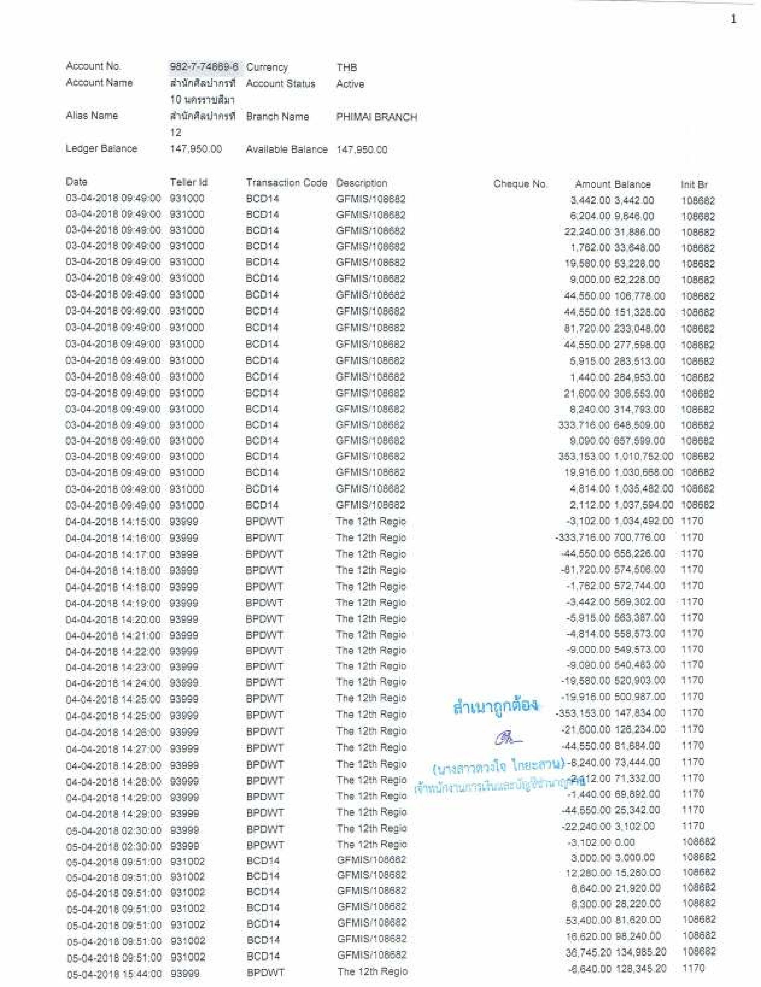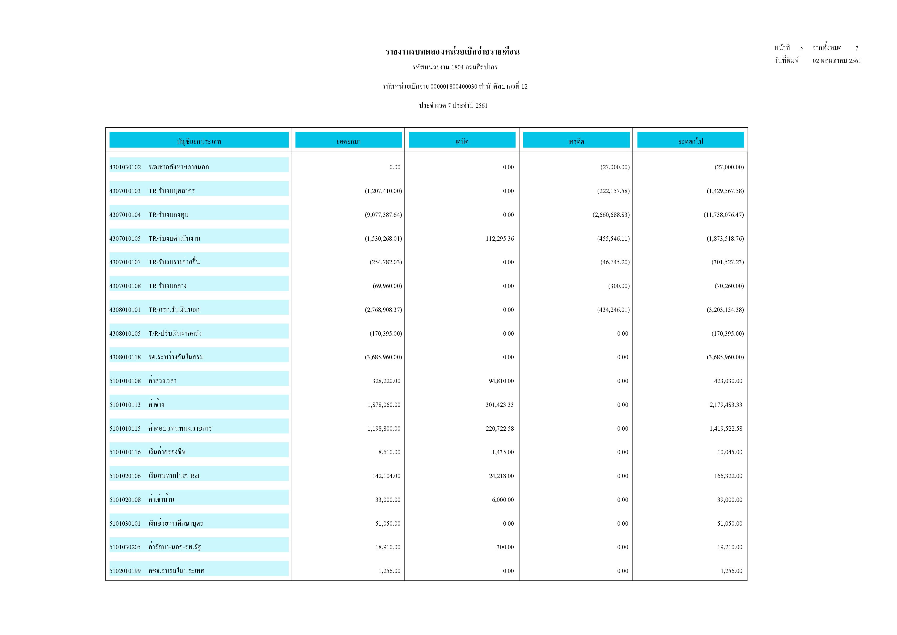 รายงานบัญชีงบทดลองและเอกสารประกอบงบทดลอง สำนักศิลปากรที่ ๑๐ นครราชสีมา (เดือนเมษายน ๒๕๖๑)