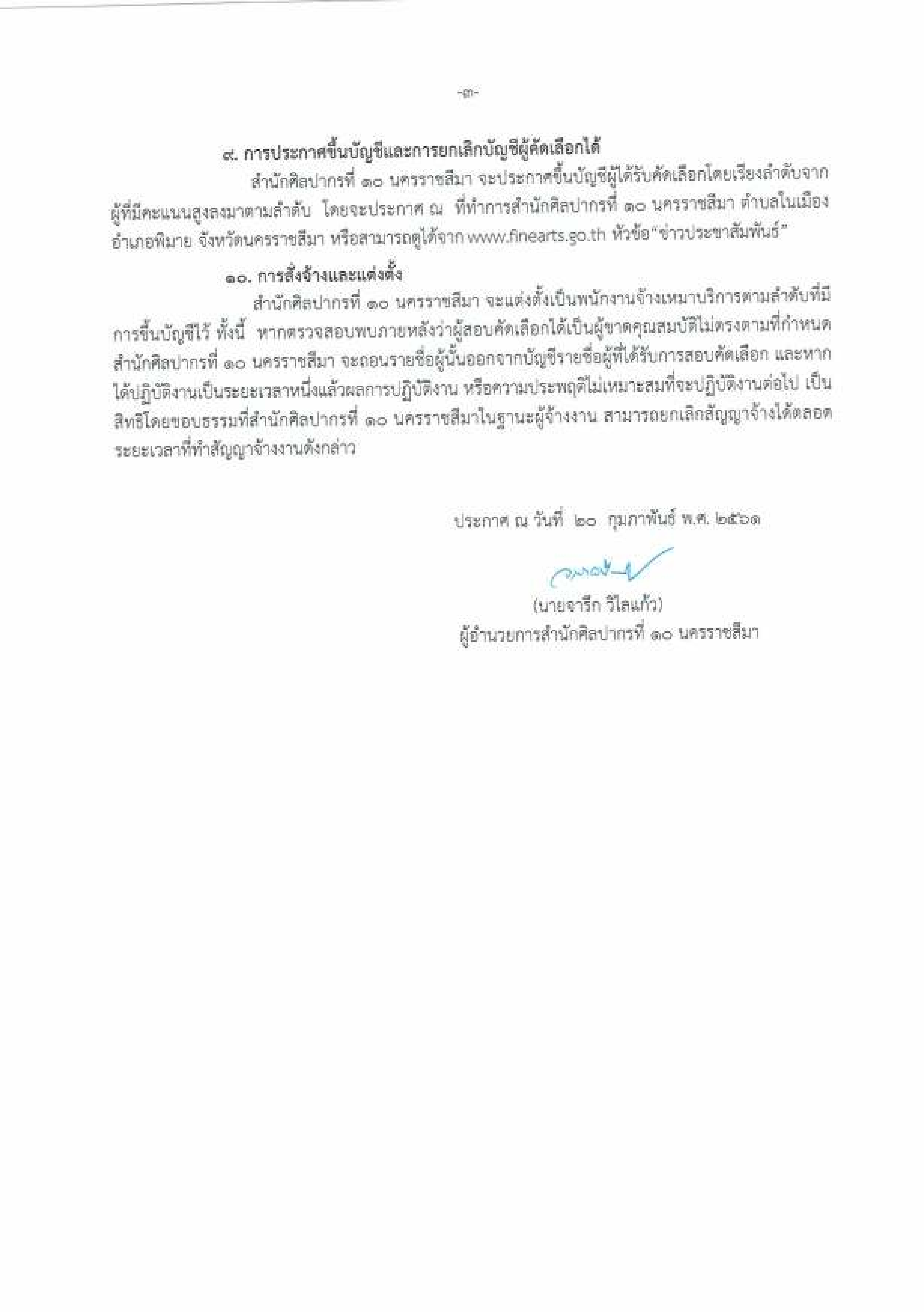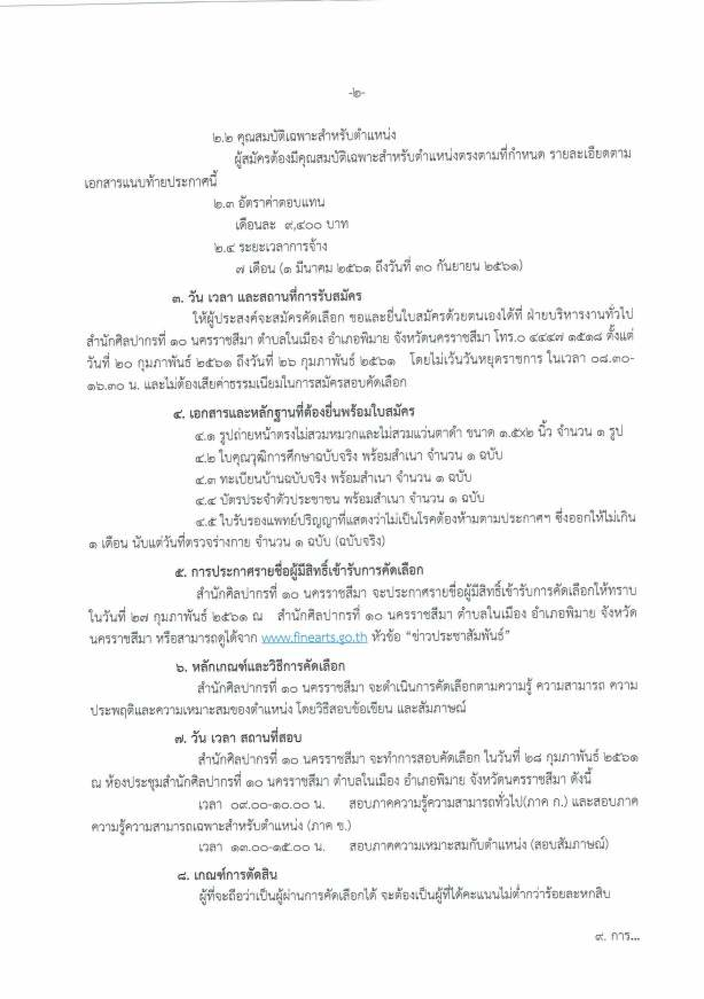 ประกาศสำนักศิลปากรที่ ๑๐ นครราชสีมา เรื่อง รับสมัครบุคคลเป็นพนักงานจ้างเหมาบริการ ประจำปีงบประมาณ พ.ศ.๒๕๖๑.