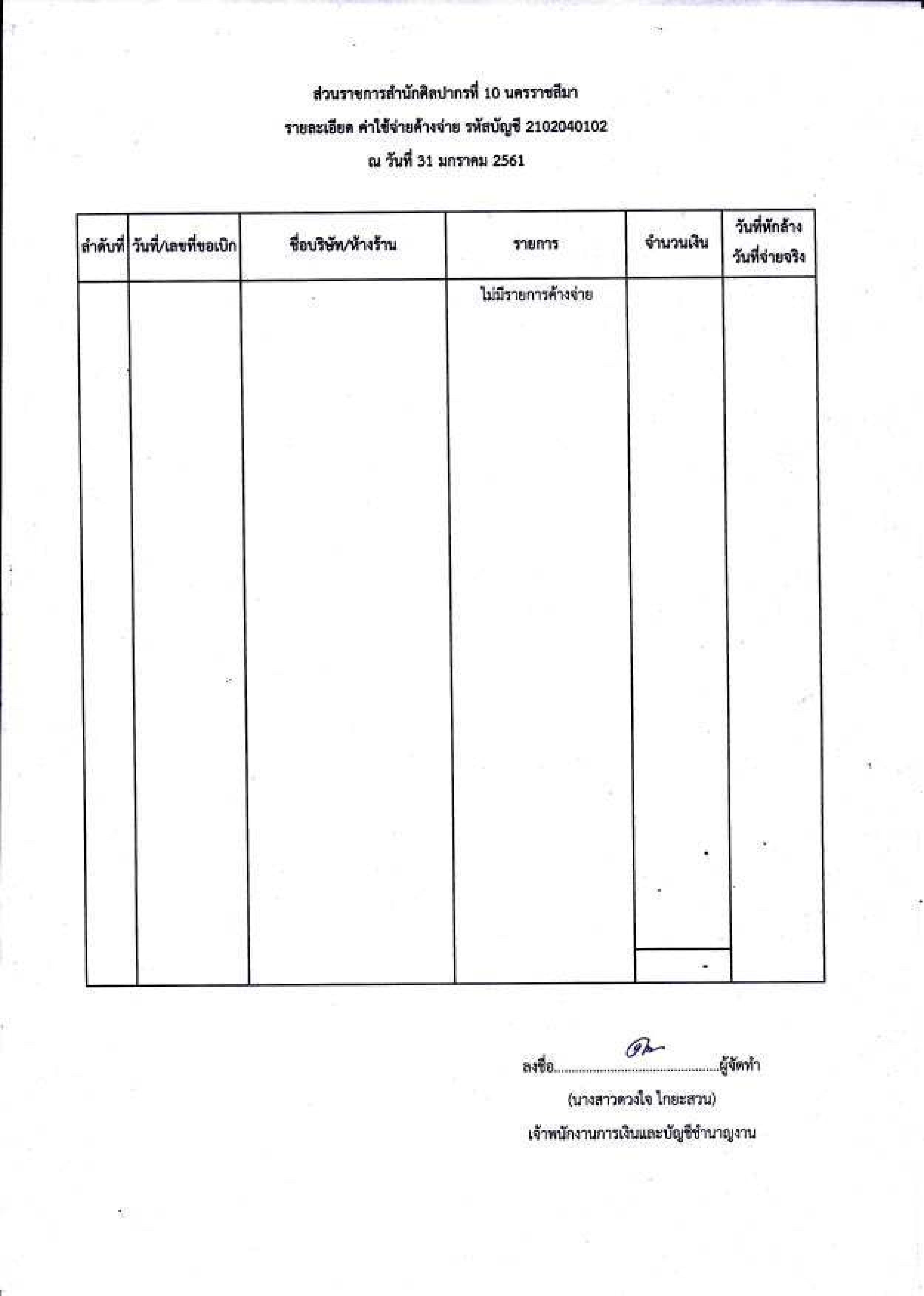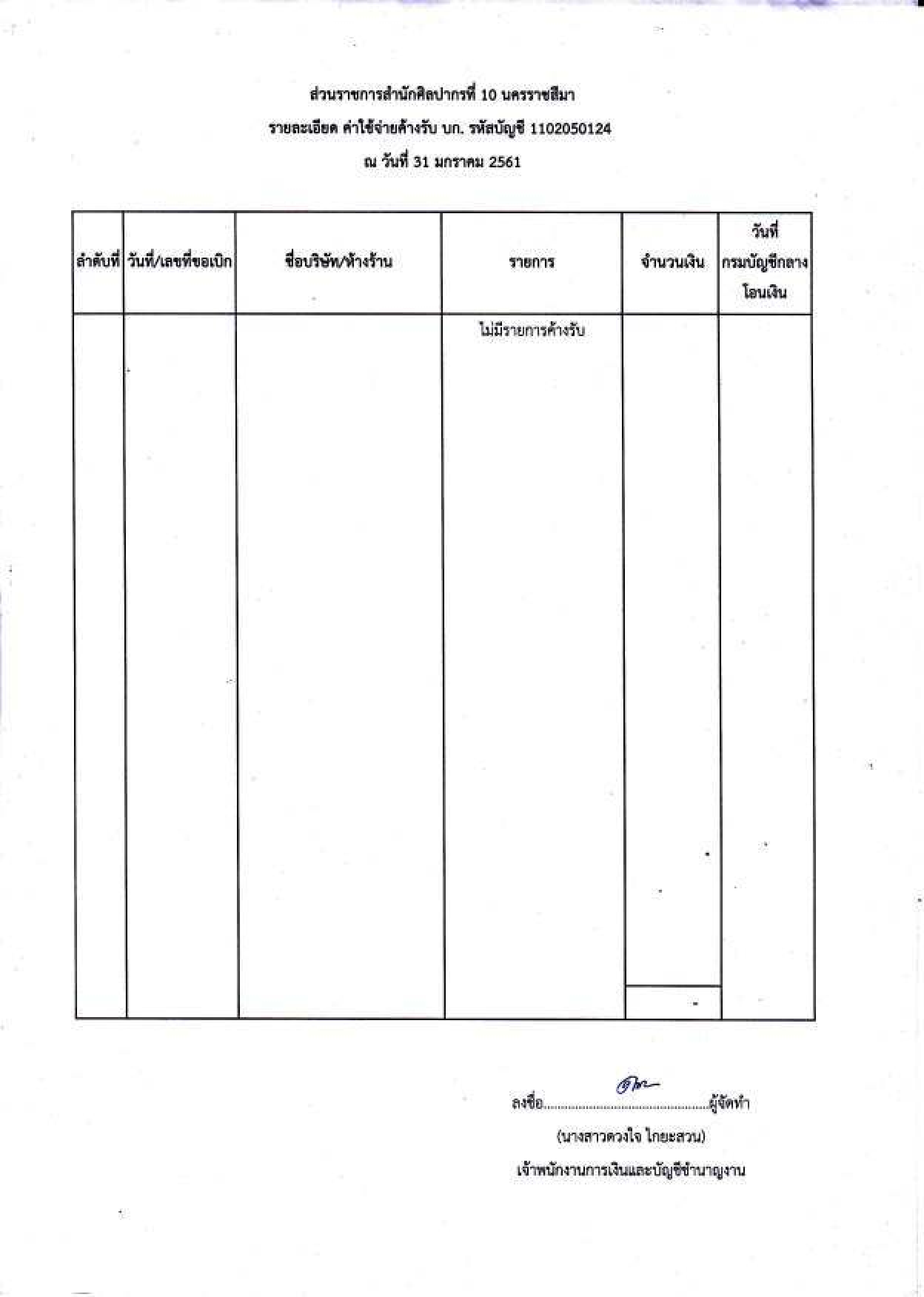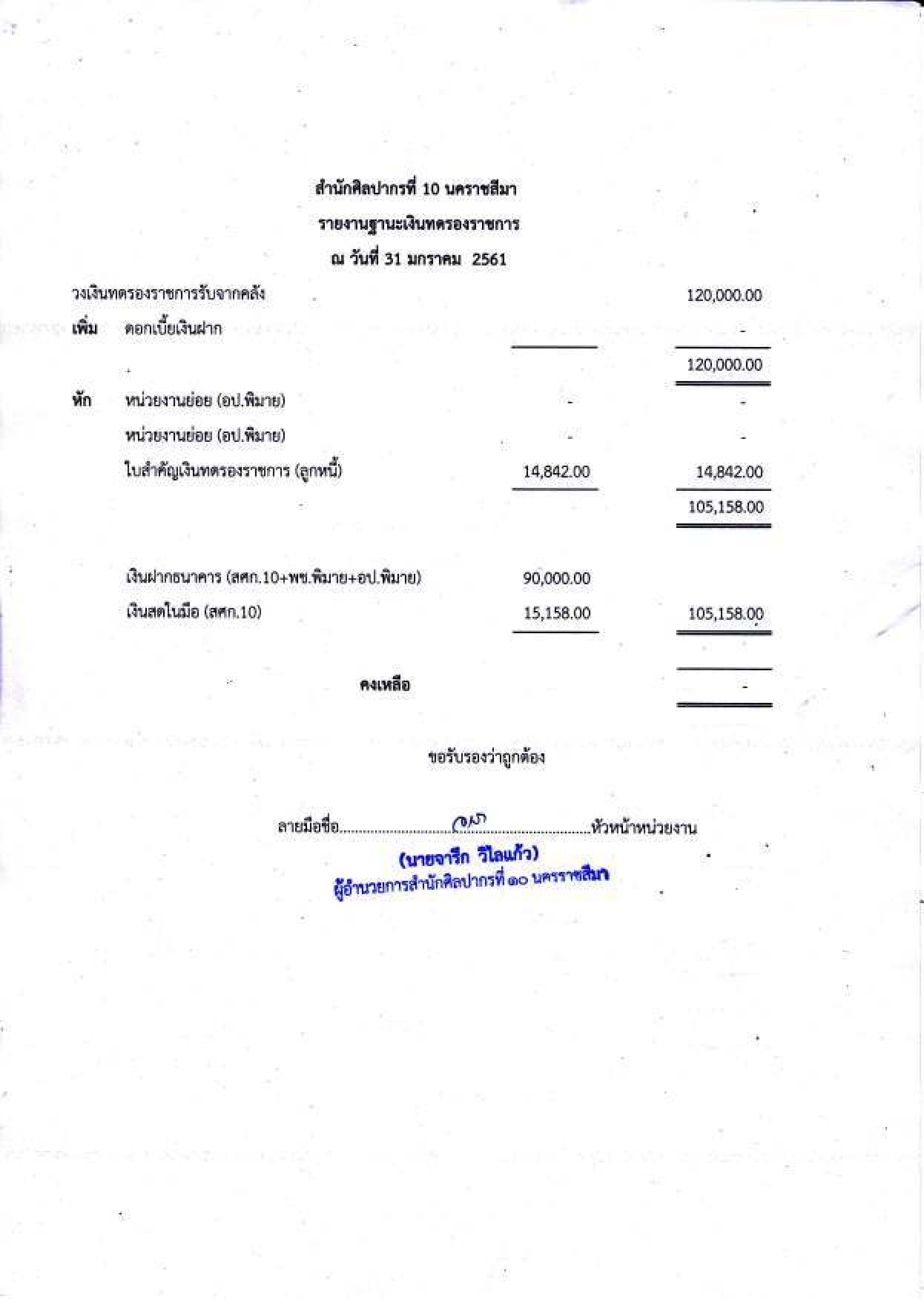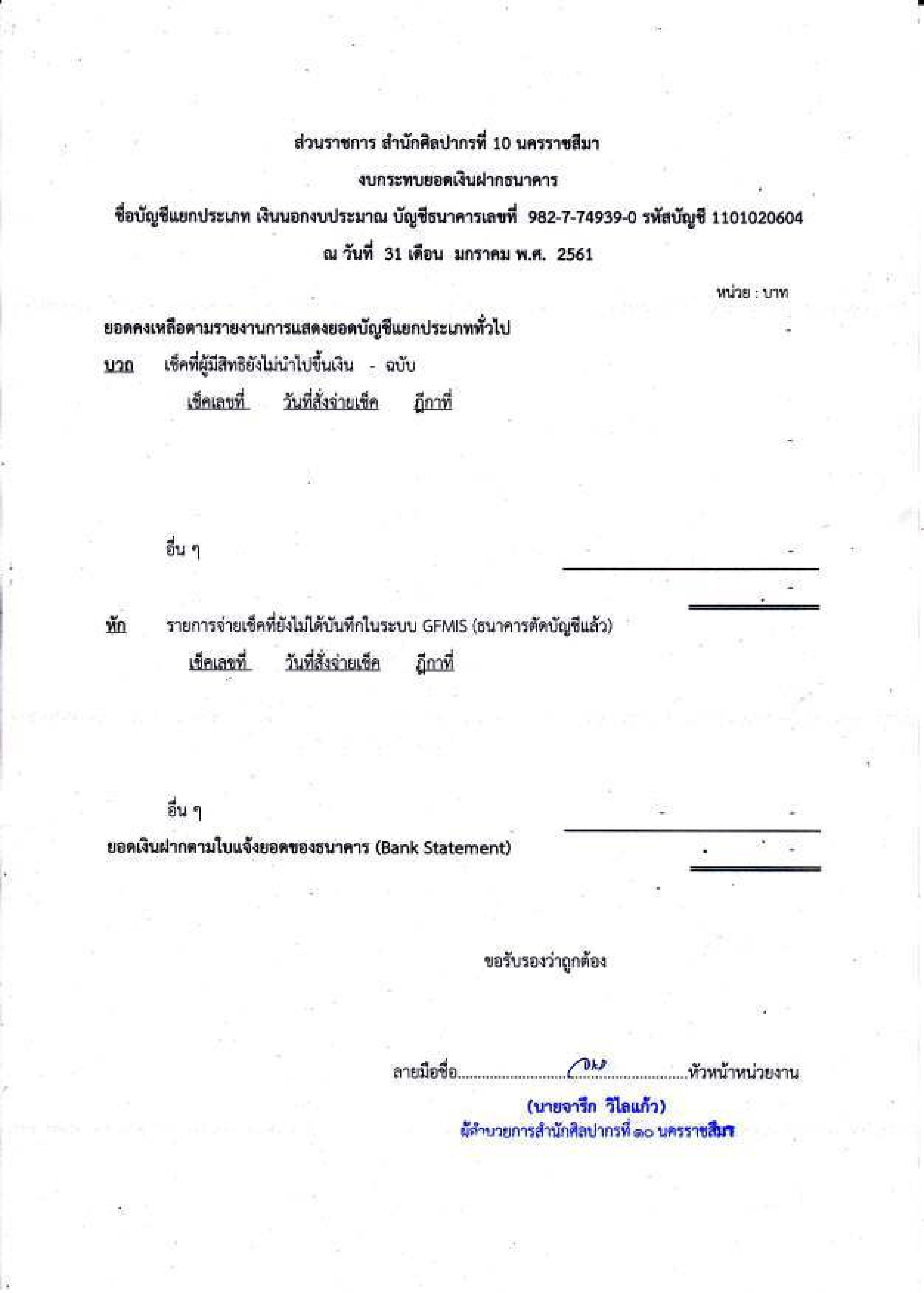รายงานบัญชีงบทดลองและเอกสารประกอบงบทดลอง สำนักศิลปากรที่ ๑๐ นครราชสีมา (เดือนมกราคม ๒๕๖๑)