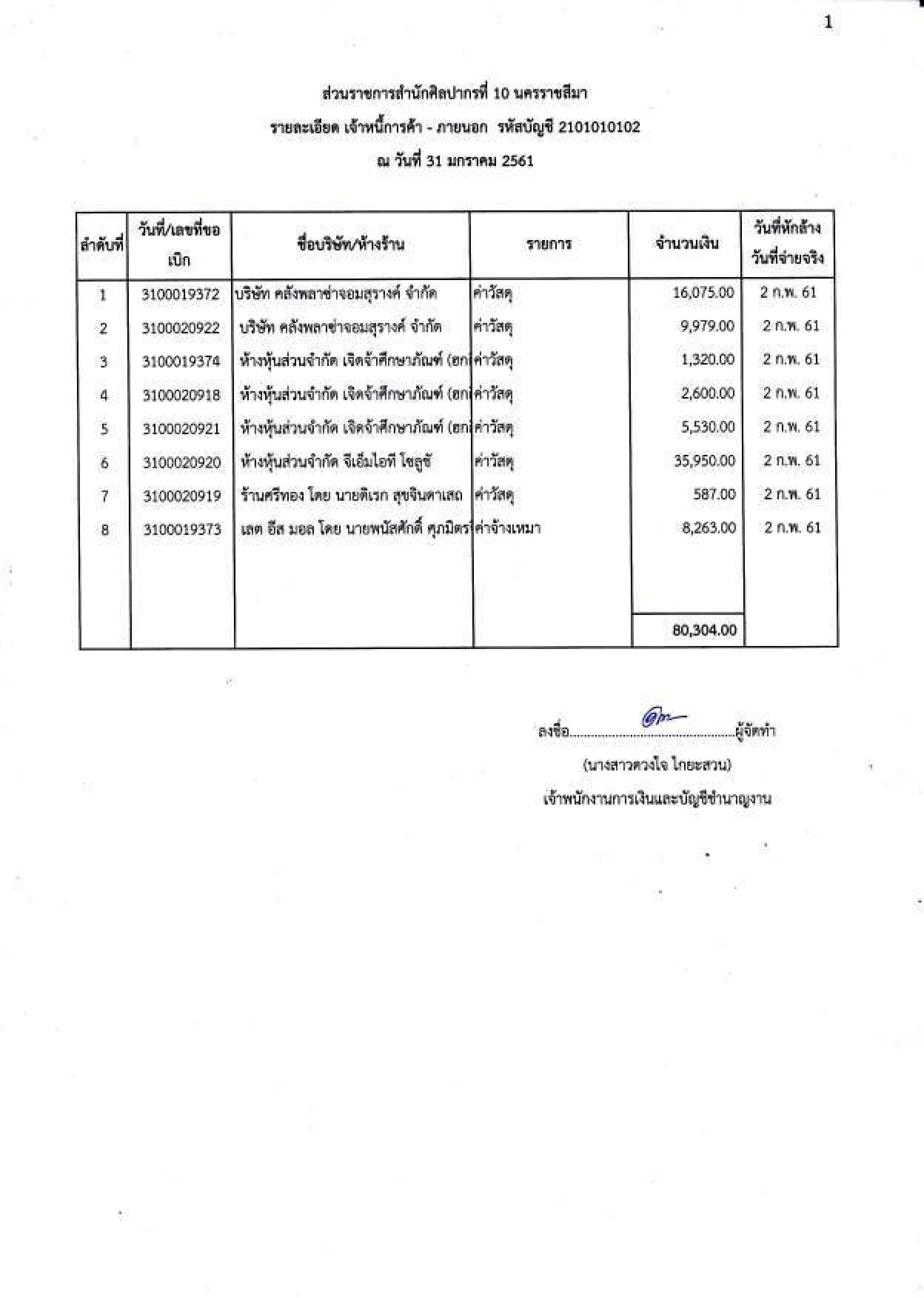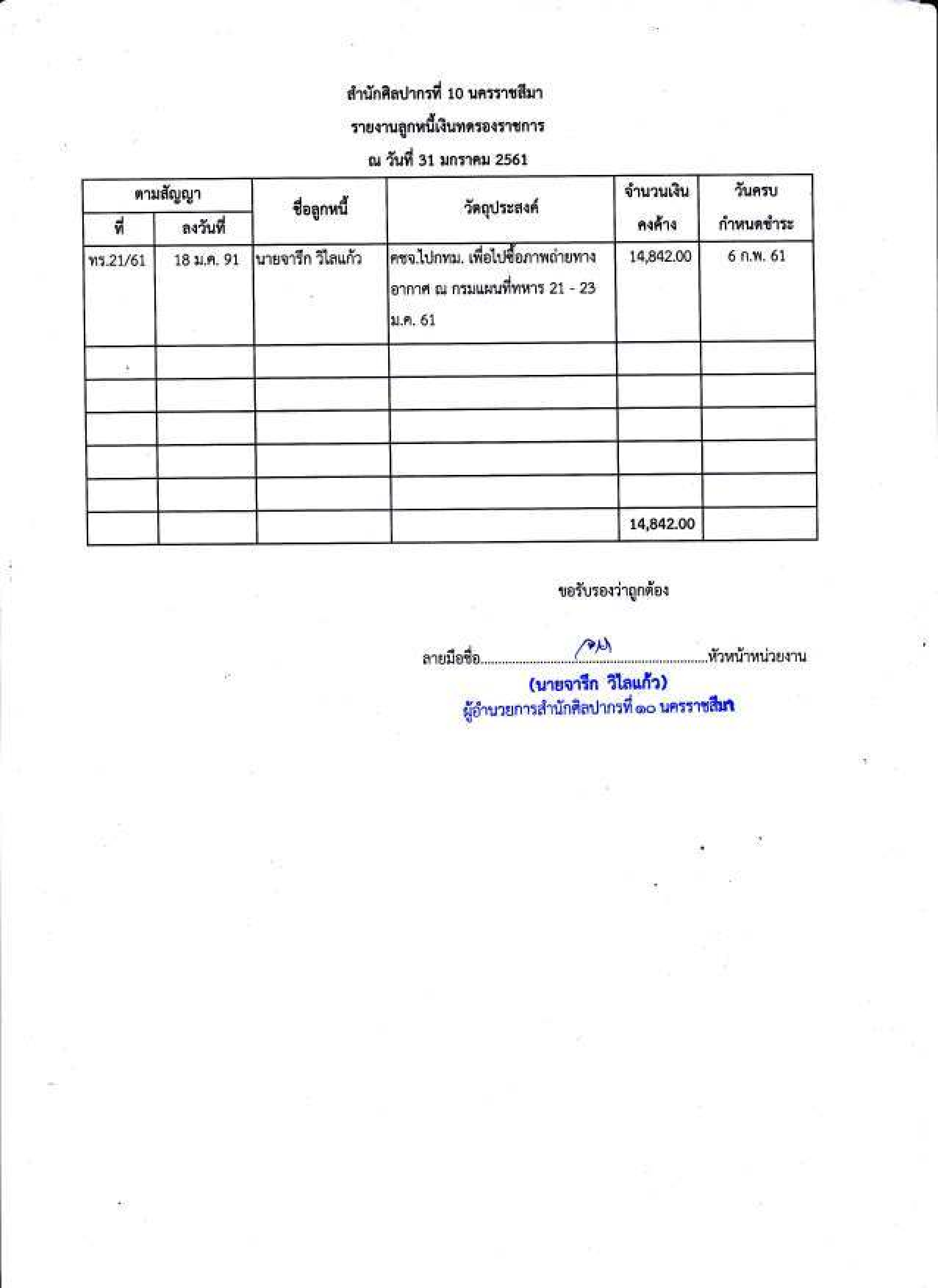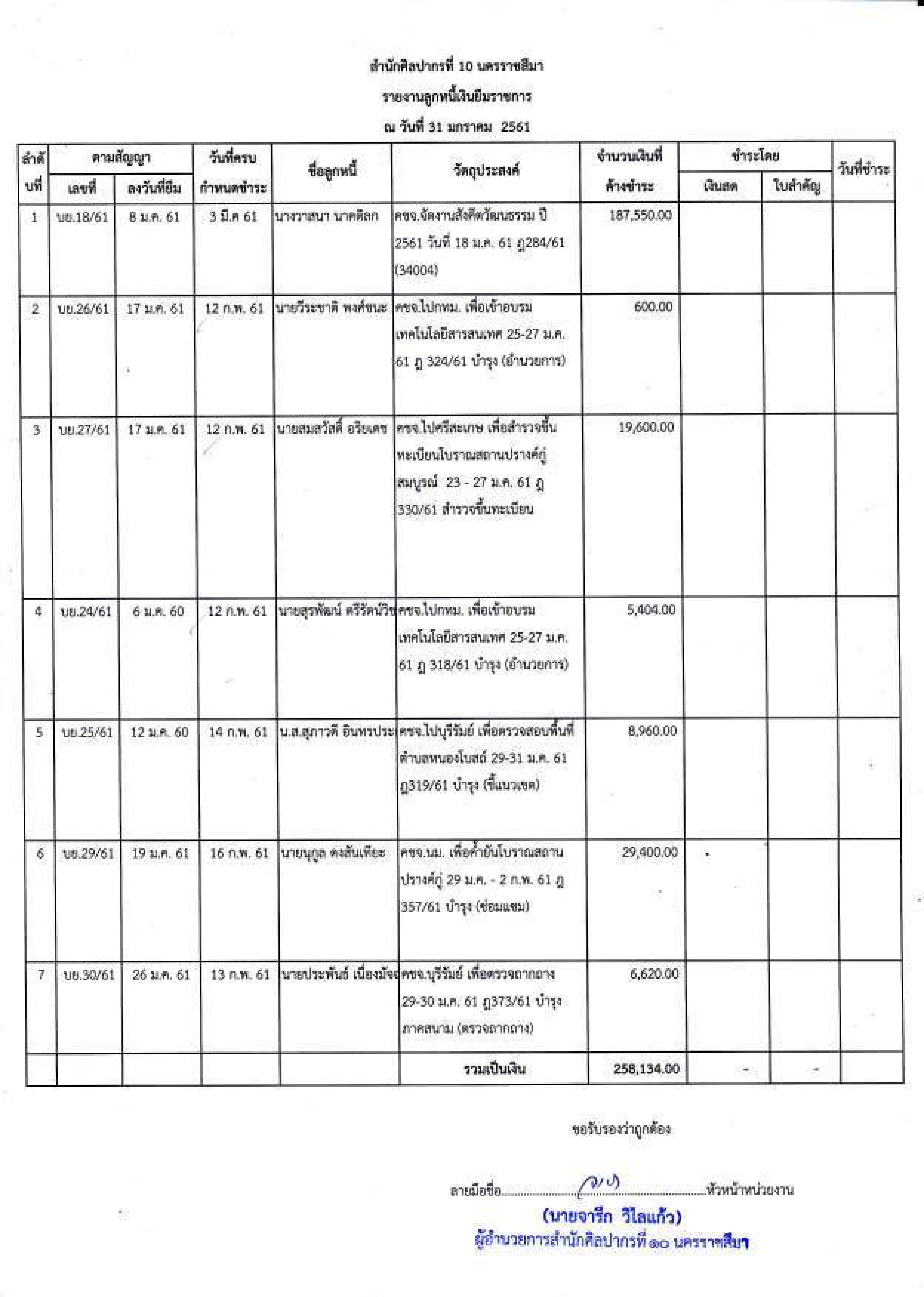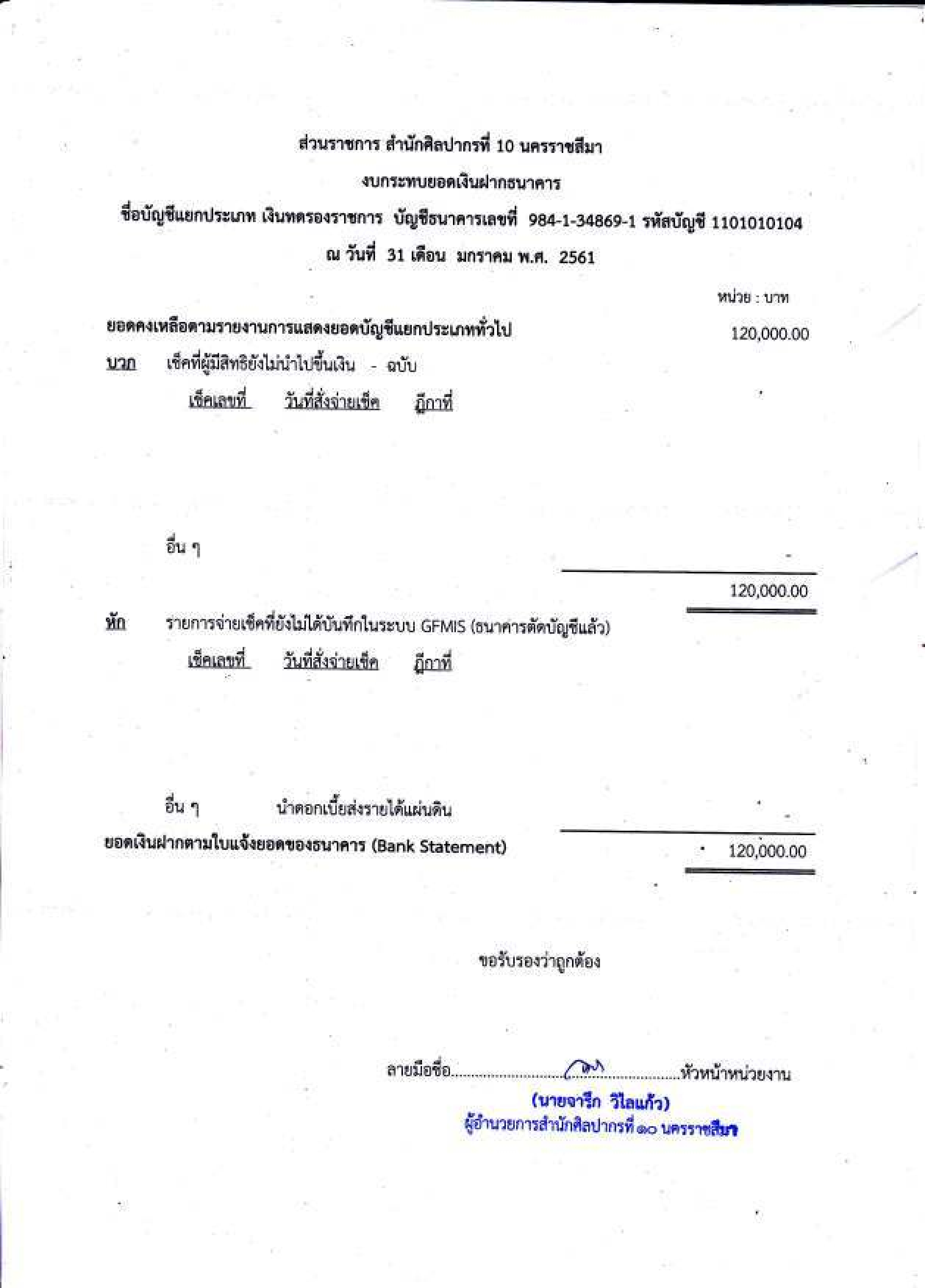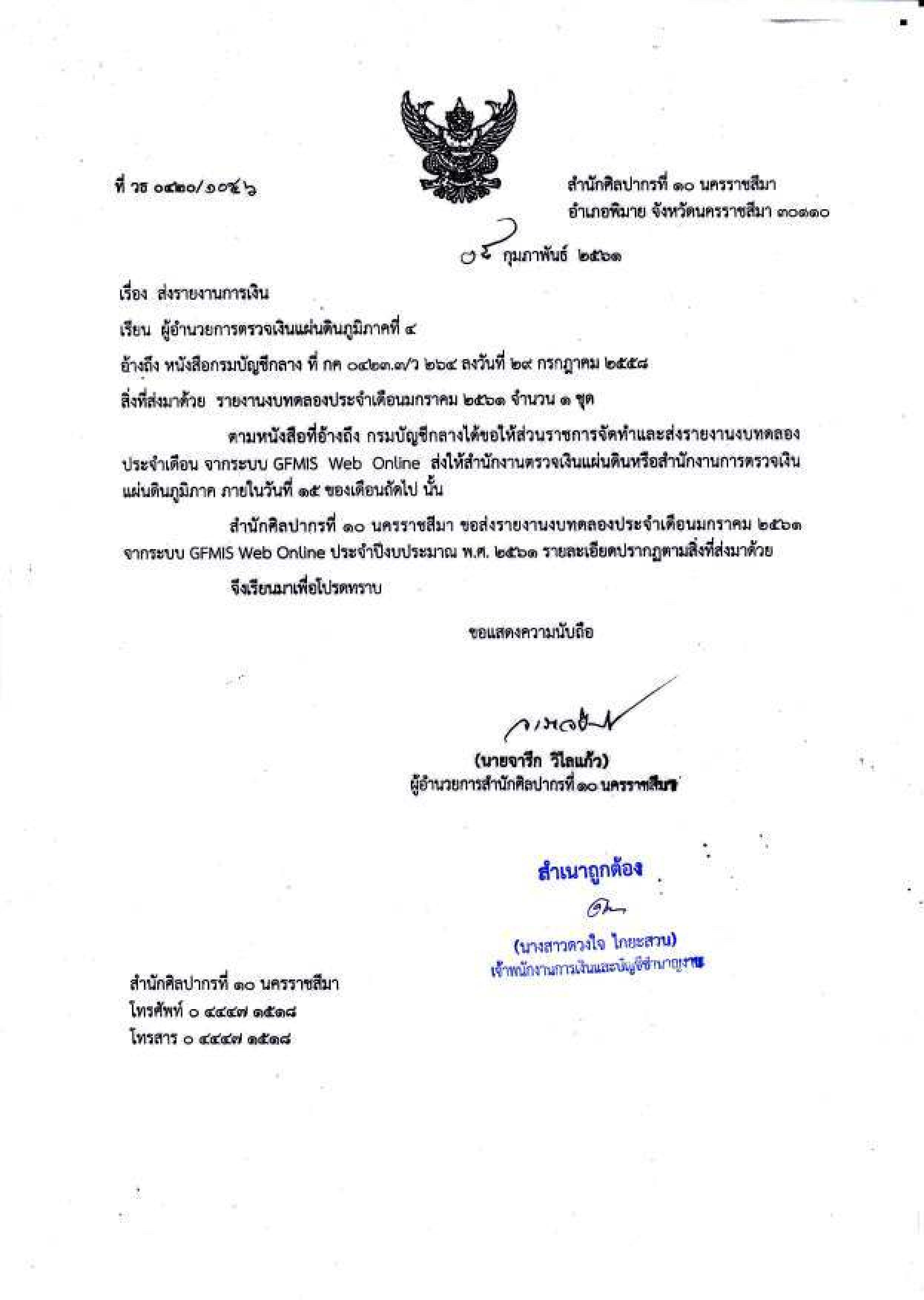 รายงานบัญชีงบทดลองและเอกสารประกอบงบทดลอง สำนักศิลปากรที่ ๑๐ นครราชสีมา (เดือนมกราคม ๒๕๖๑)