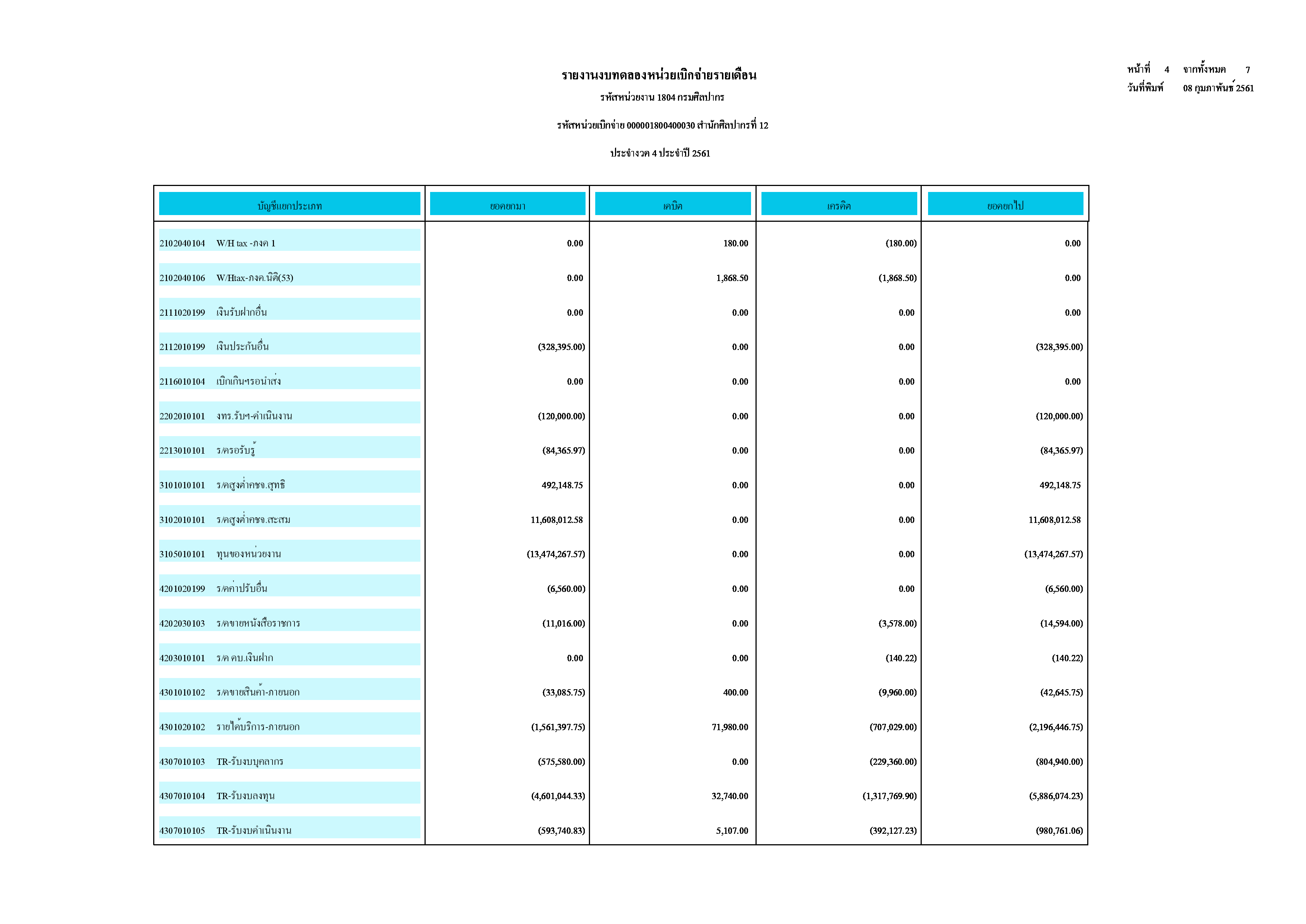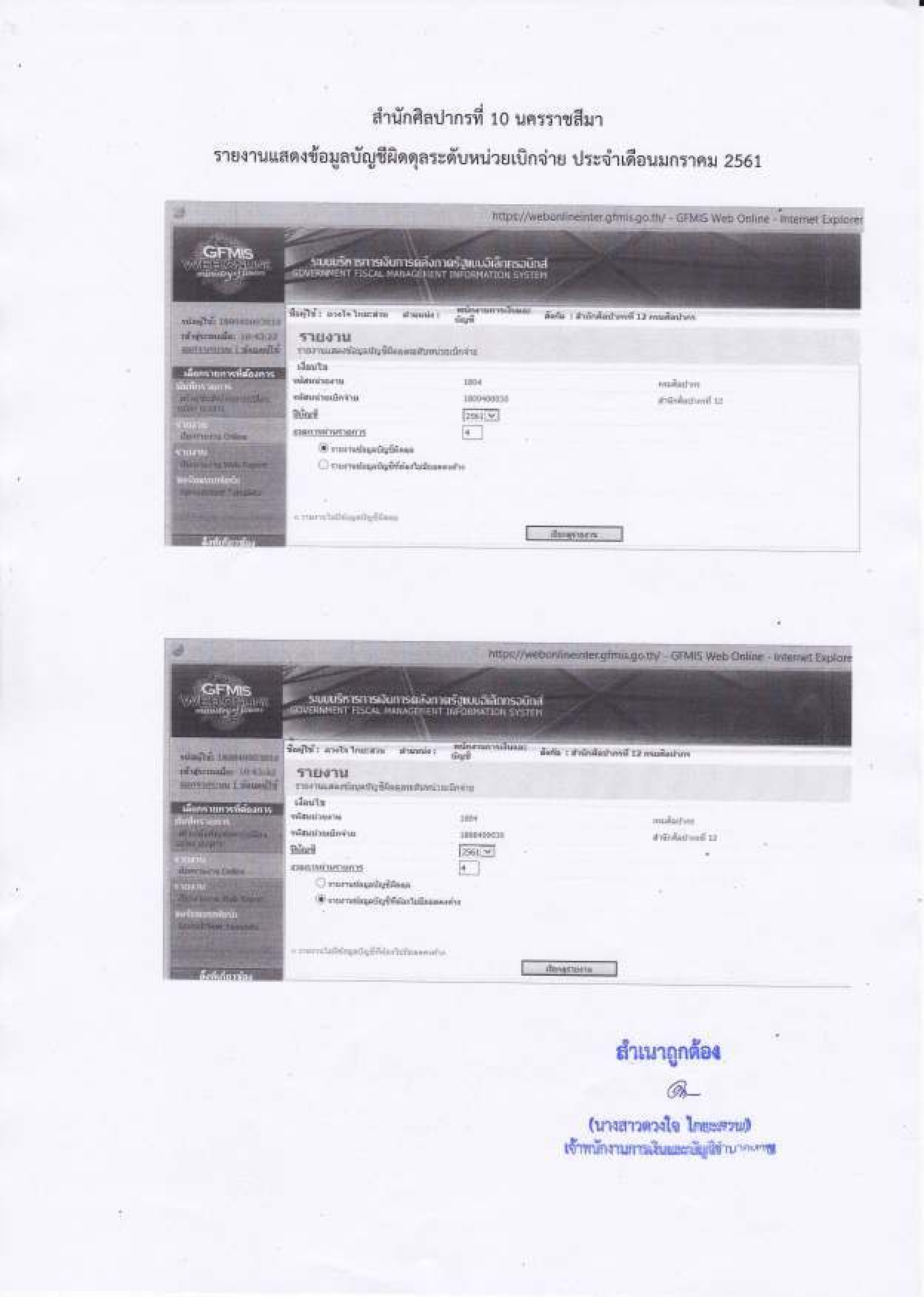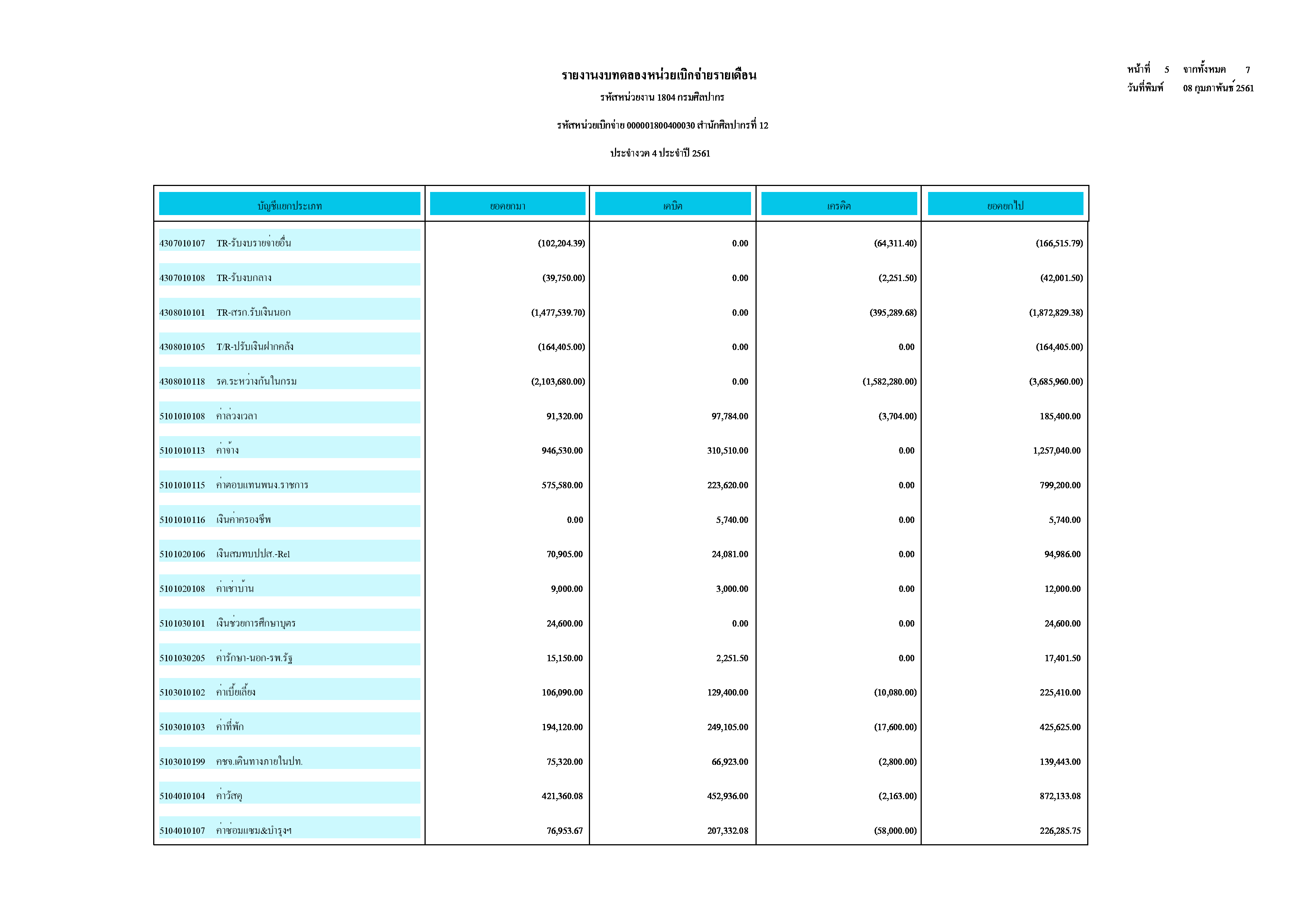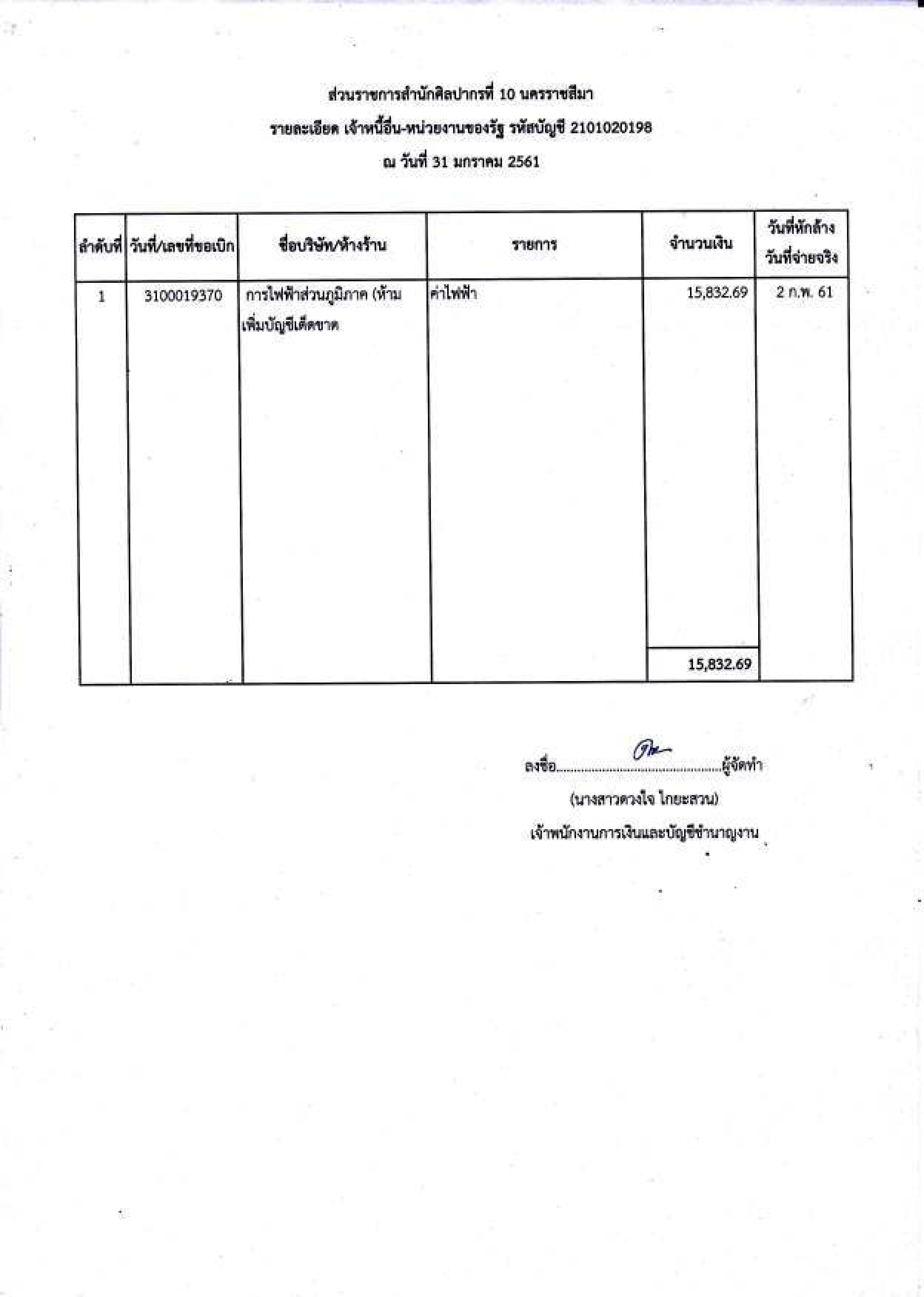 รายงานบัญชีงบทดลองและเอกสารประกอบงบทดลอง สำนักศิลปากรที่ ๑๐ นครราชสีมา (เดือนมกราคม ๒๕๖๑)