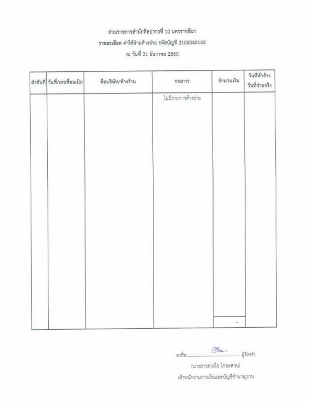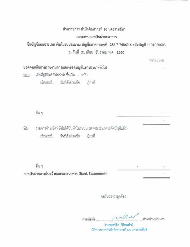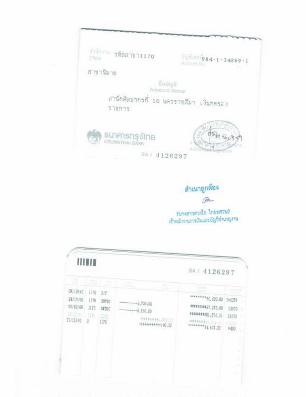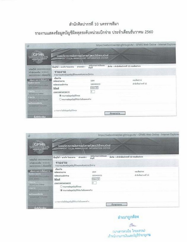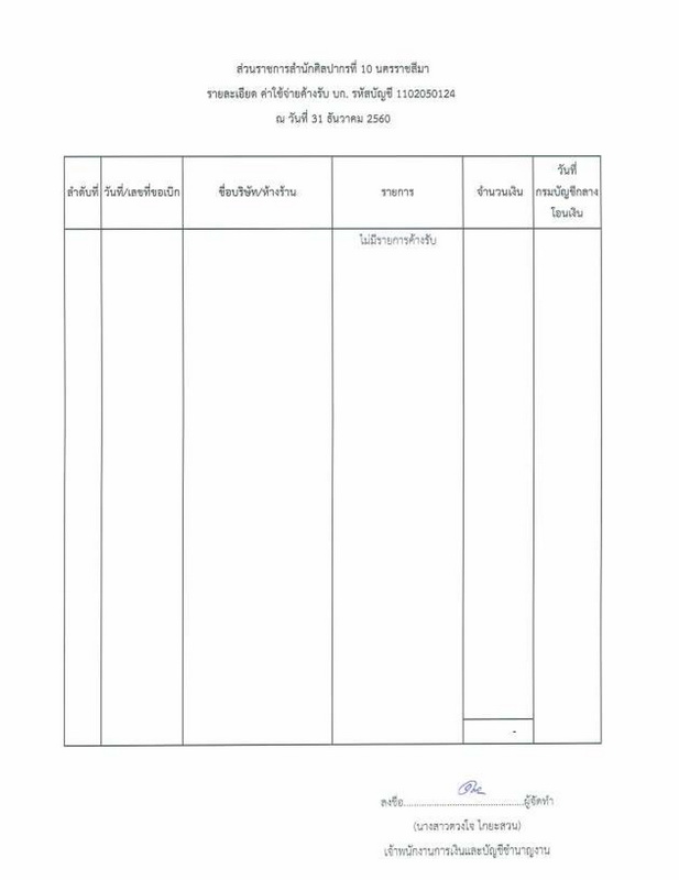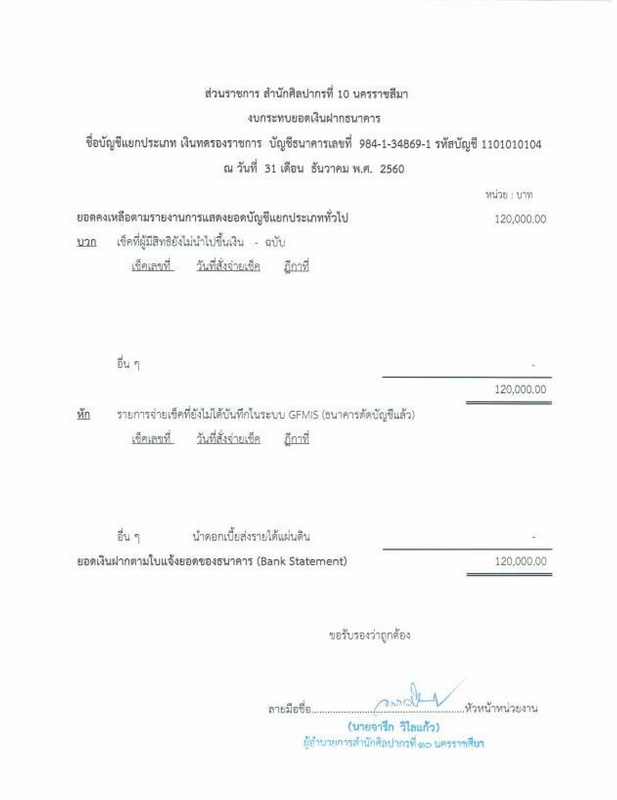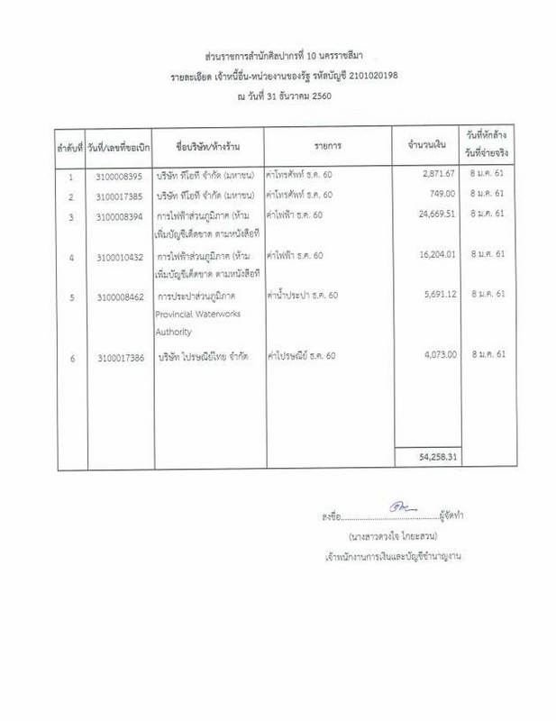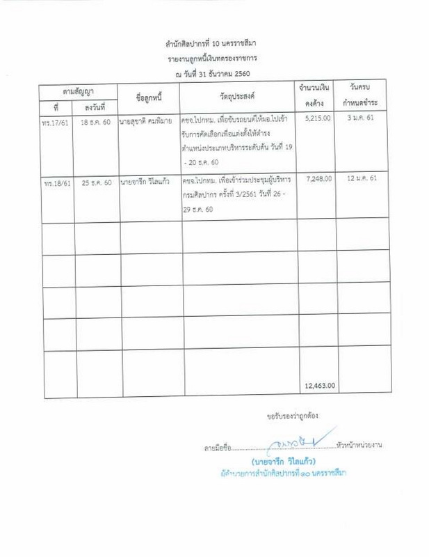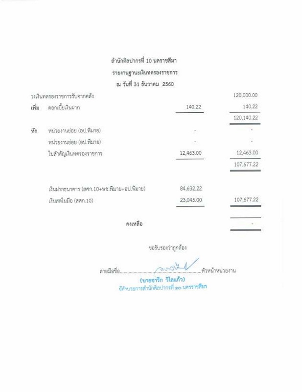 รายงานบัญชีงบทดลองและเอกสารประกอบงบทดลอง สำนักศิลปากรที่ ๑๐ นครราชสีมา (เดือนธันวาคม ๒๕๖๐)