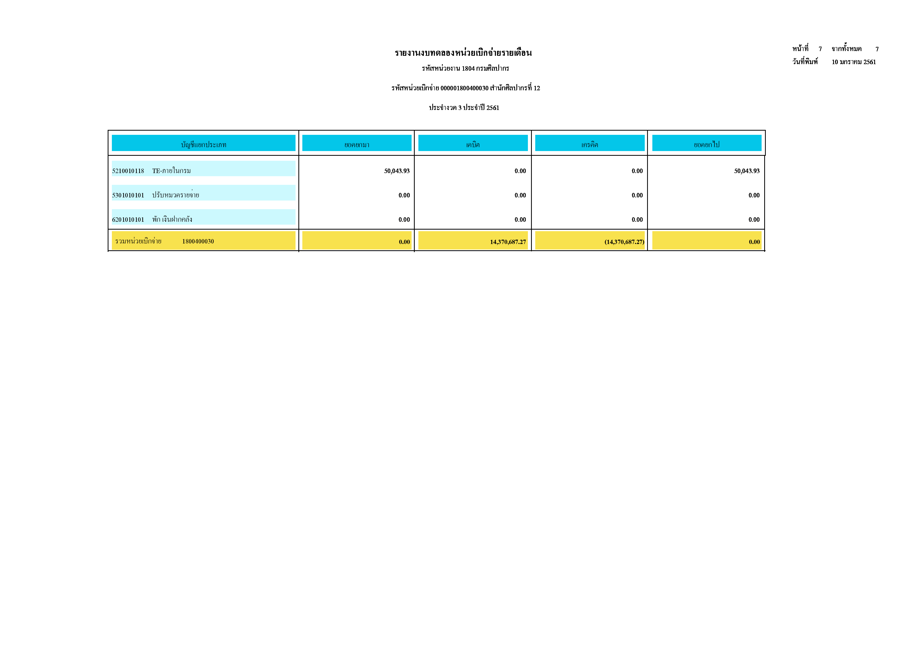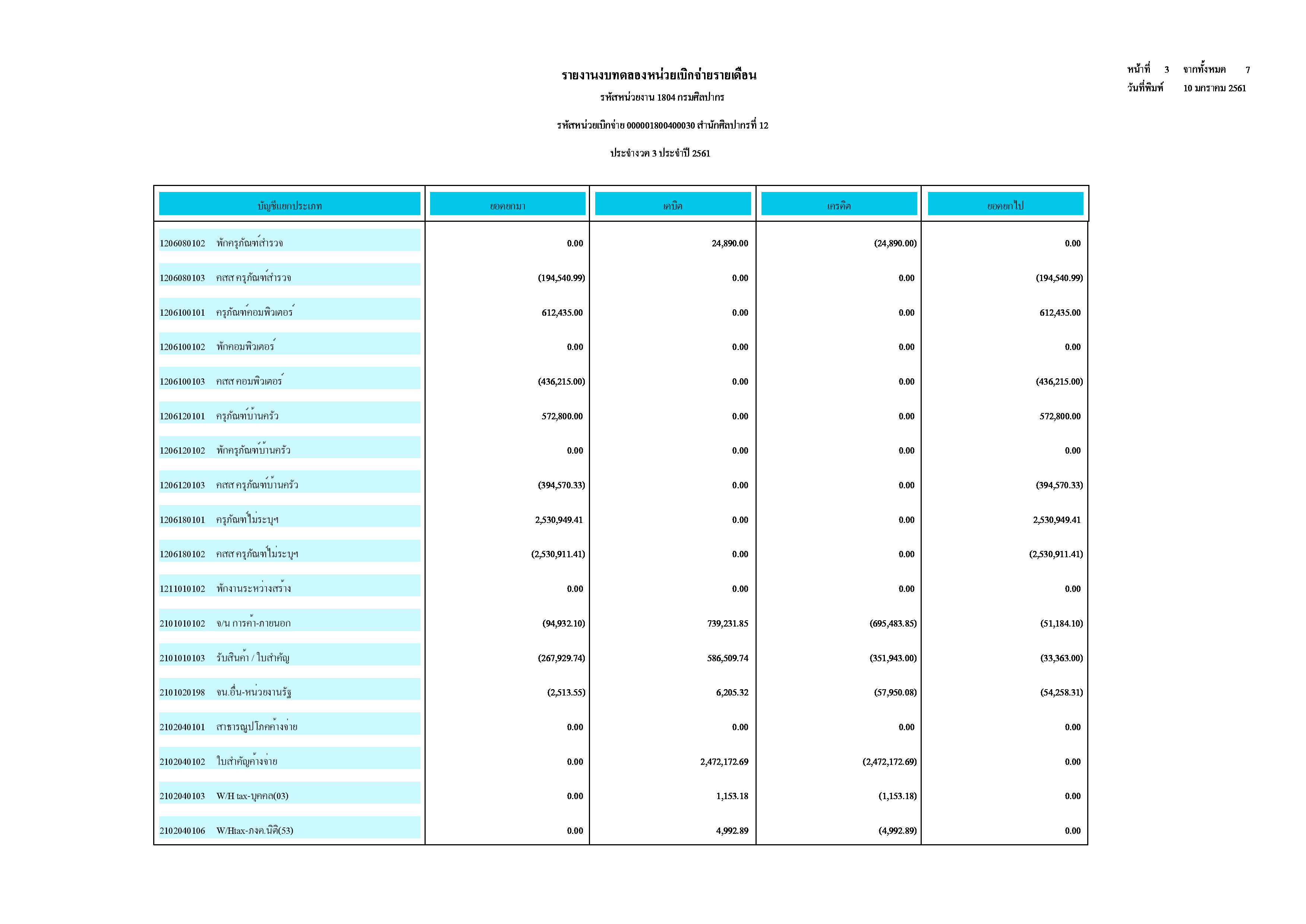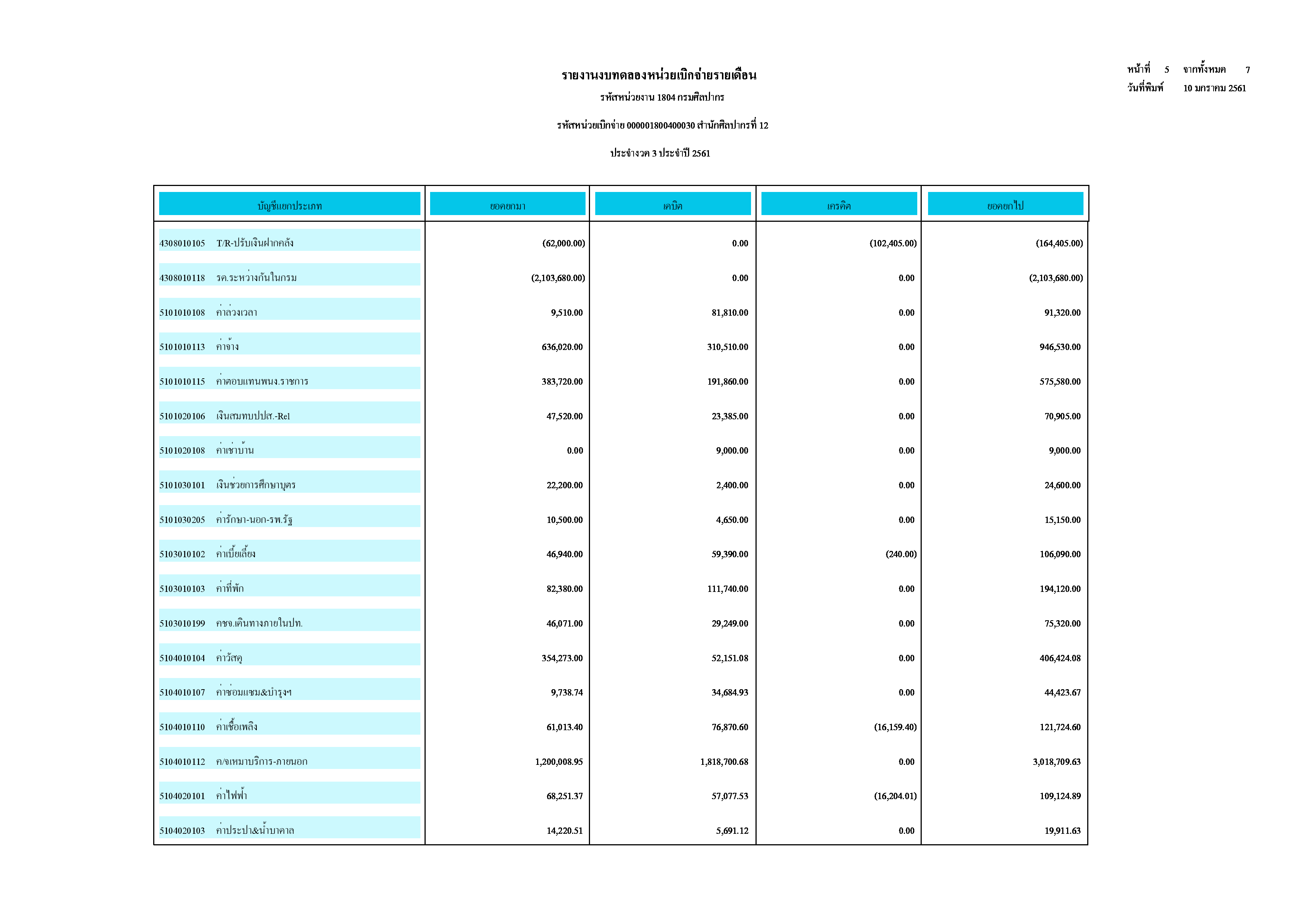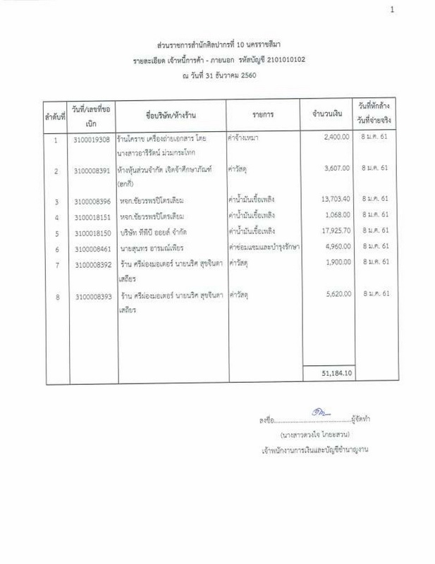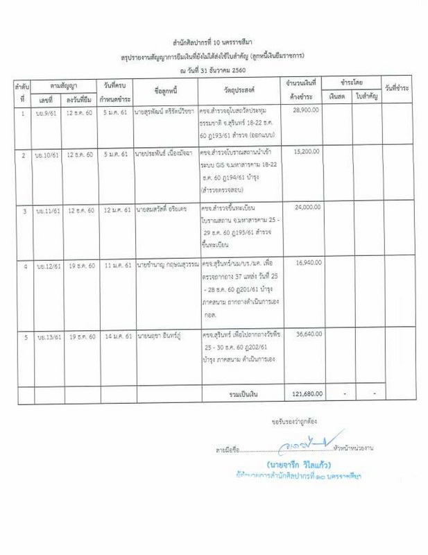 รายงานบัญชีงบทดลองและเอกสารประกอบงบทดลอง สำนักศิลปากรที่ ๑๐ นครราชสีมา (เดือนธันวาคม ๒๕๖๐)