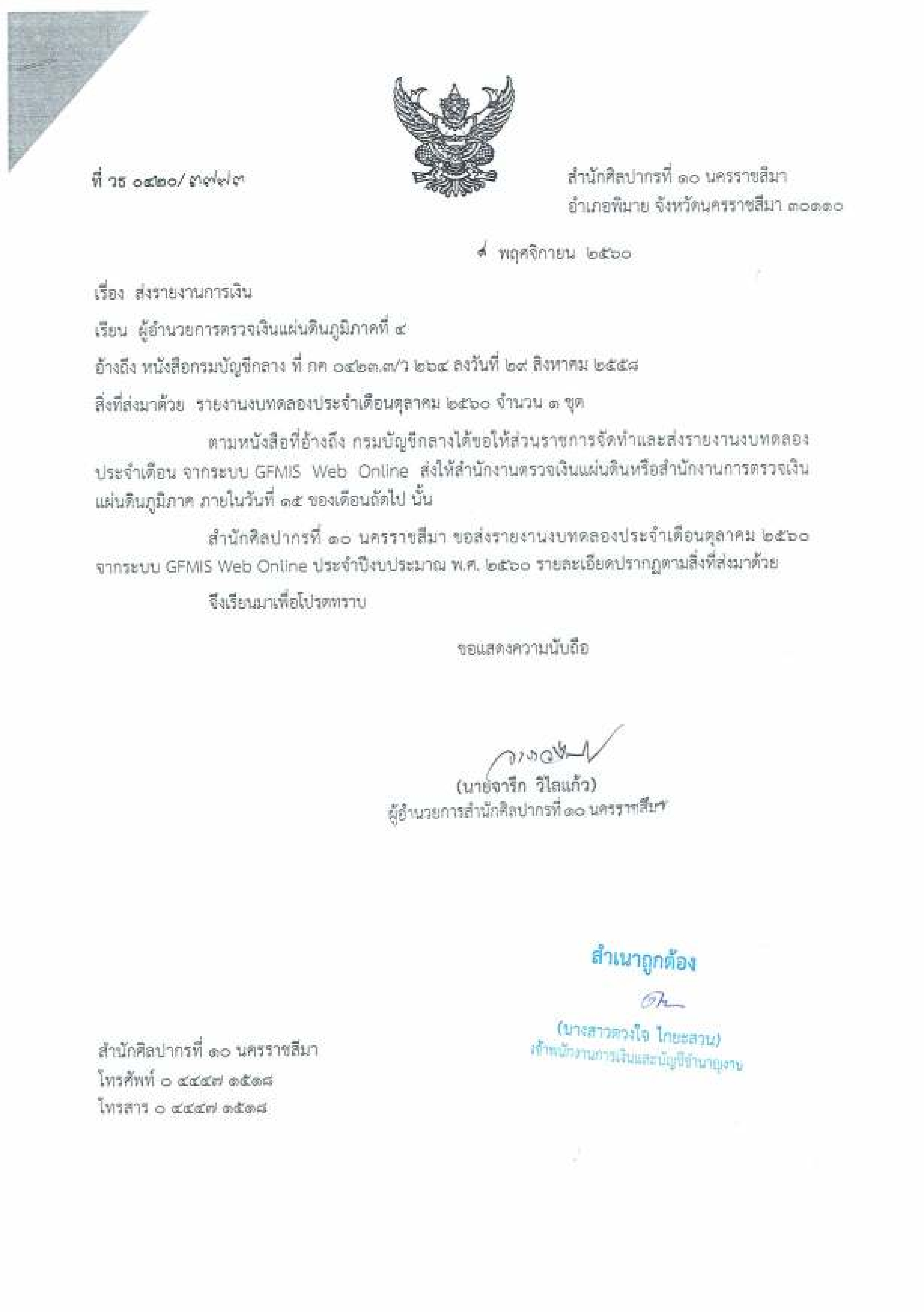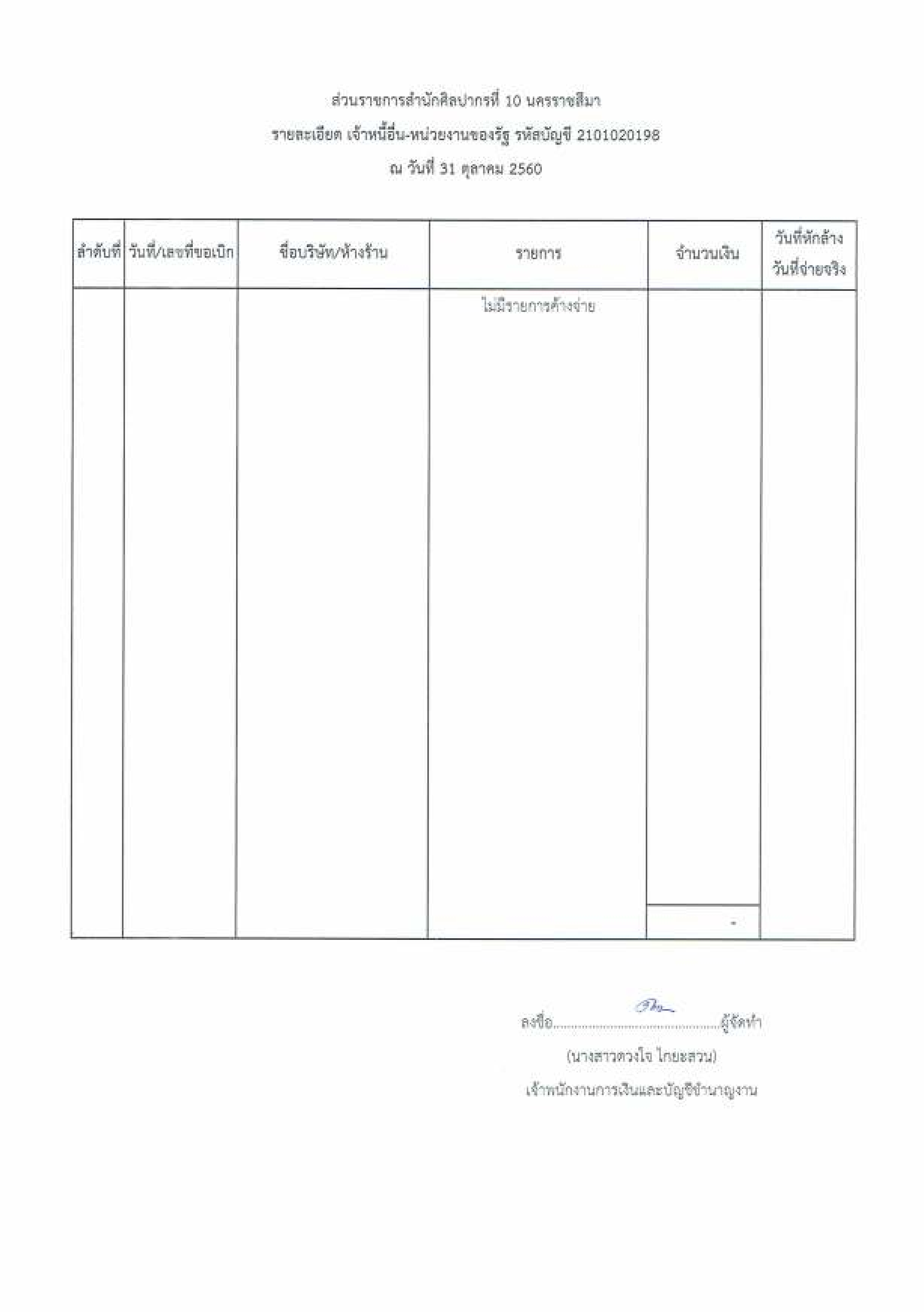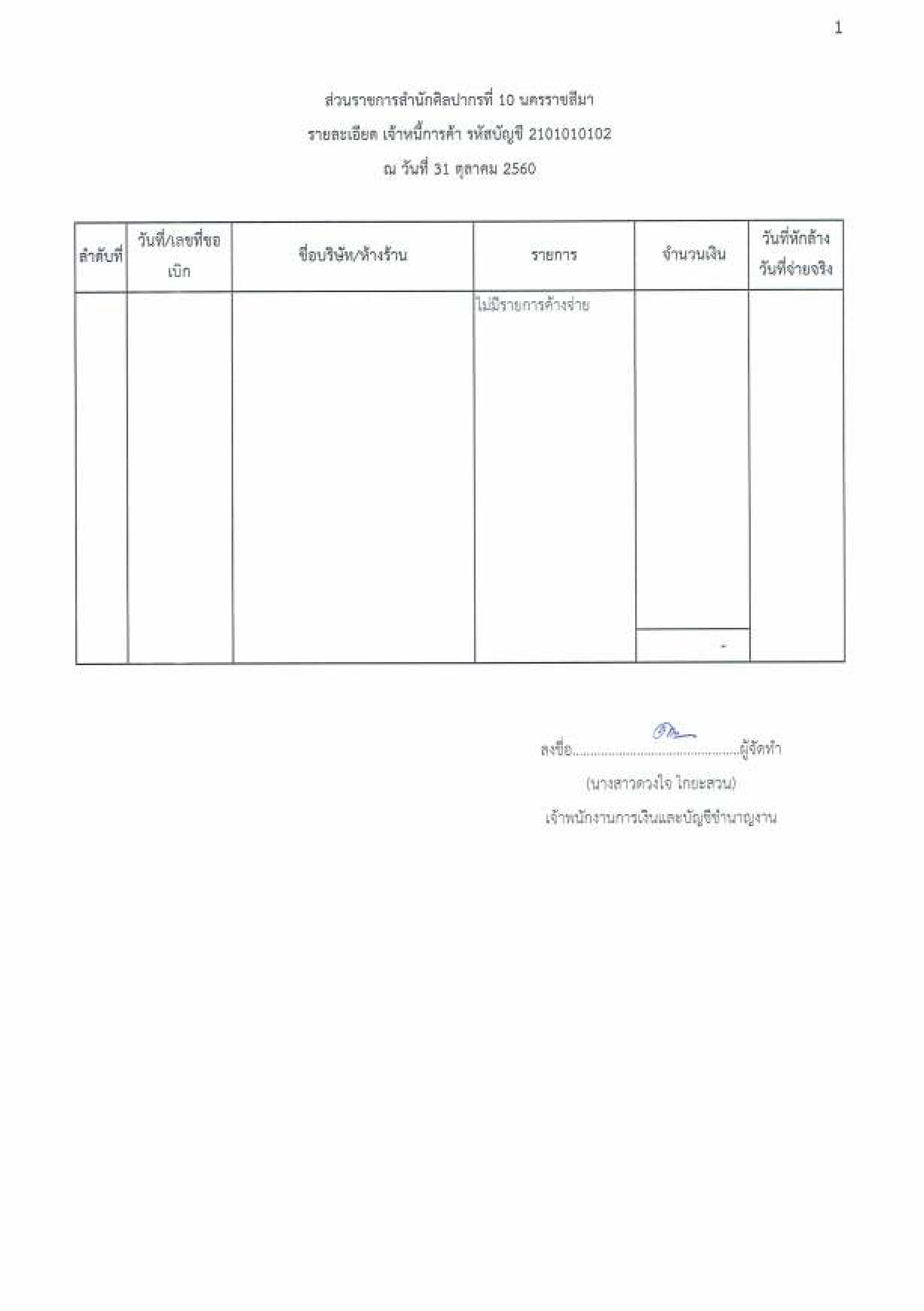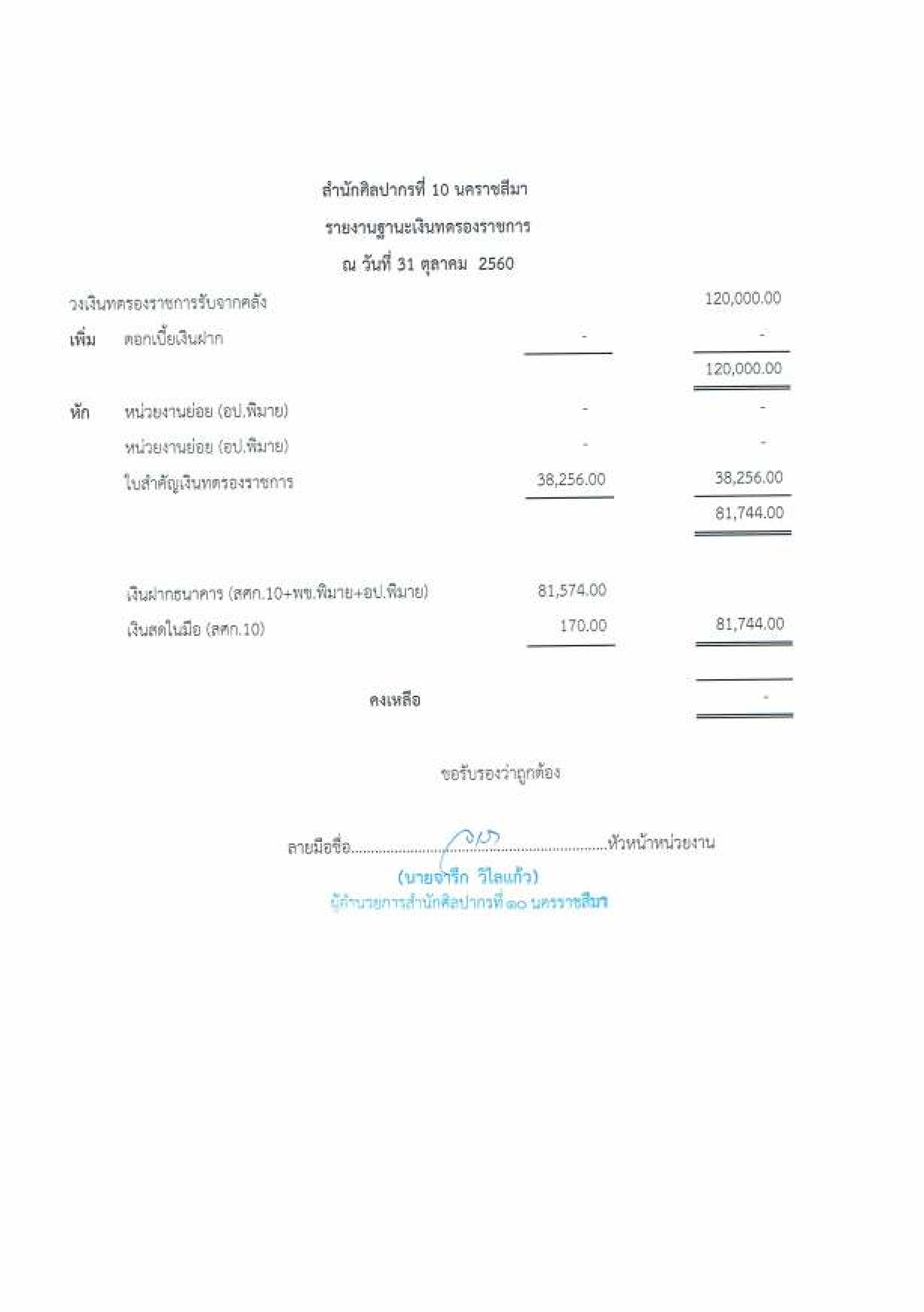 รายงานบัญชีงบทดลองและเอกสารประกอบงบทดลอง สำนักศิลปากรที่ ๑๐ นครราชสีมา (เดือนตุลาคม ๒๕๖๐)