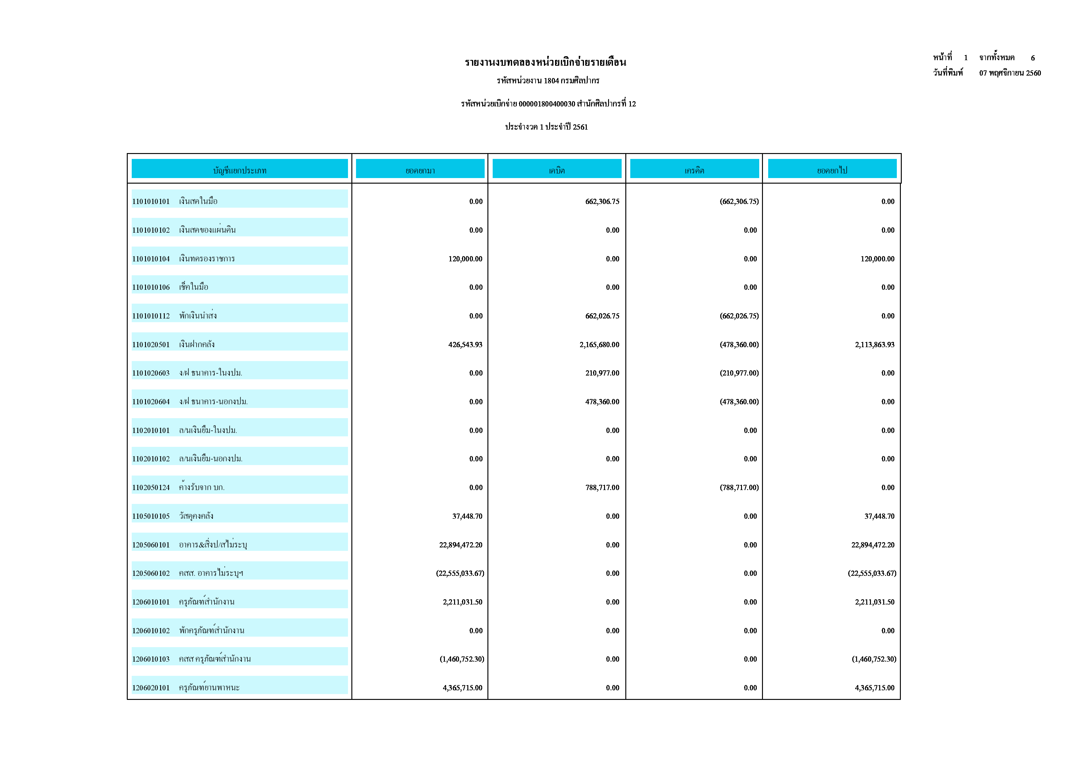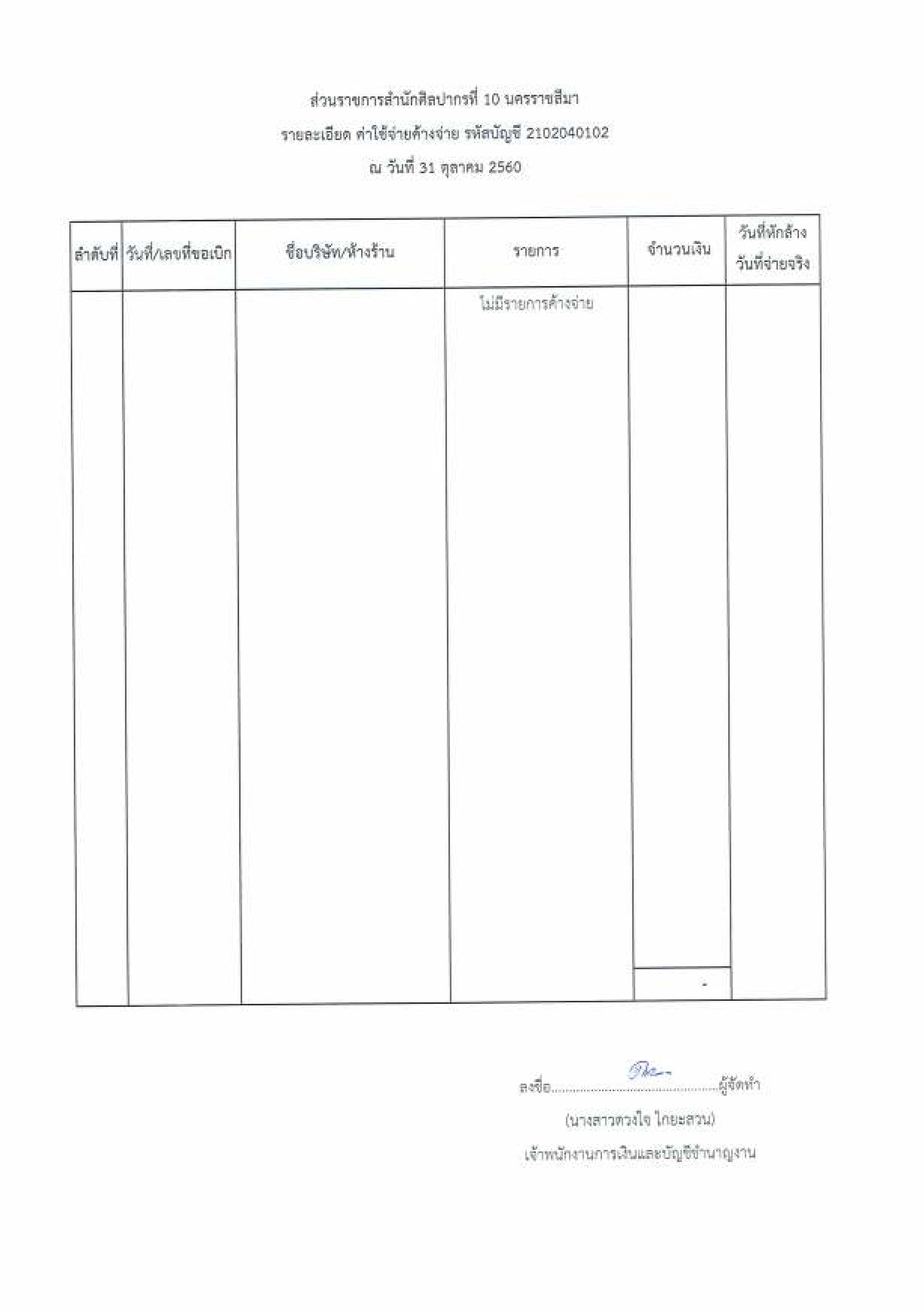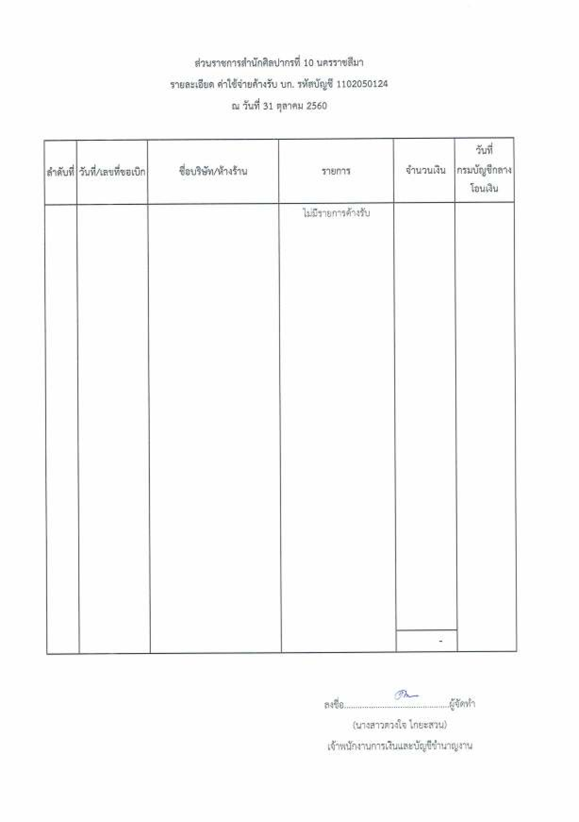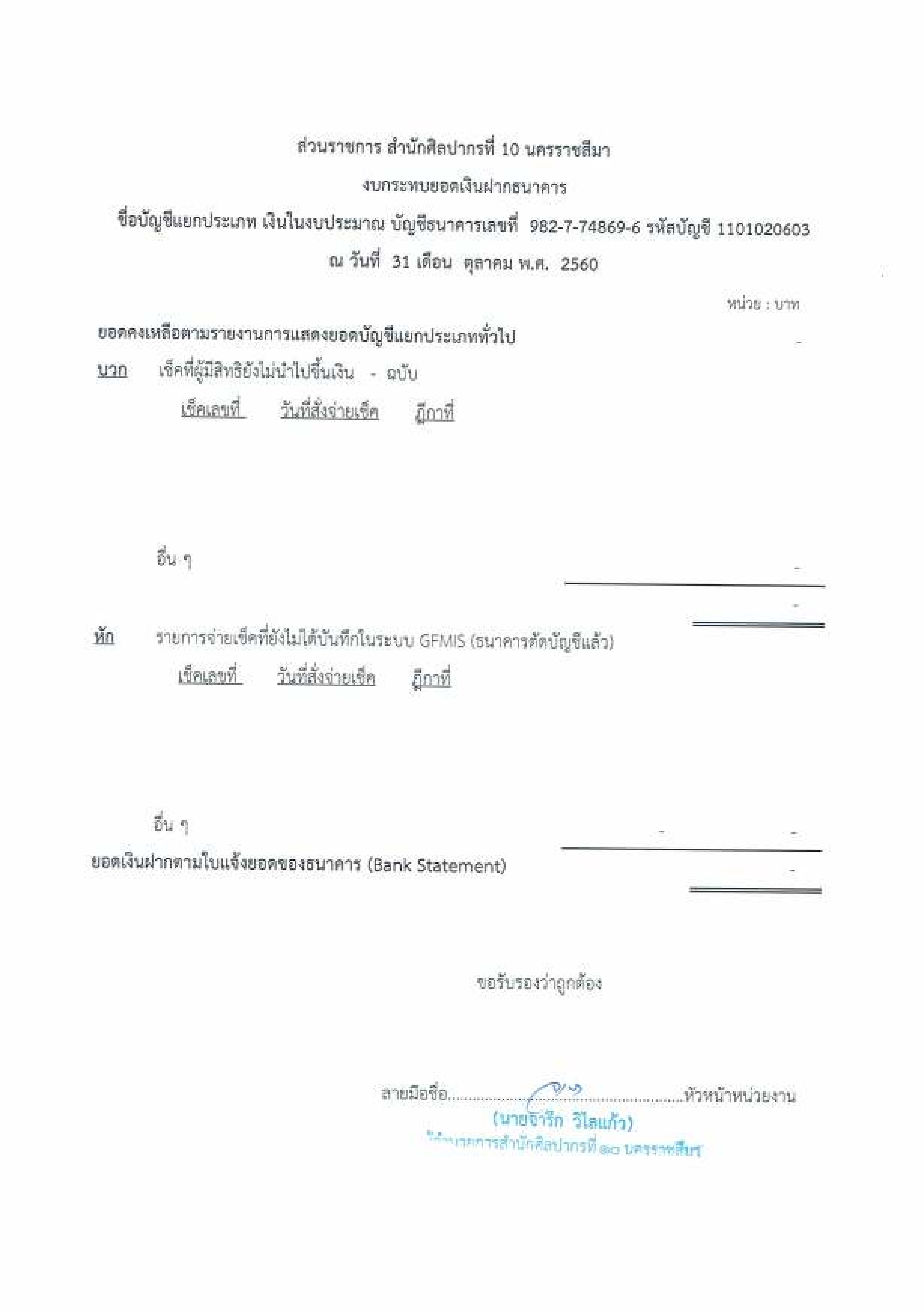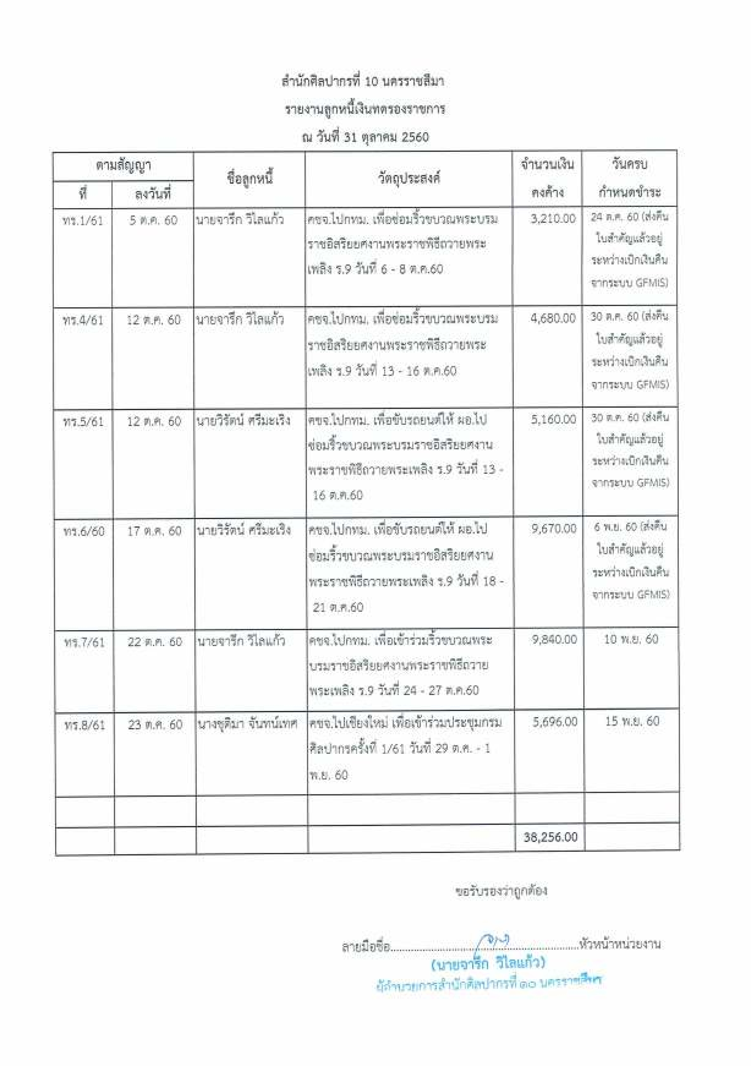 รายงานบัญชีงบทดลองและเอกสารประกอบงบทดลอง สำนักศิลปากรที่ ๑๐ นครราชสีมา (เดือนตุลาคม ๒๕๖๐)