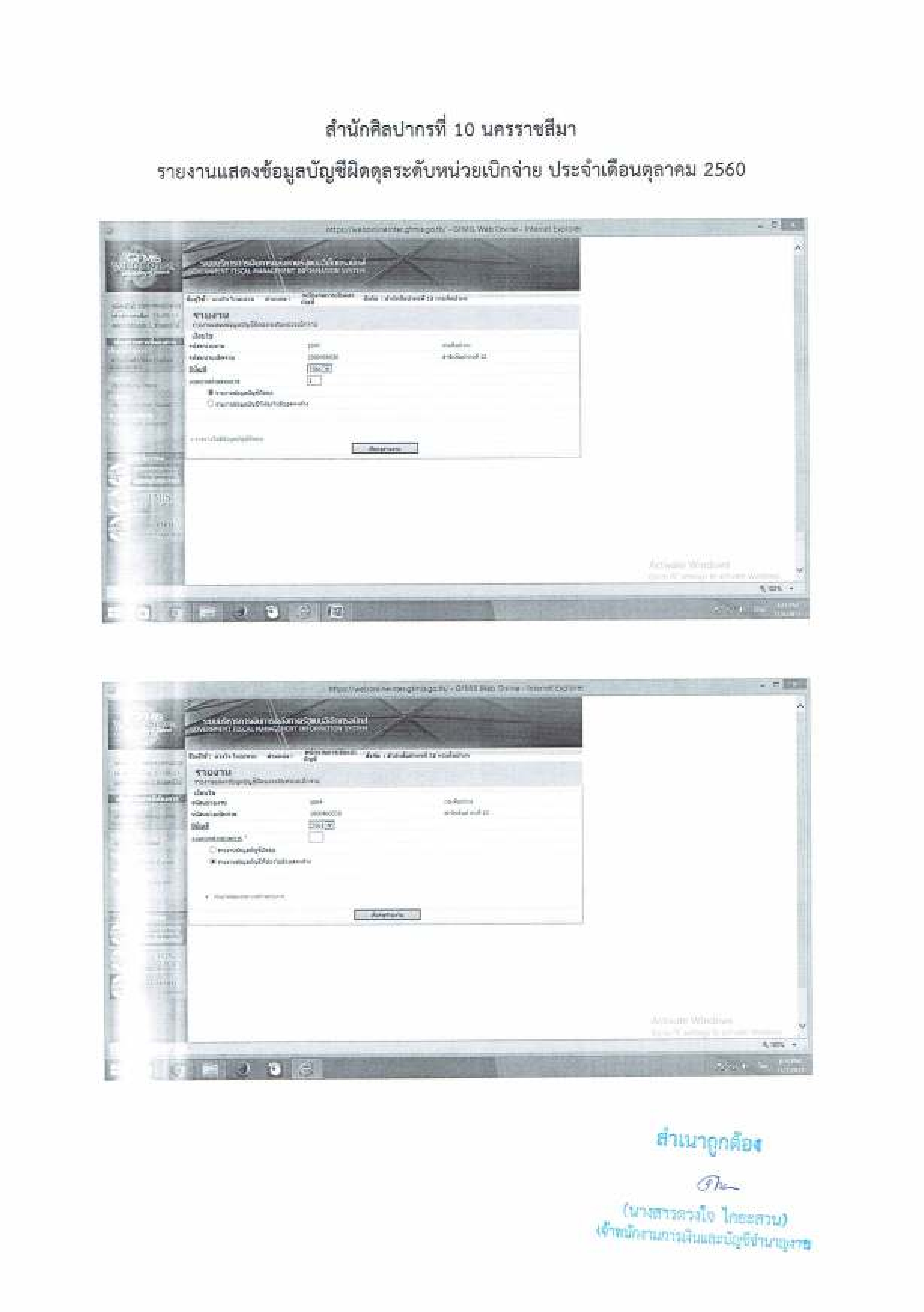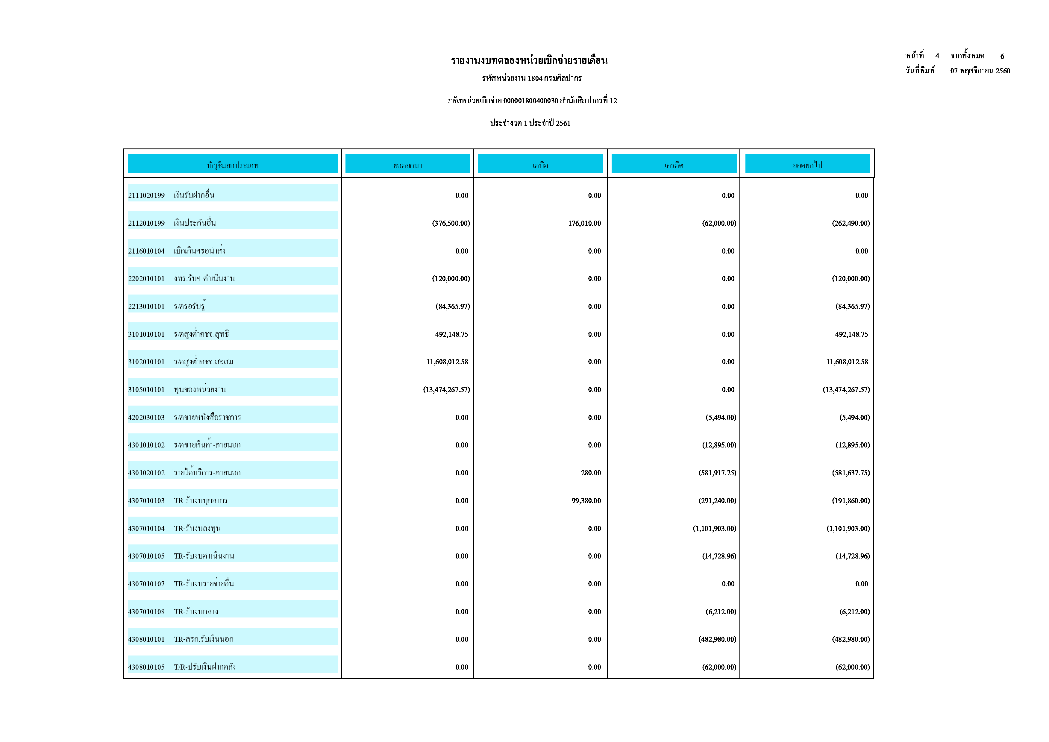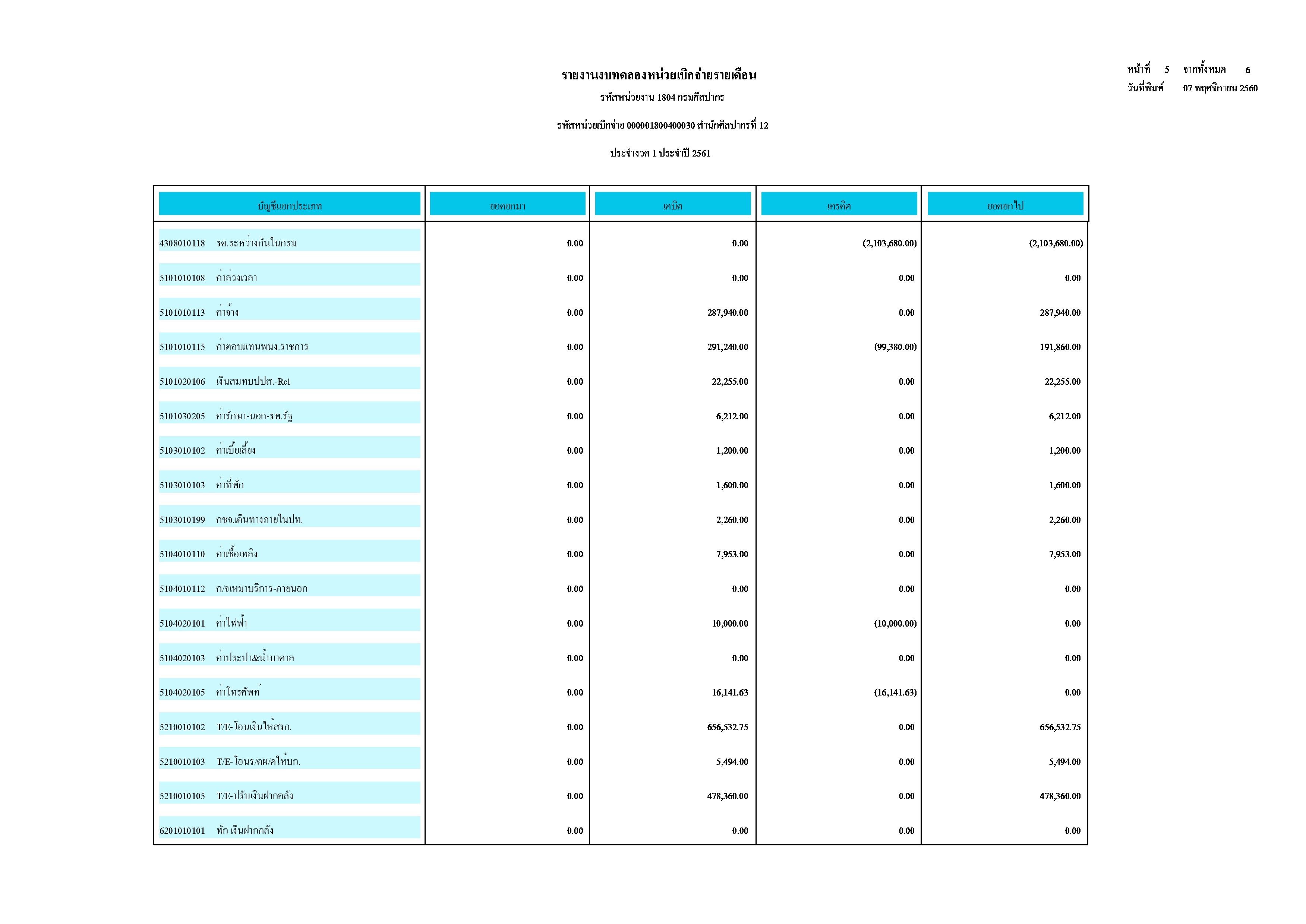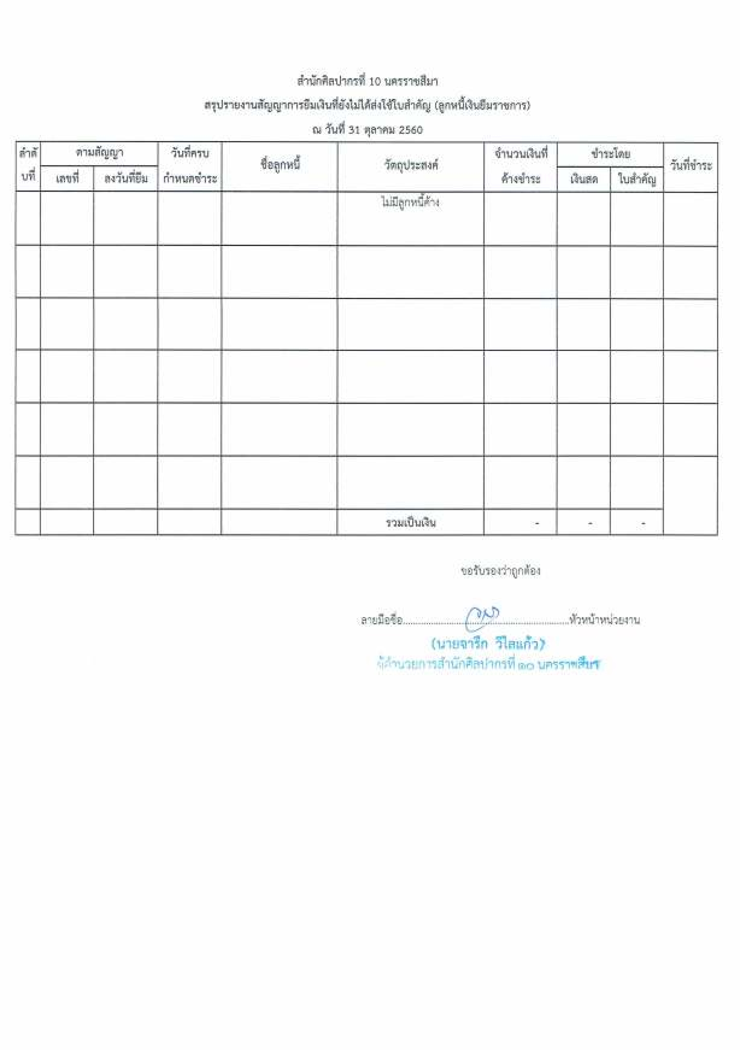 รายงานบัญชีงบทดลองและเอกสารประกอบงบทดลอง สำนักศิลปากรที่ ๑๐ นครราชสีมา (เดือนตุลาคม ๒๕๖๐)