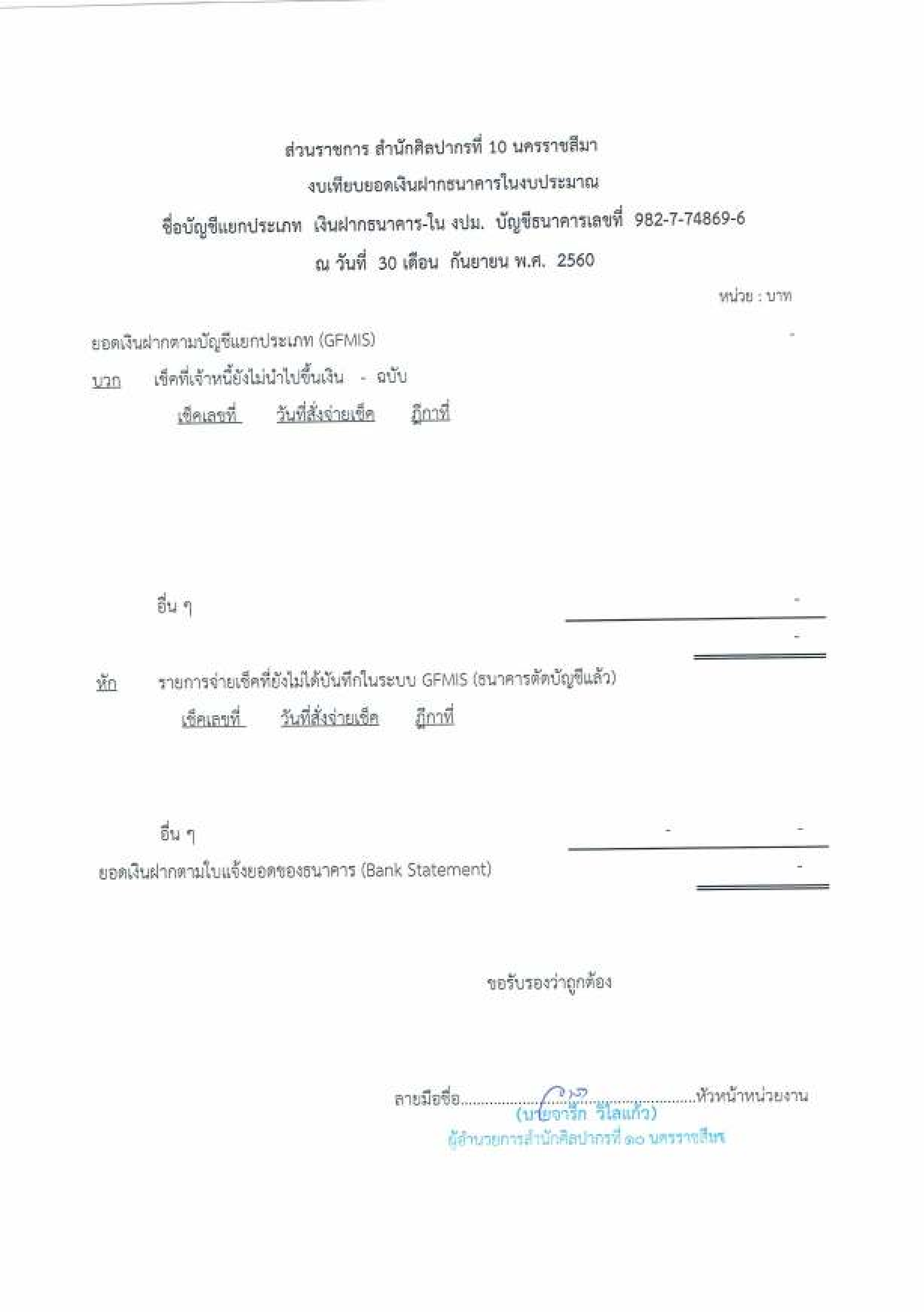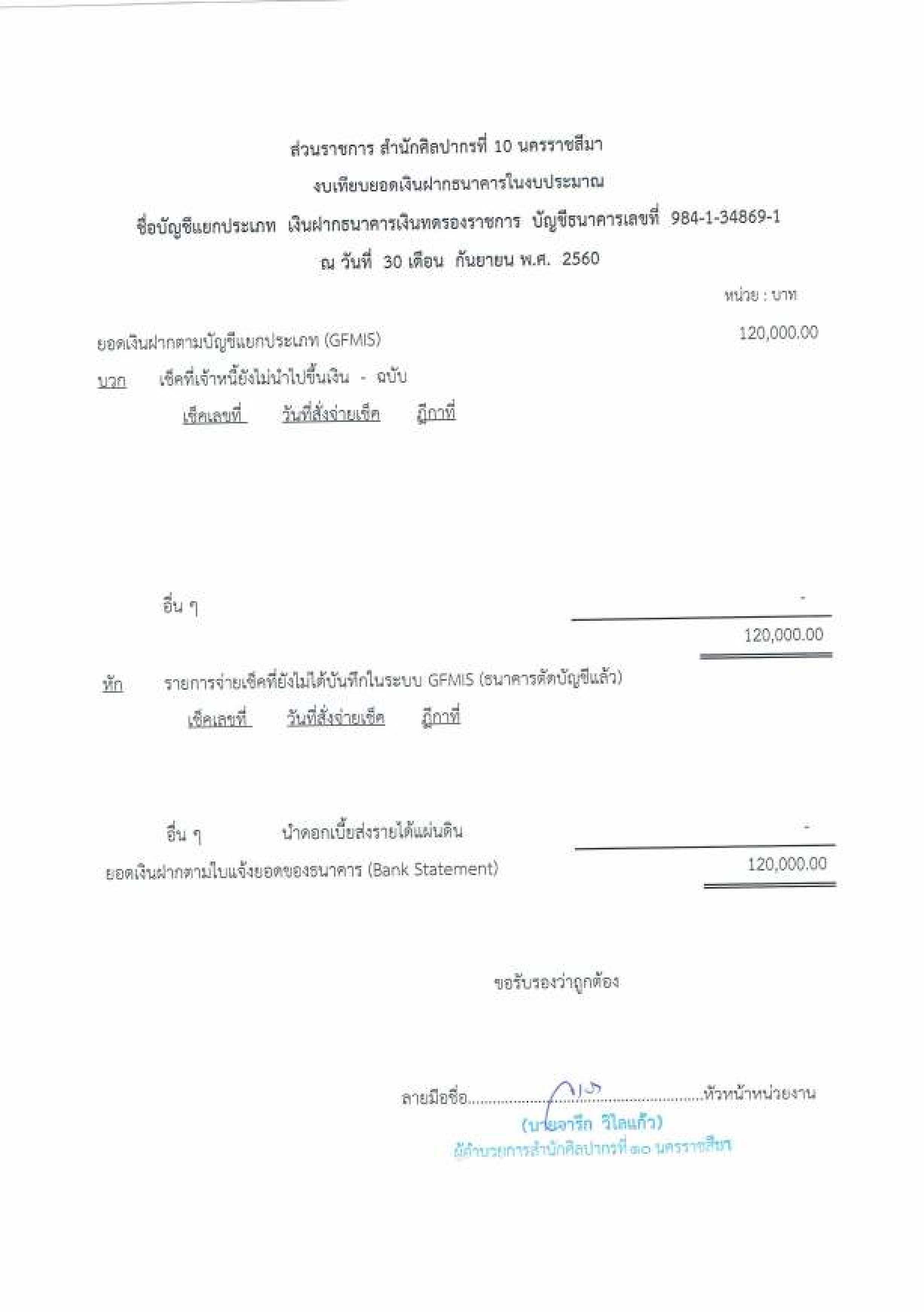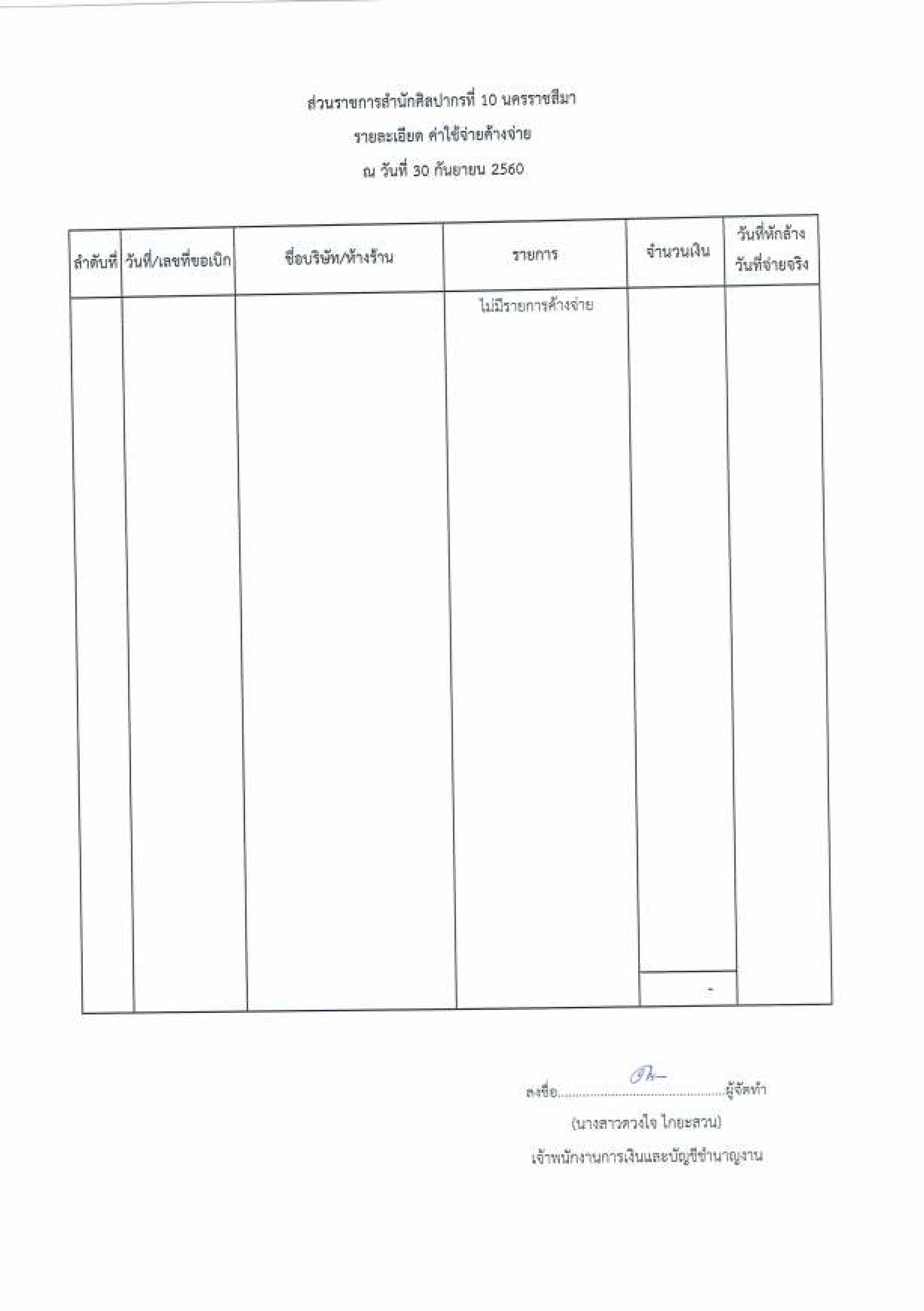 รายงานบัญชีงบทดลองและเอกสารประกอบงบทดลอง สำนักศิลปากรที่ ๑๐ นครราชสีมา (เดือนกันยายน ๒๕๖๐)