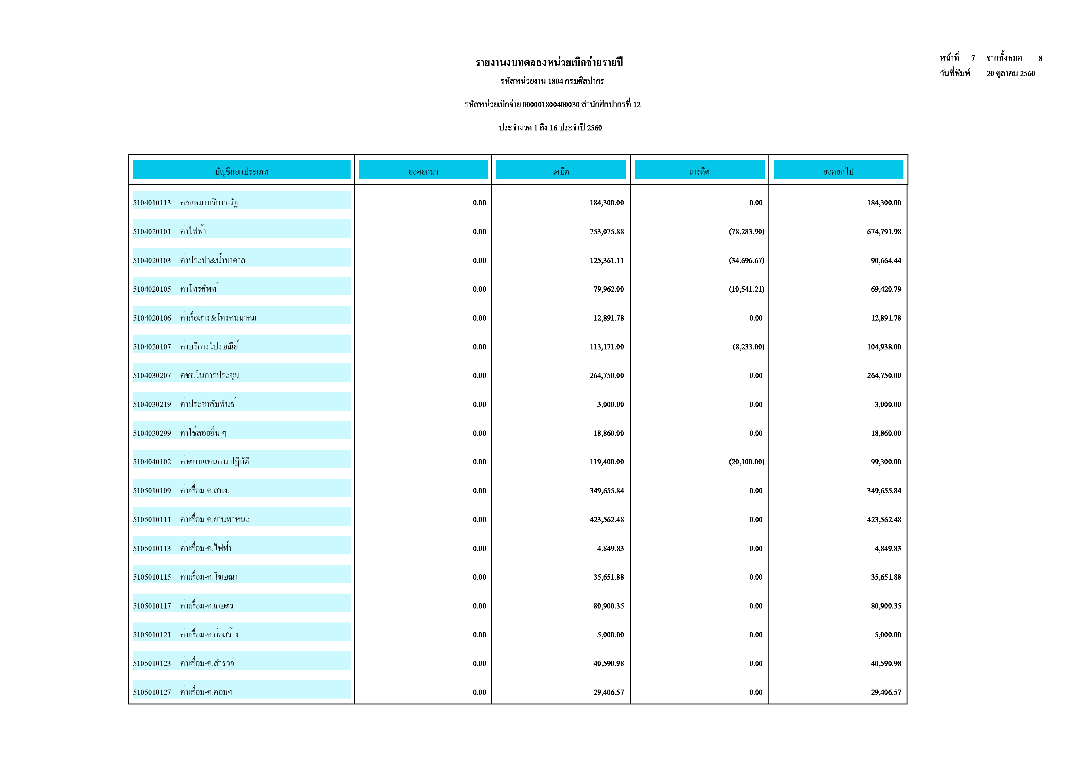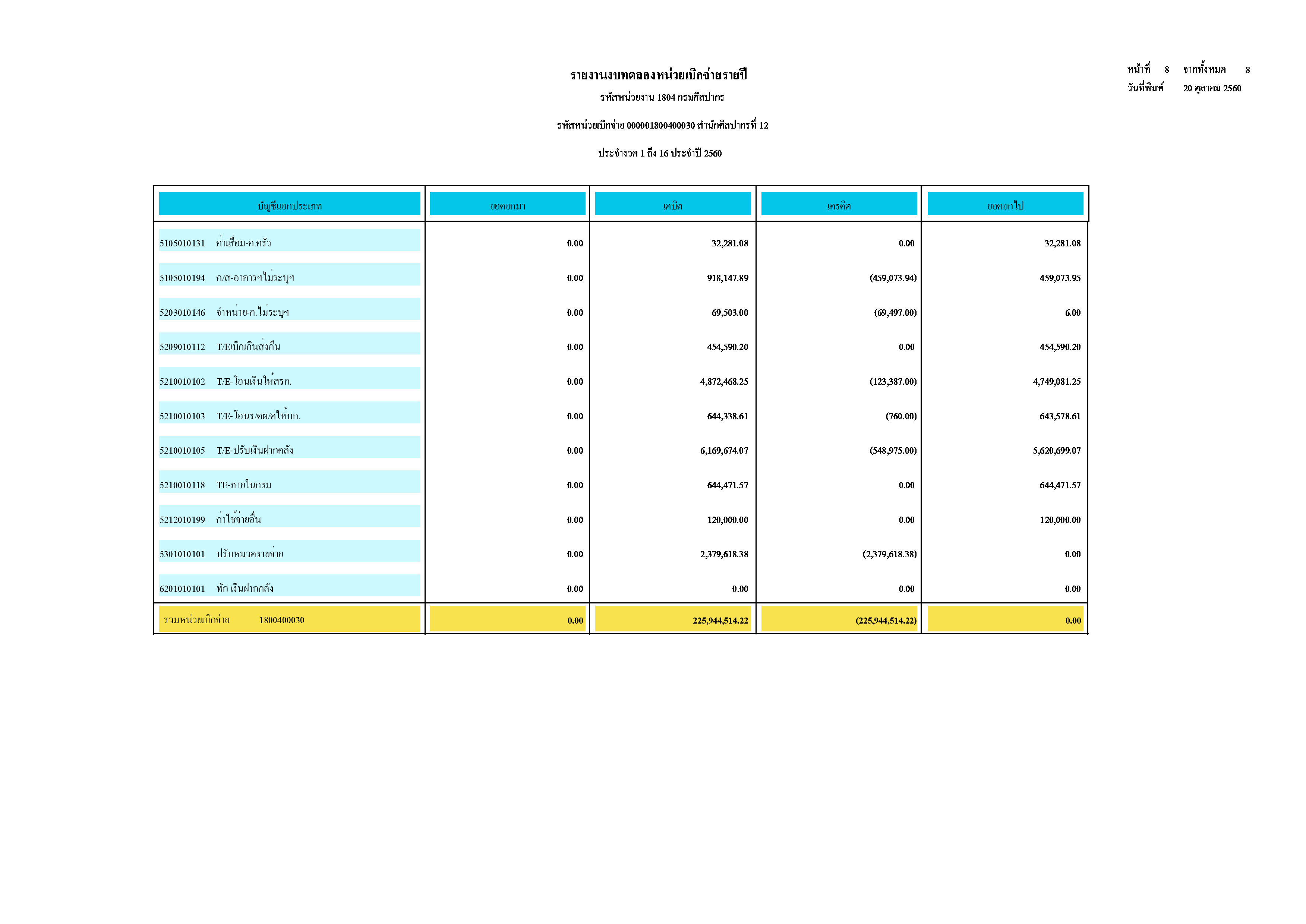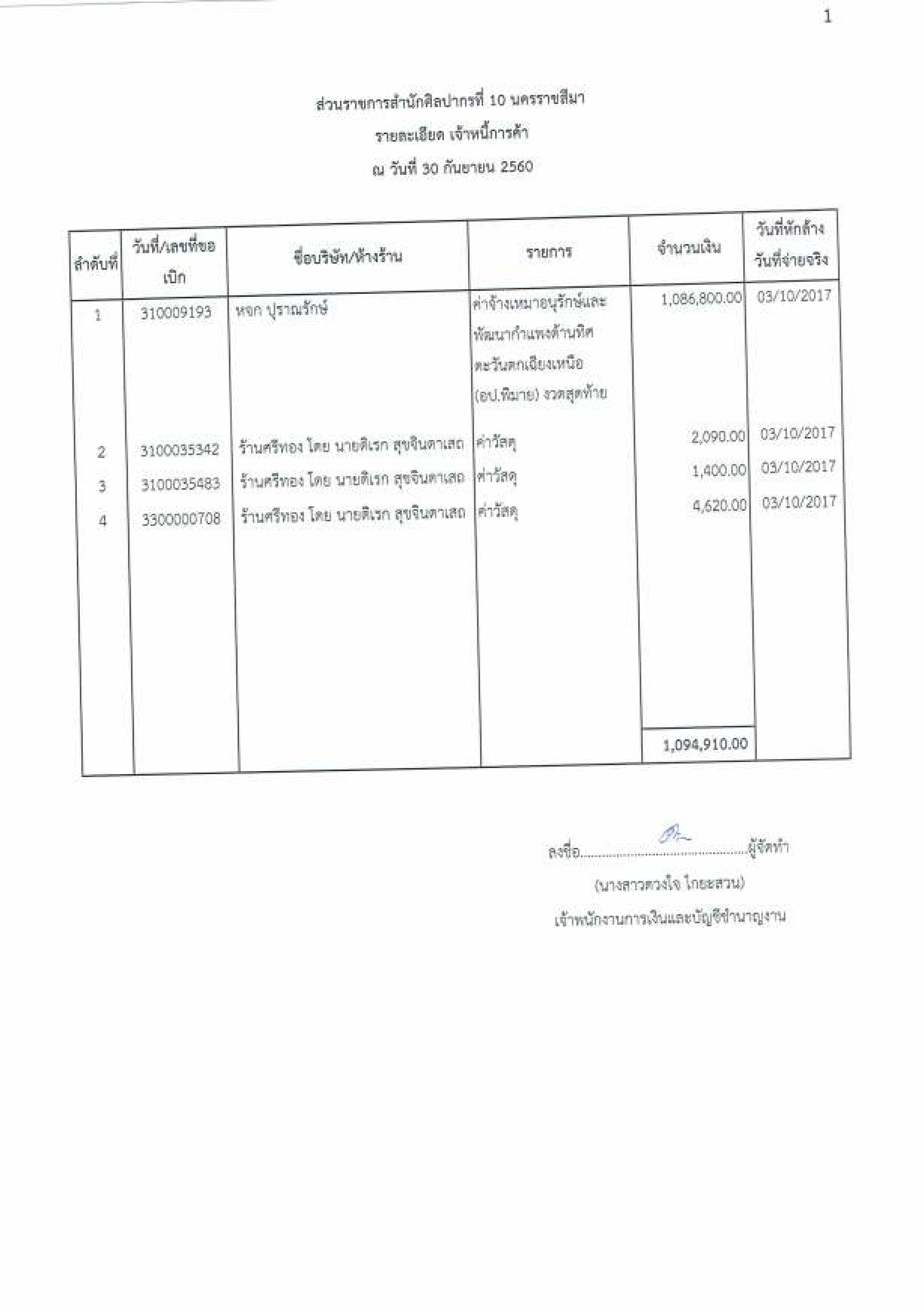 รายงานบัญชีงบทดลองและเอกสารประกอบงบทดลอง สำนักศิลปากรที่ ๑๐ นครราชสีมา (เดือนกันยายน ๒๕๖๐)